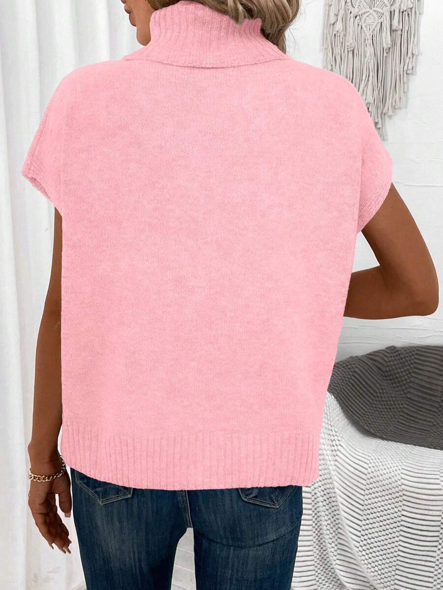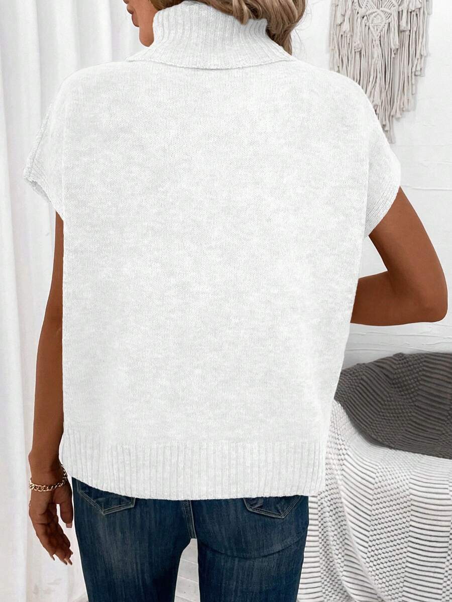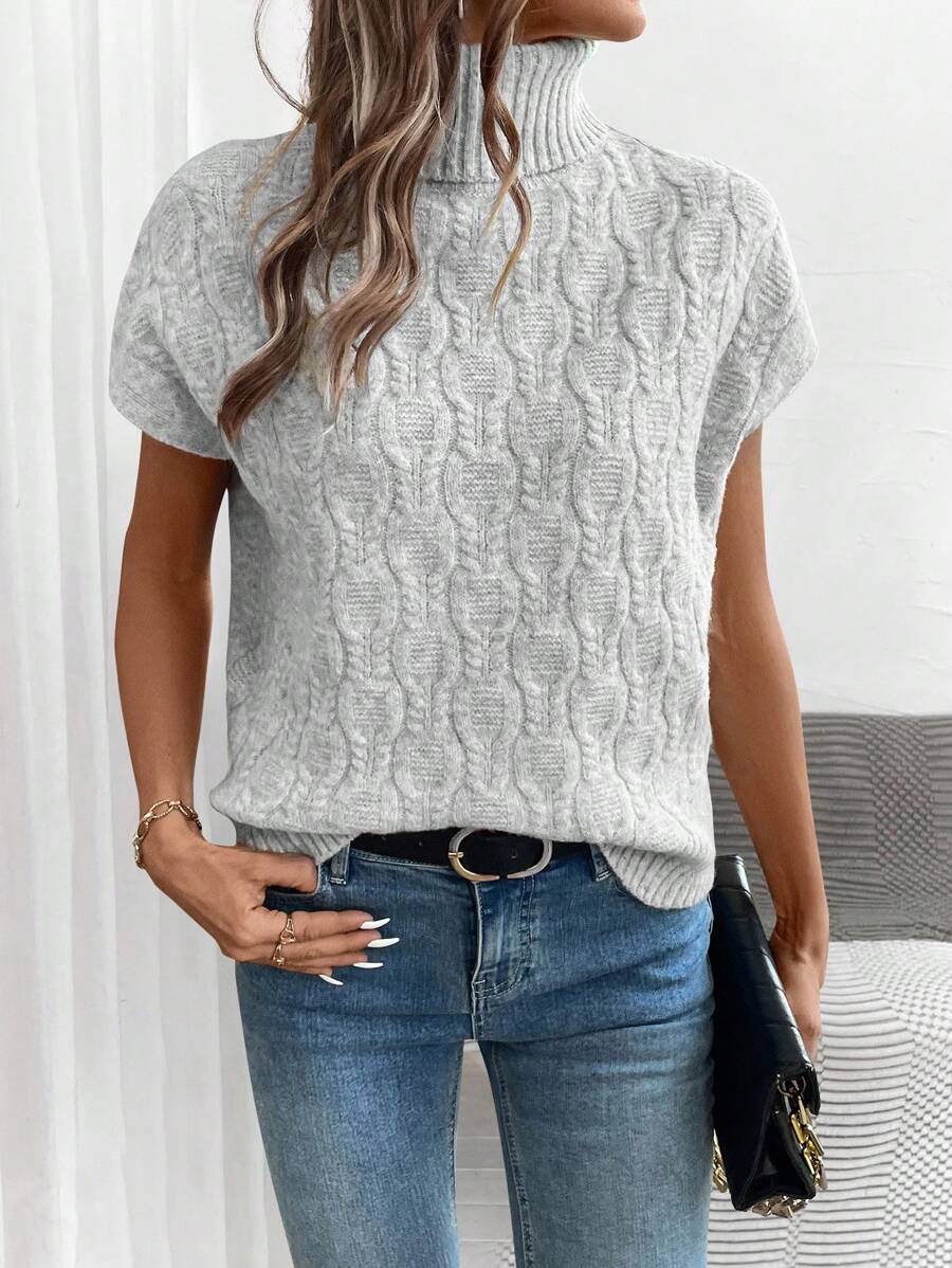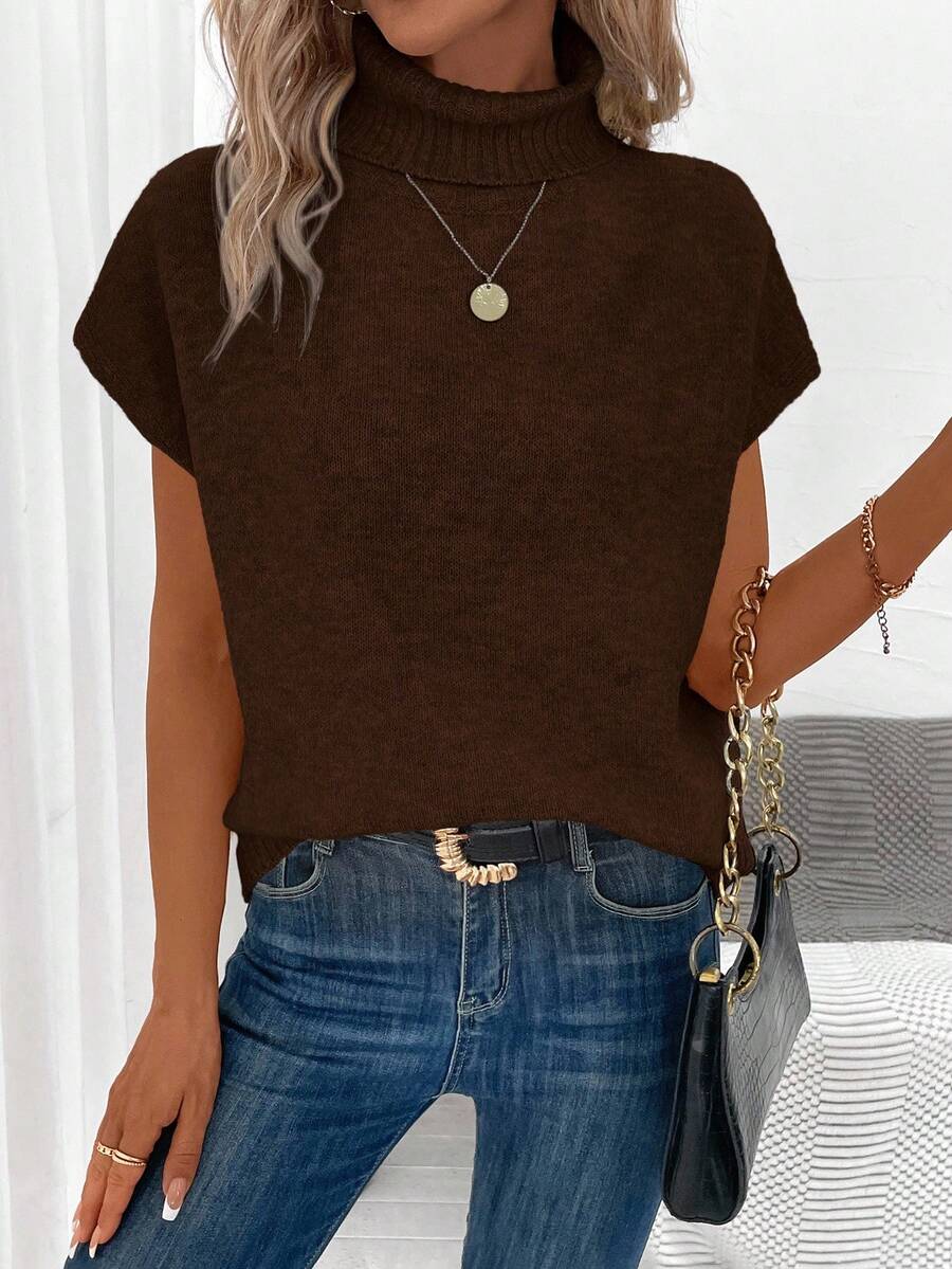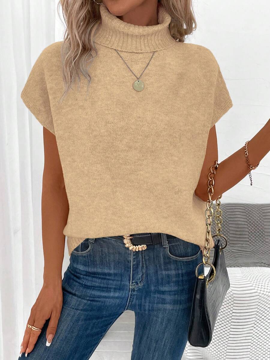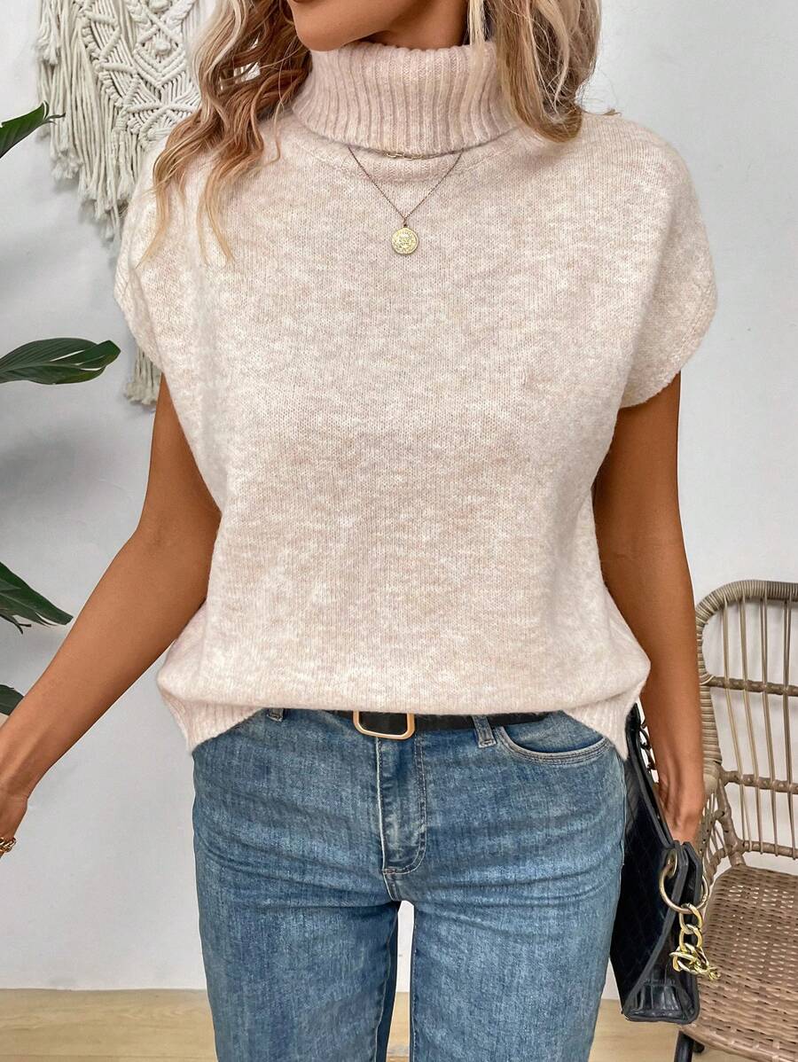 MAJA LUNE Ženska majica sa visokim ovratnikom, kratkim rukavima, ležerna i prostrana, jednobojna