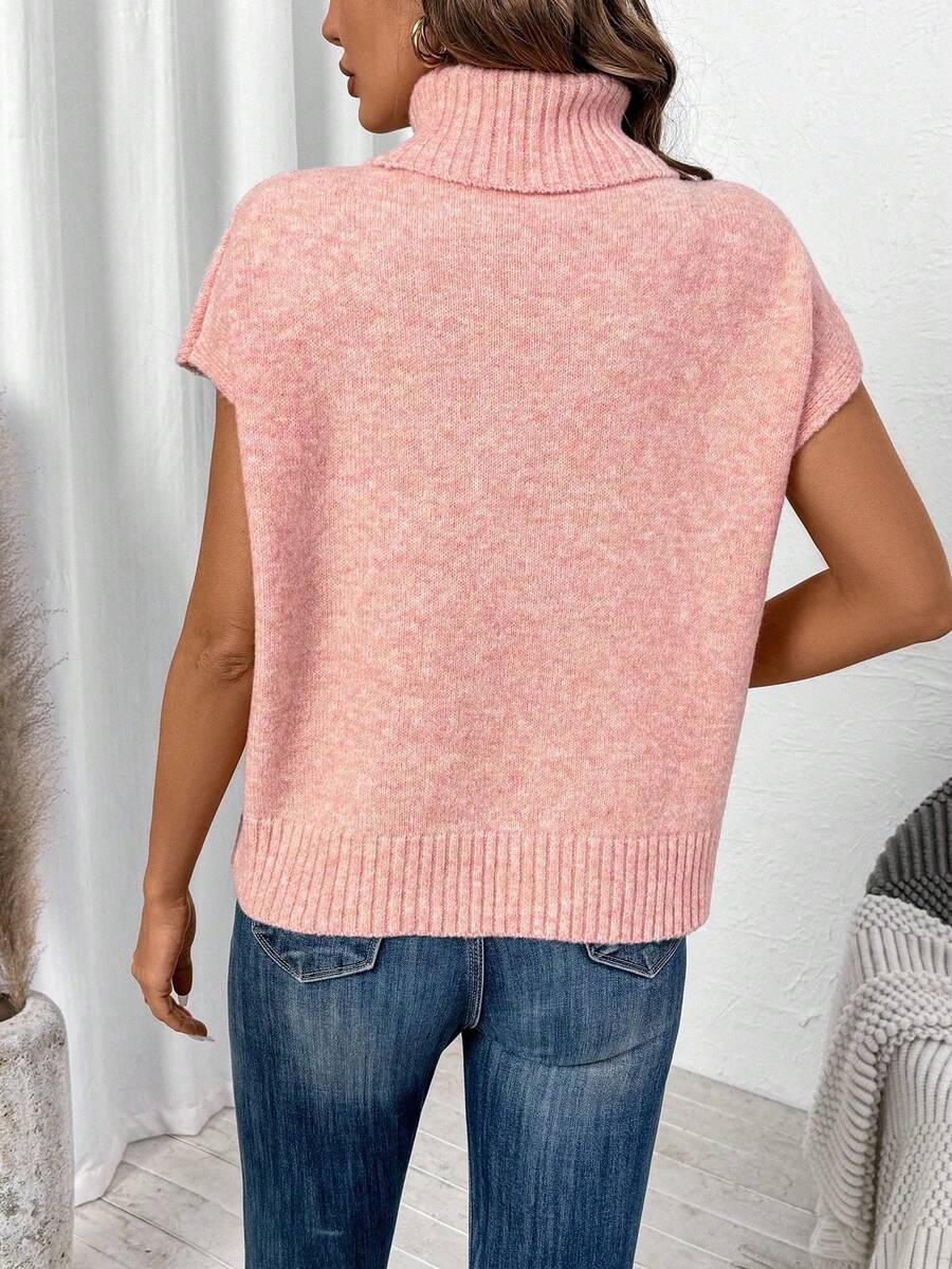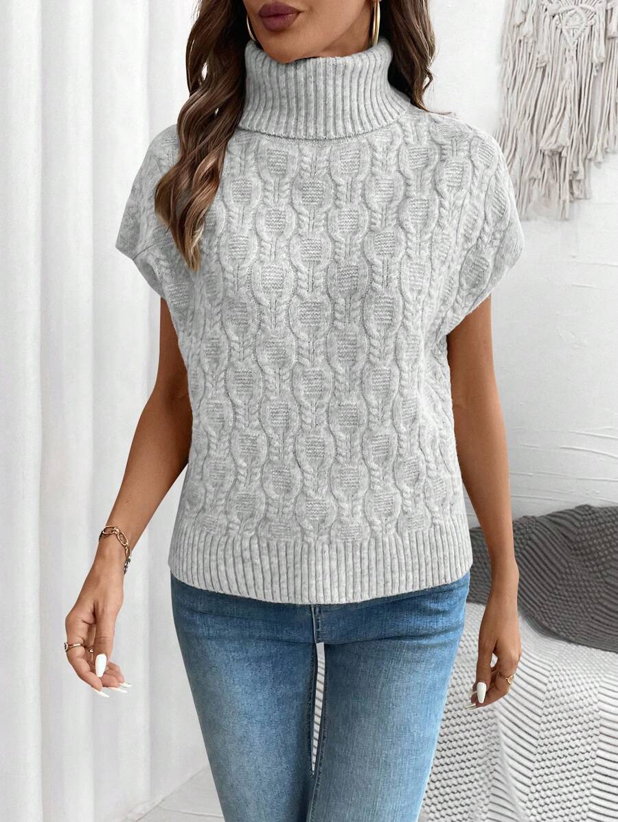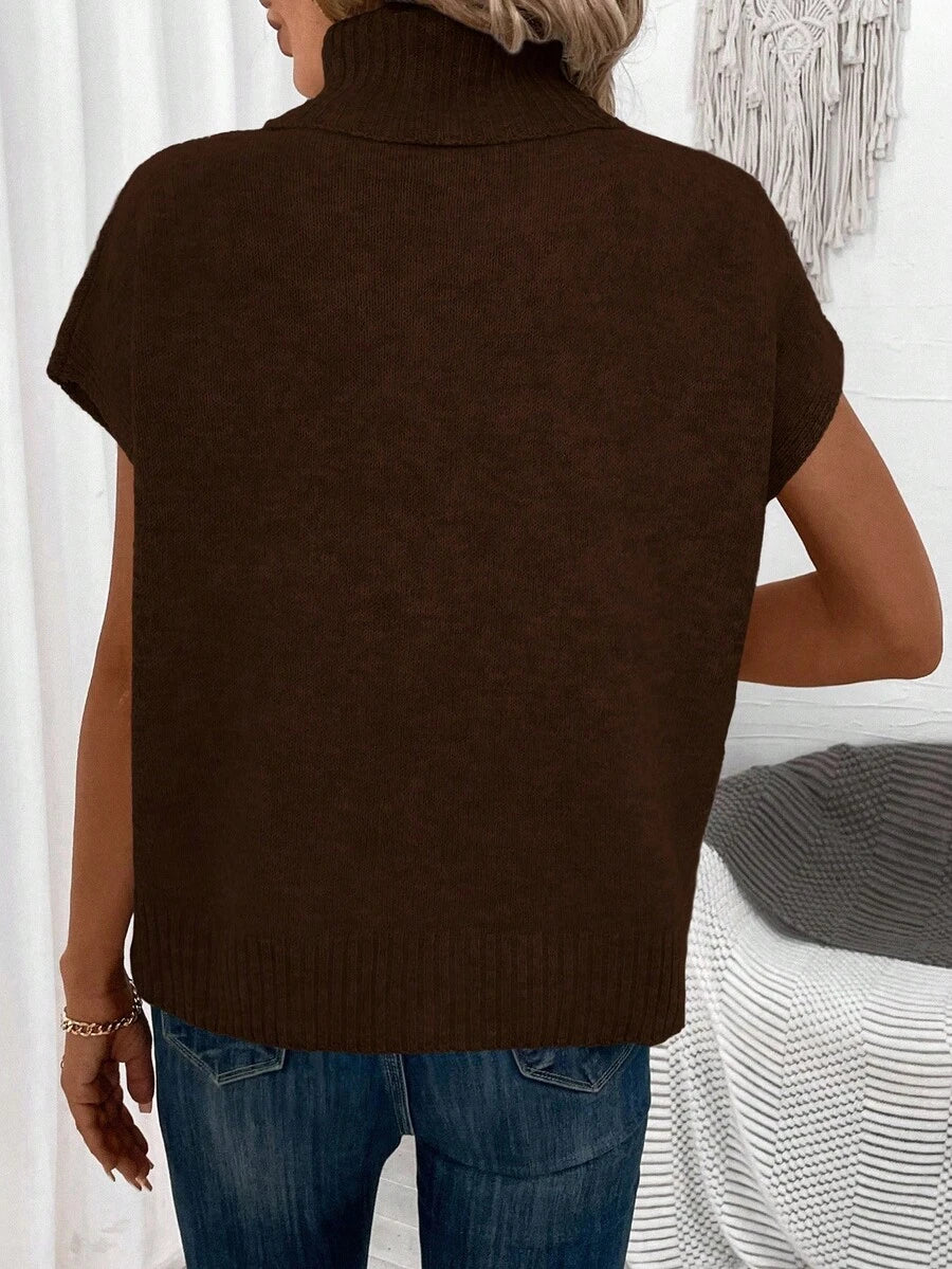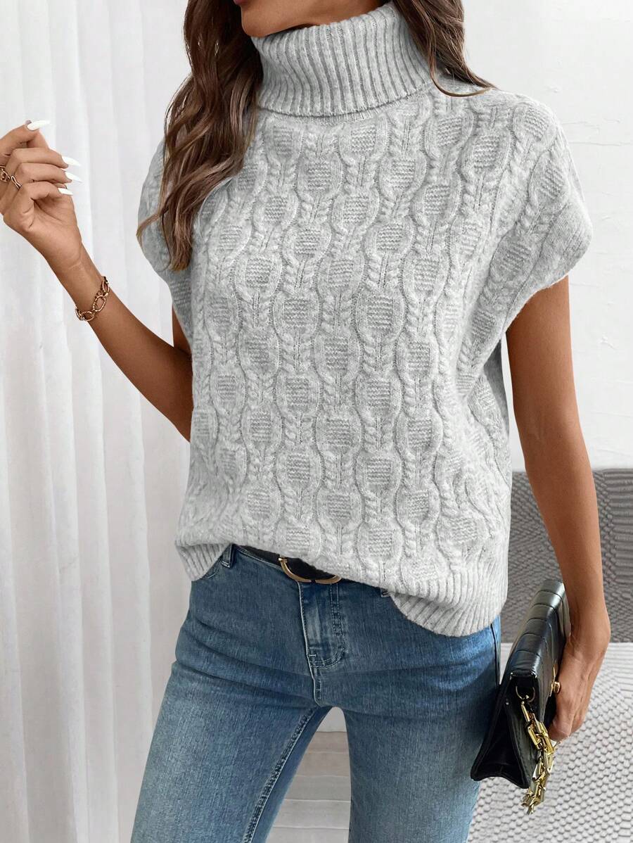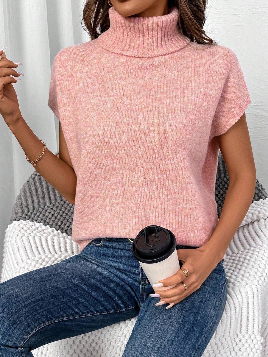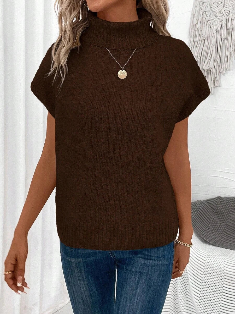 MAJA LUNE Ženska majica sa visokim ovratnikom, kratkim rukavima, ležerna i prostrana, jednobojna