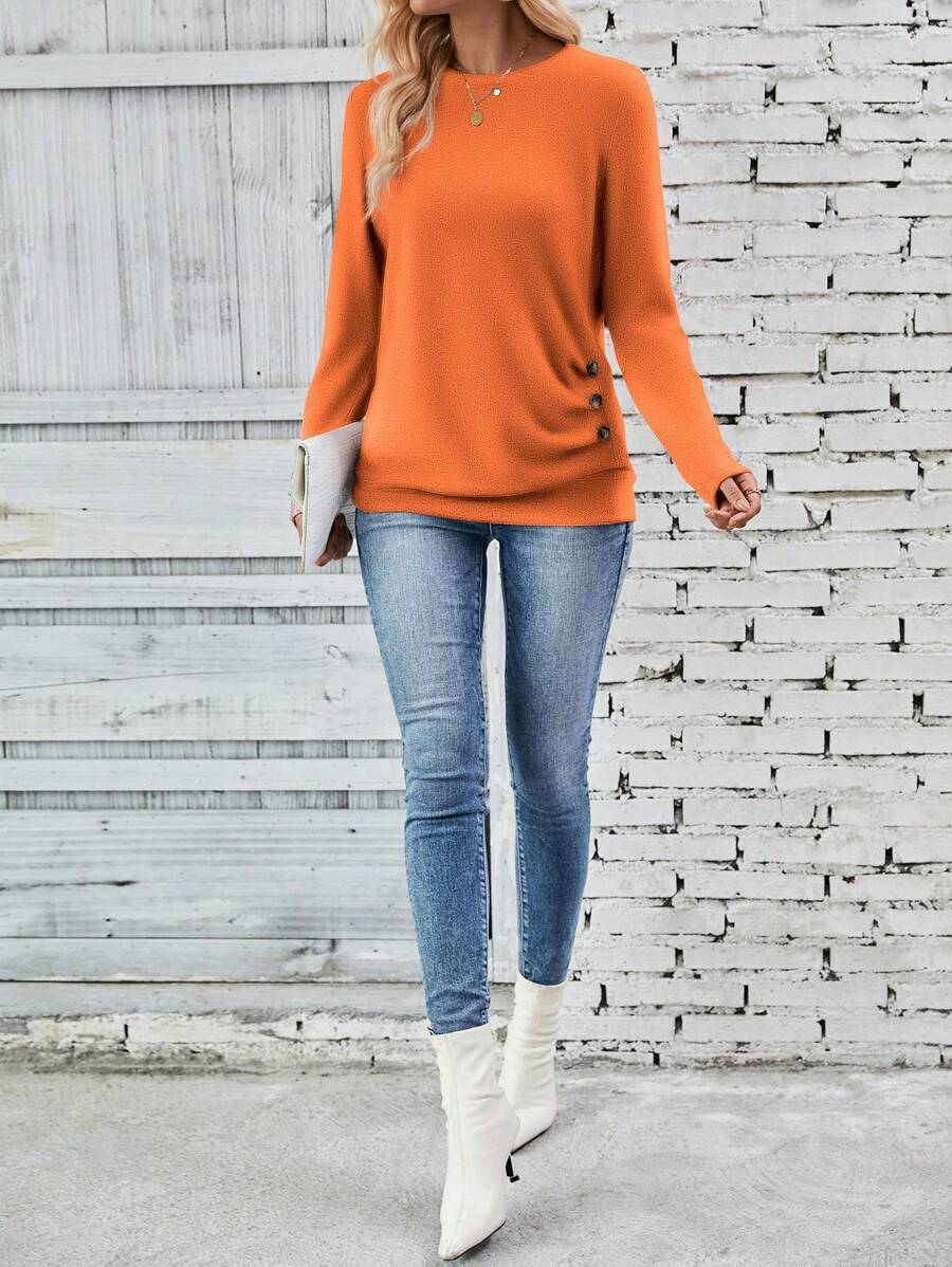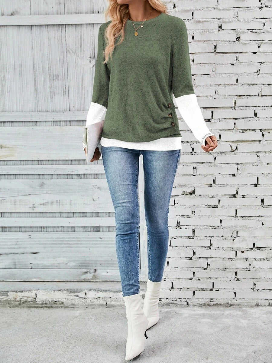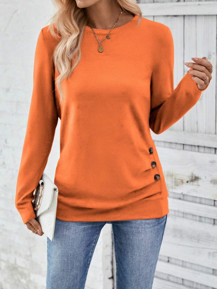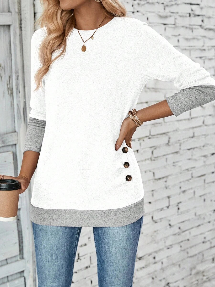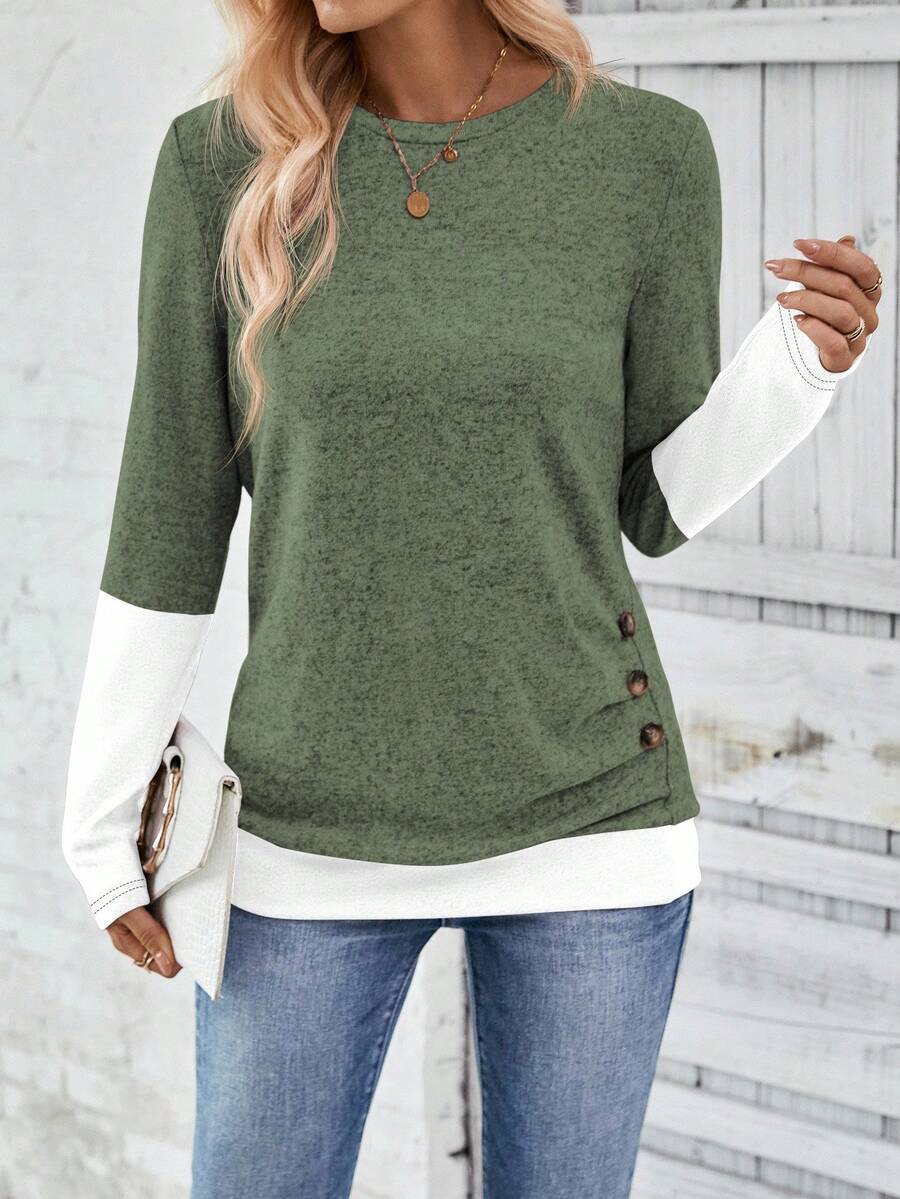 MAJA LUNE Ženska T-shirt dugih rukava s okruglim izrezom u jednobojnoj boji s bočnim dugmetom