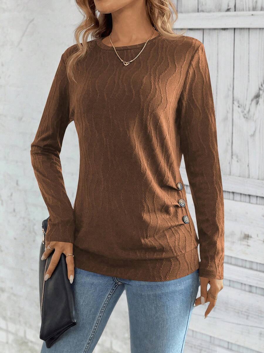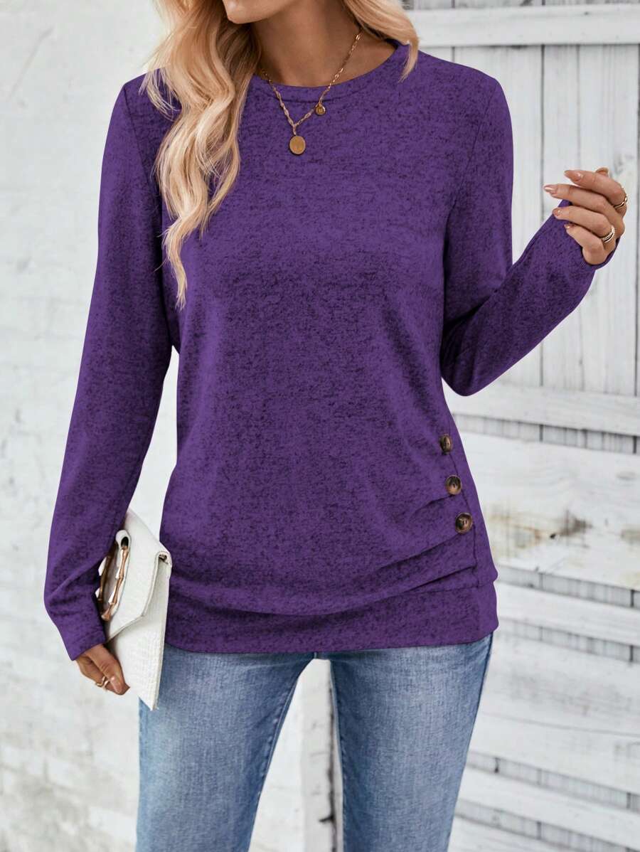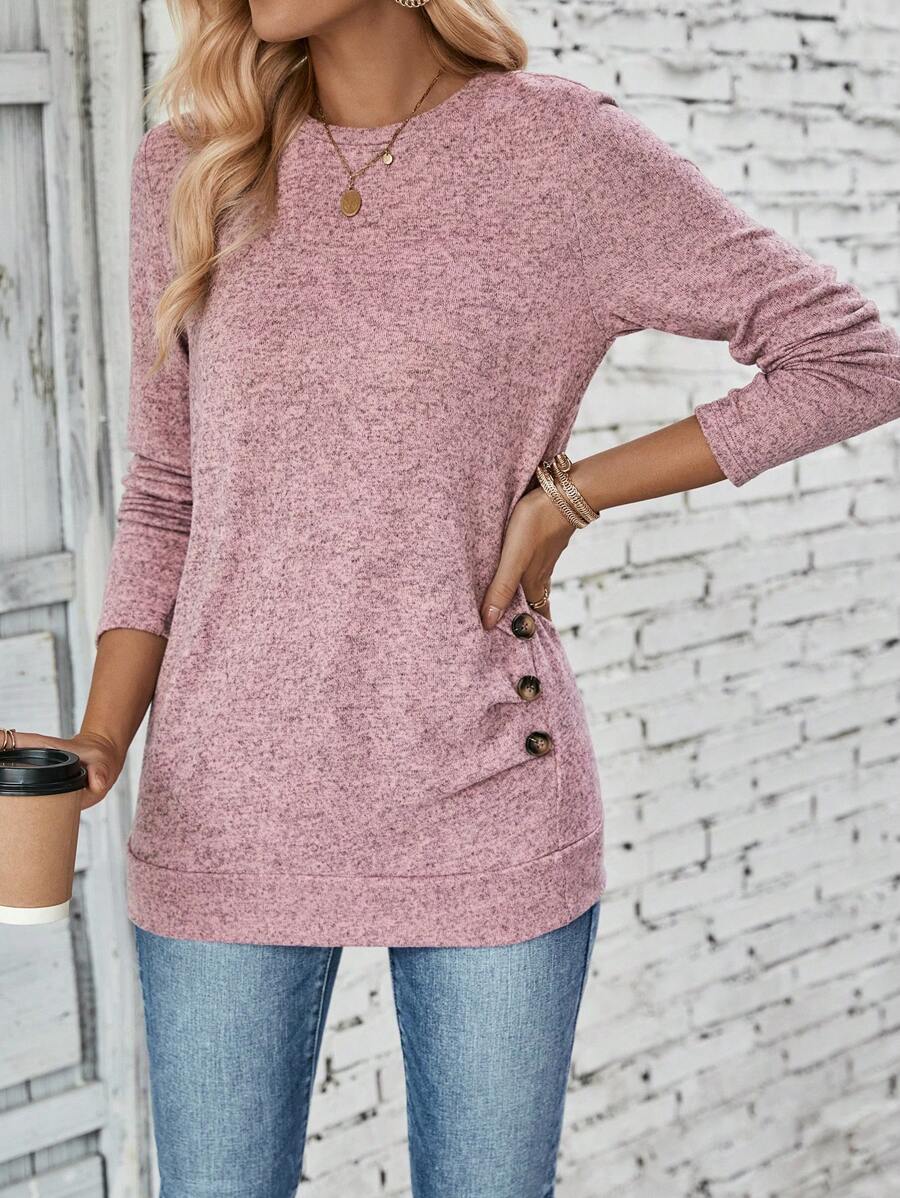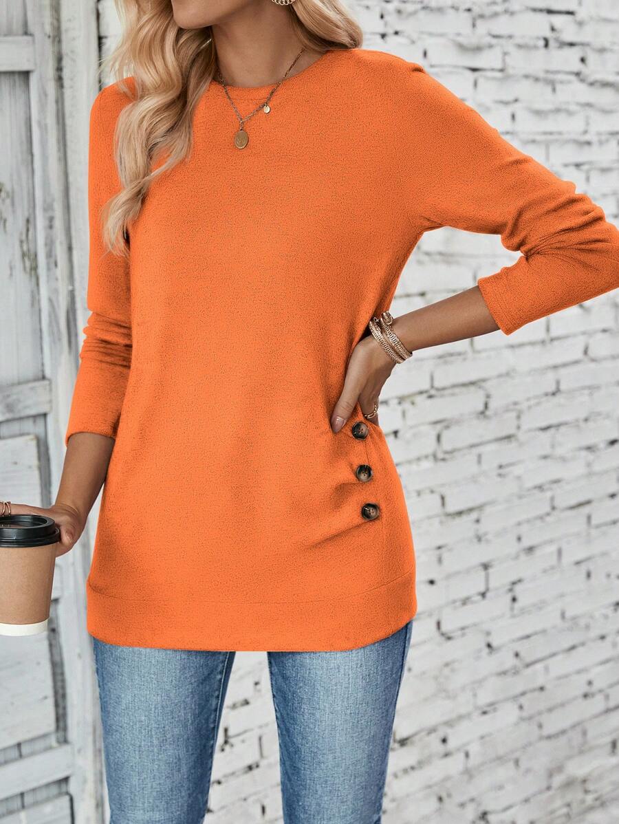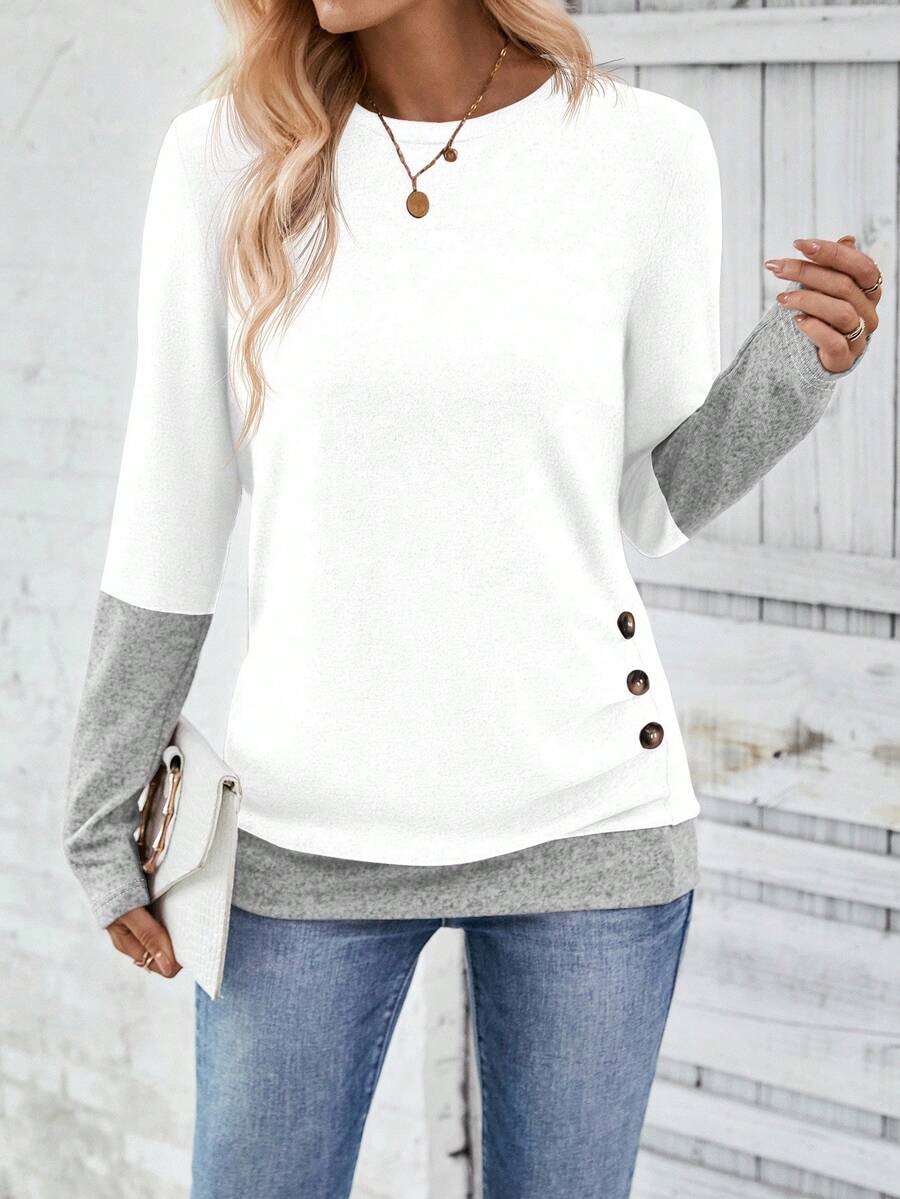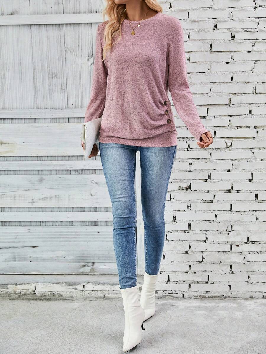 MAJA LUNE Ženska T-shirt dugih rukava s okruglim izrezom u jednobojnoj boji s bočnim dugmetom
