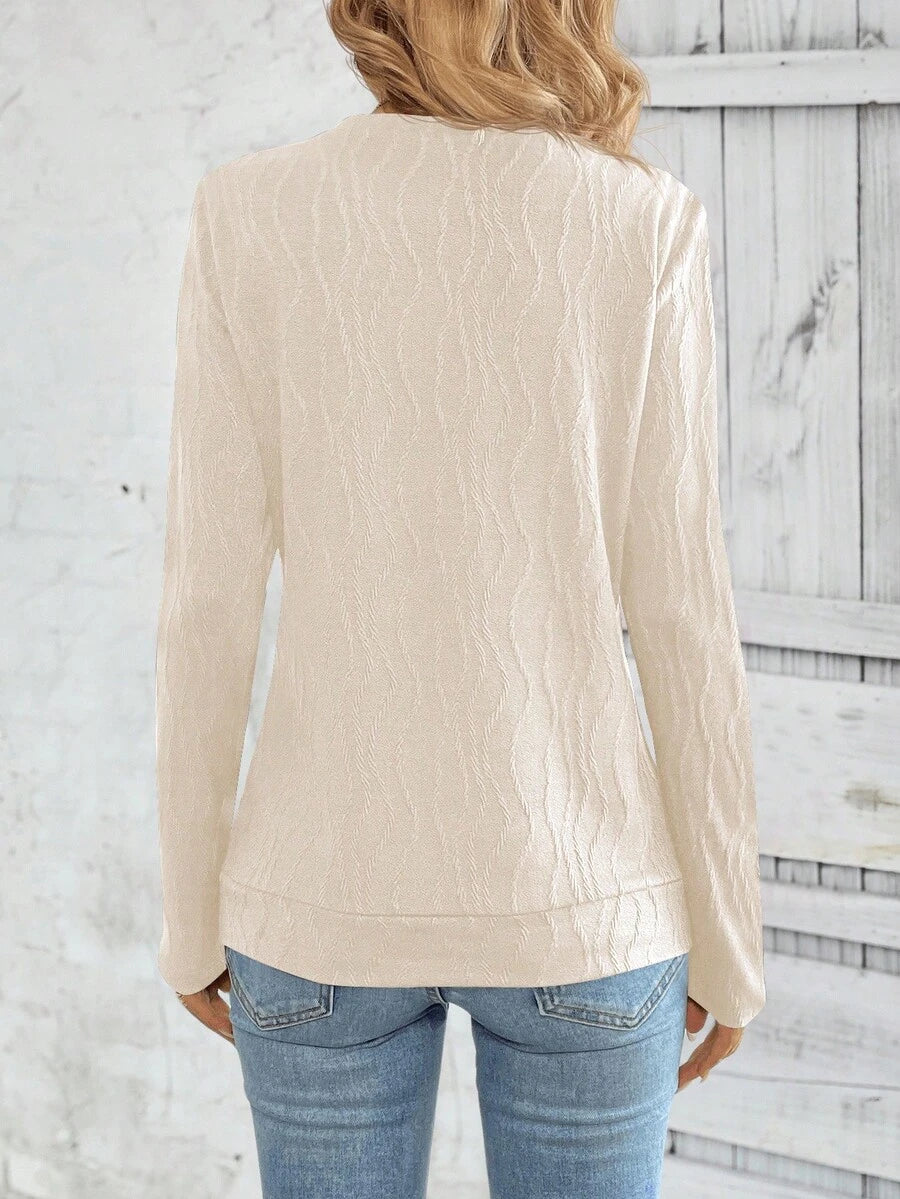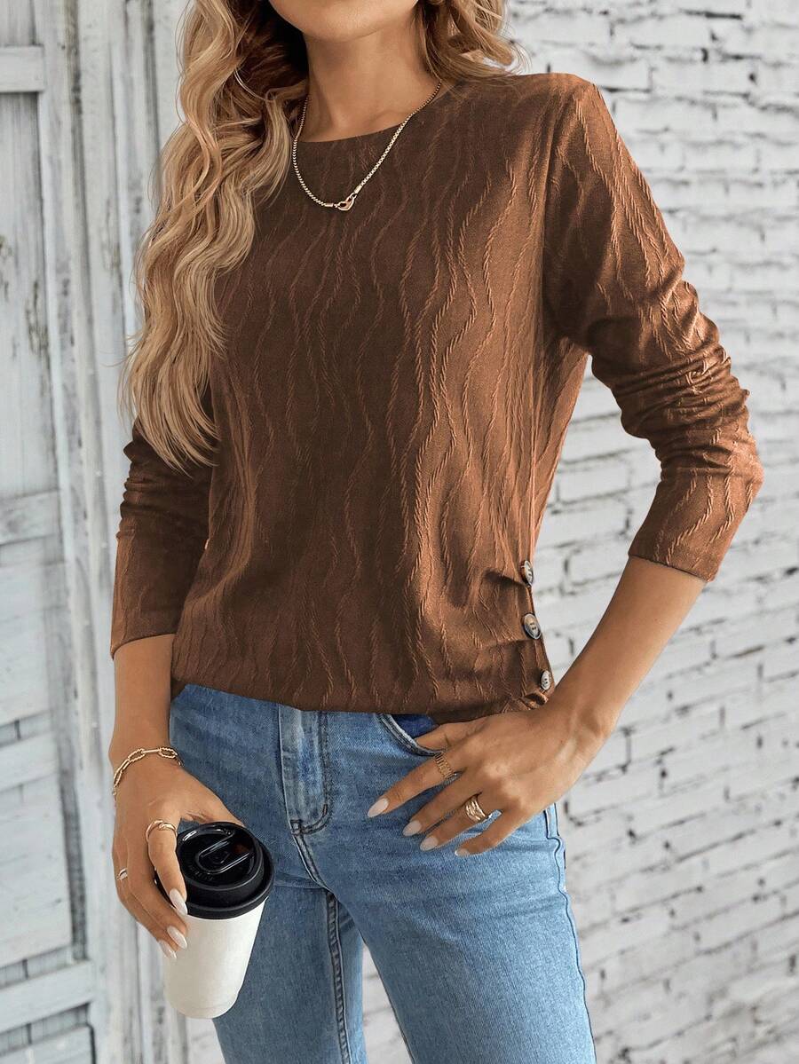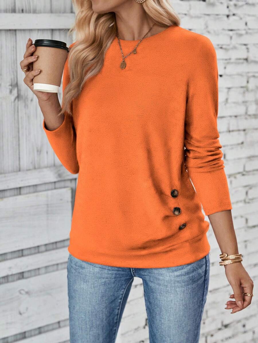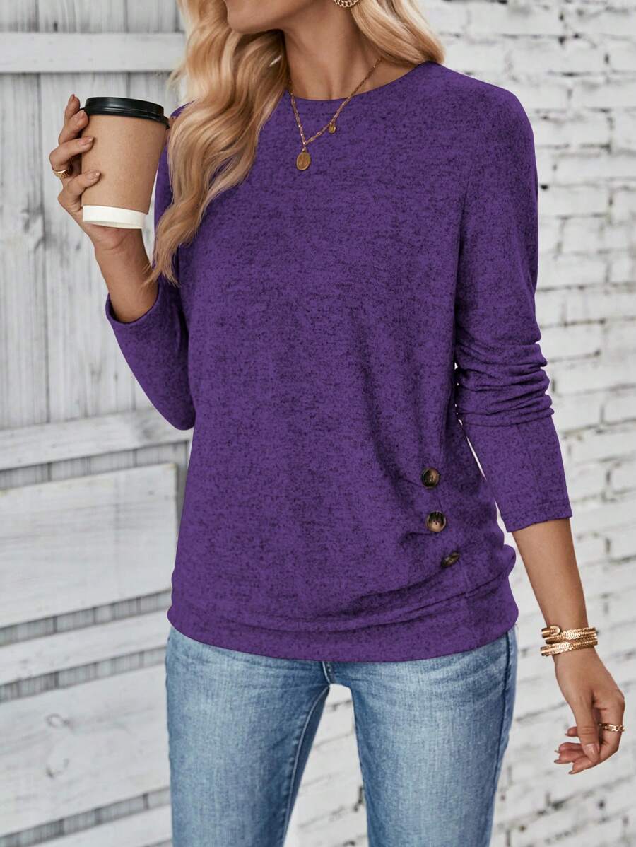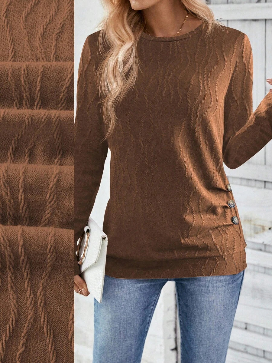 MAJA LUNE Ženska T-shirt dugih rukava s okruglim izrezom u jednobojnoj boji s bočnim dugmetom