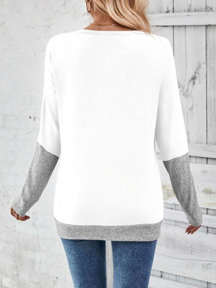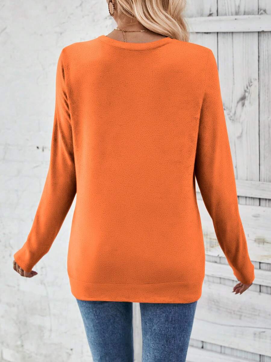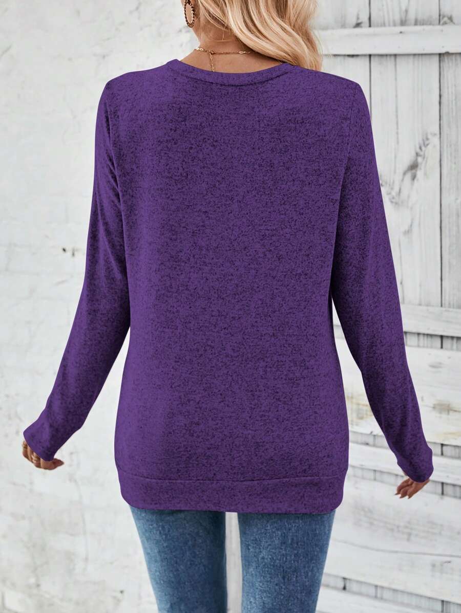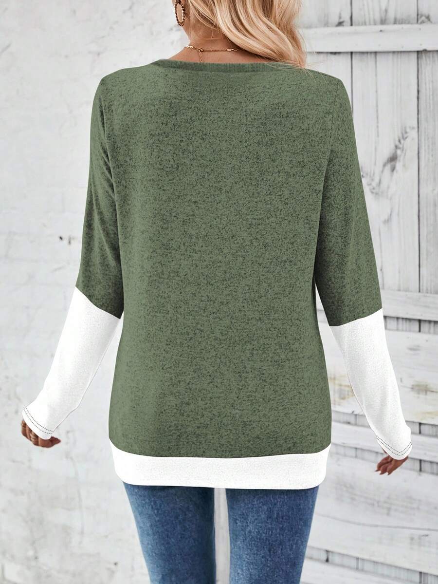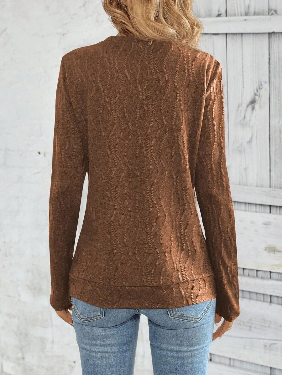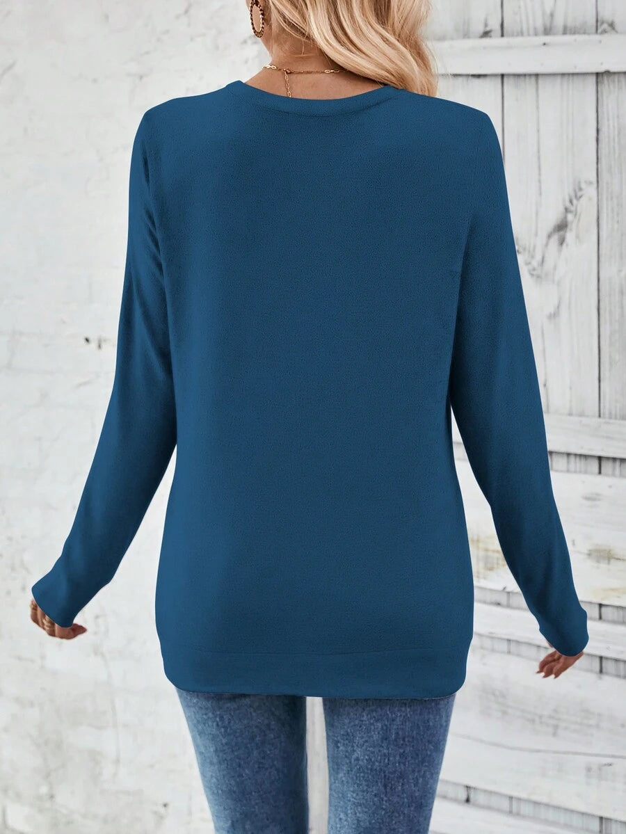 MAJA LUNE Ženska T-shirt dugih rukava s okruglim izrezom u jednobojnoj boji s bočnim dugmetom