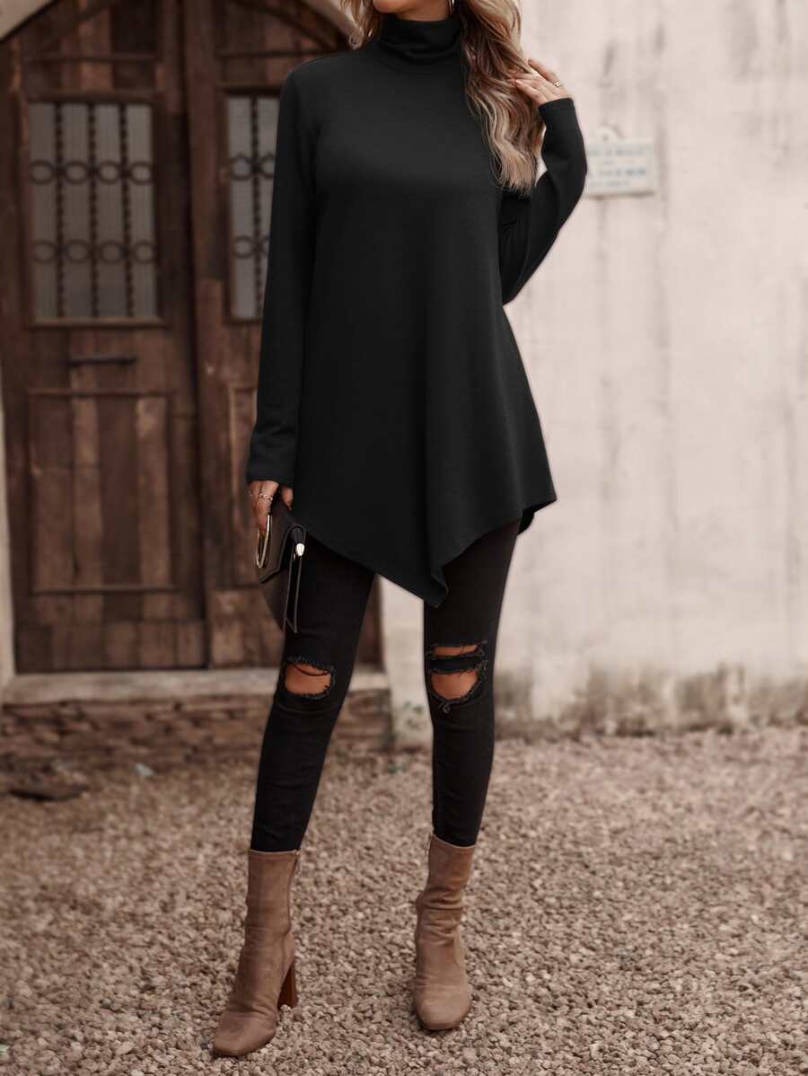 MAJA ROSE Ženski Ležerni Loose Fit Jednobojni Dugi Rukav T-Shirt