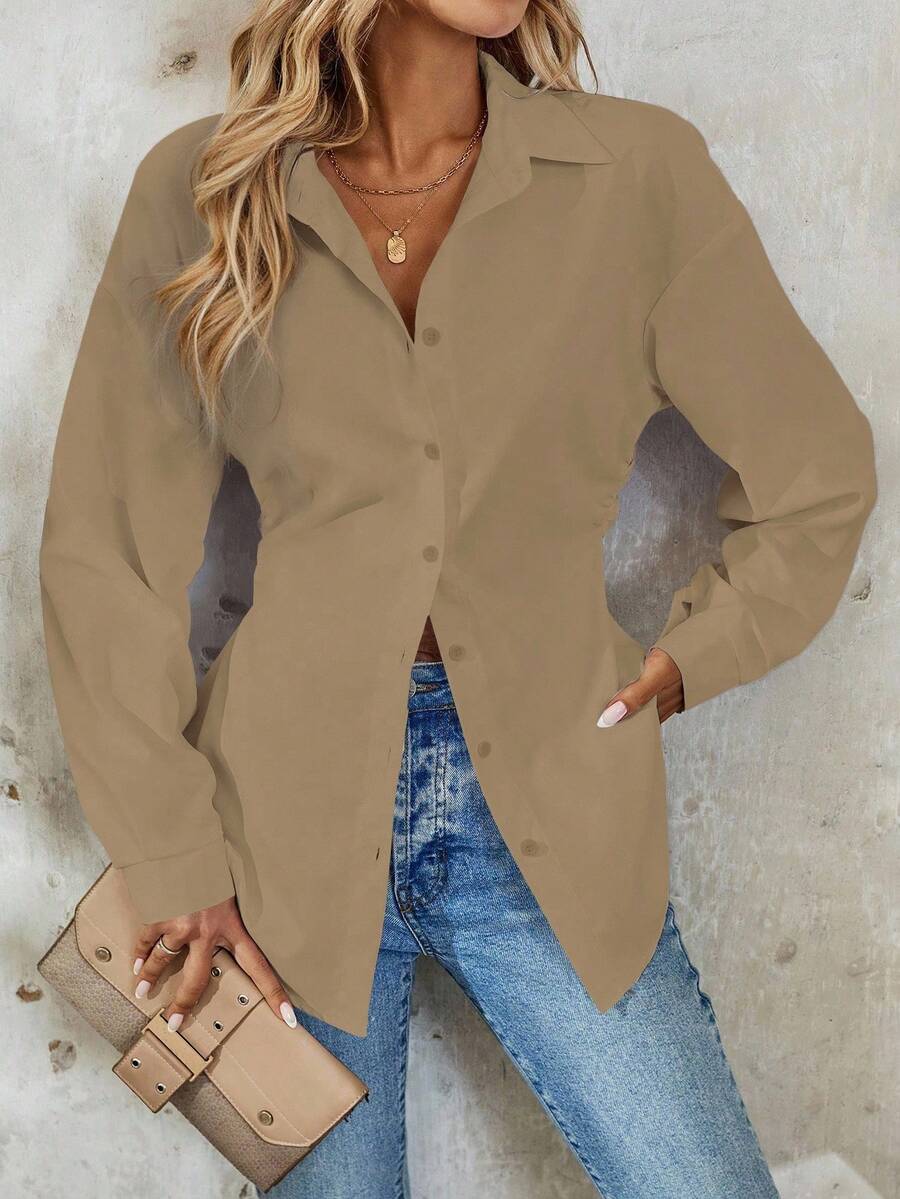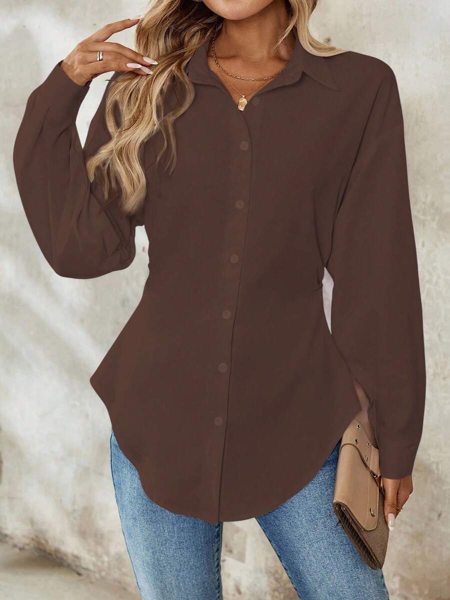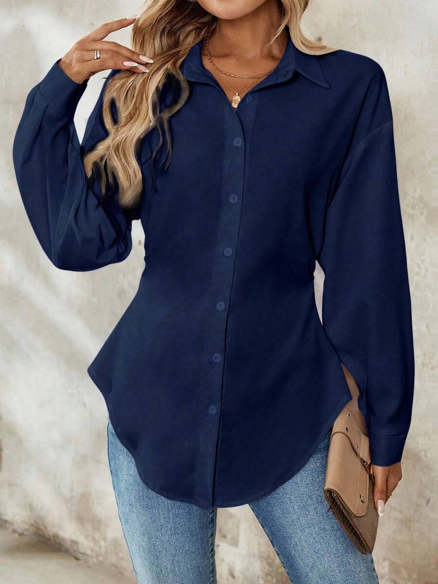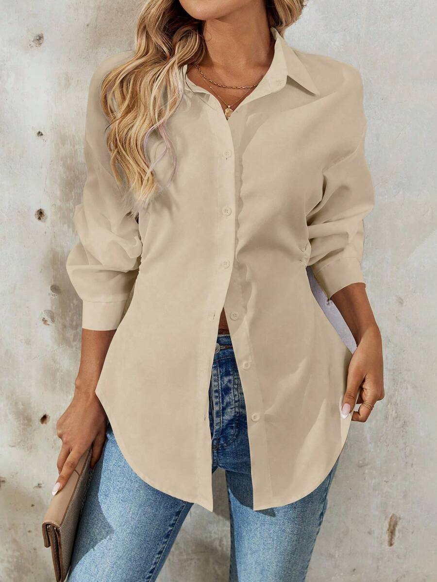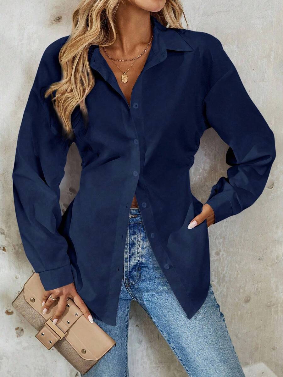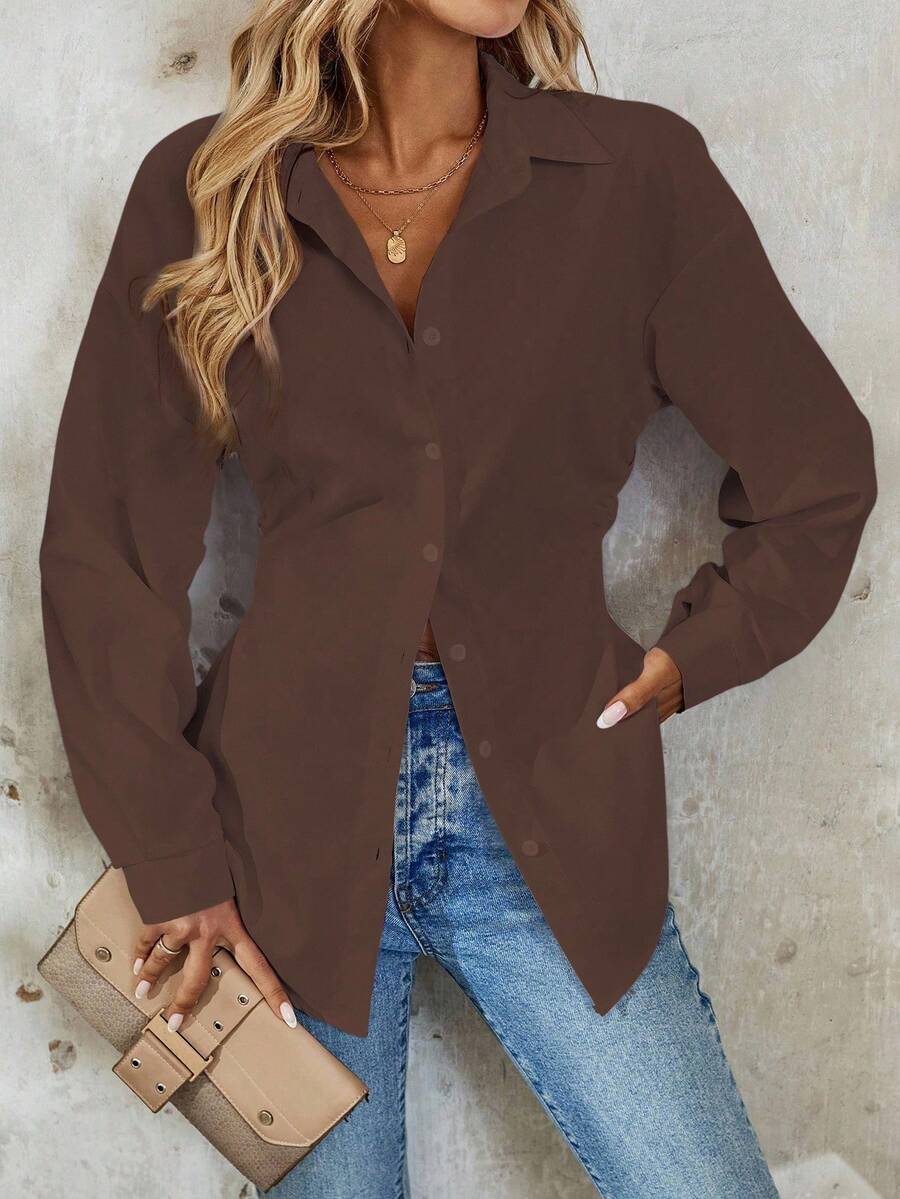 MAJA Ženska elegantna bluzica sa dugim rukavima u jednobojnoj boji