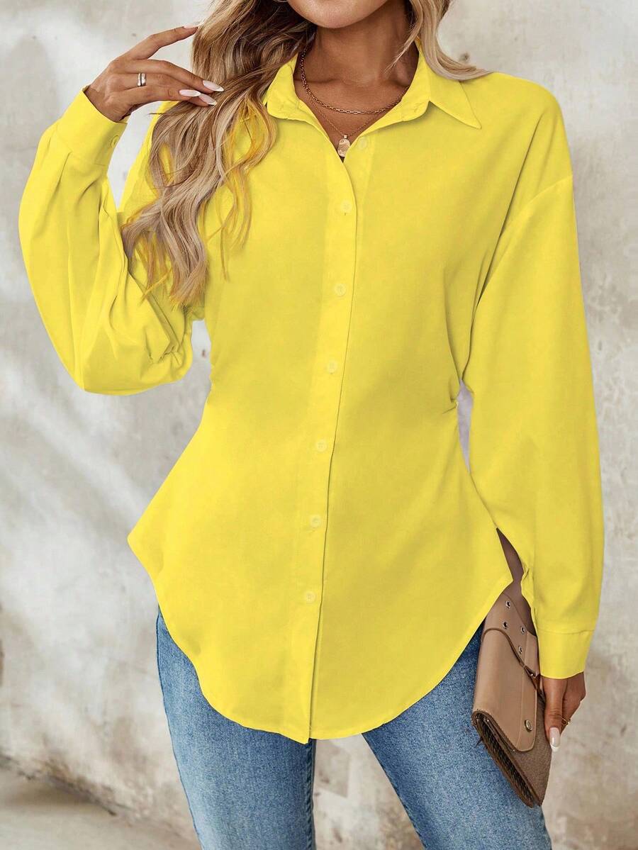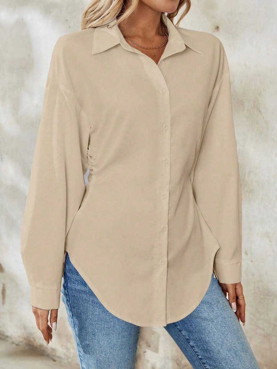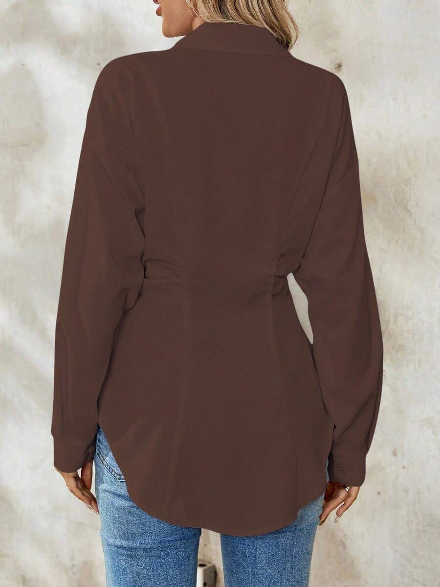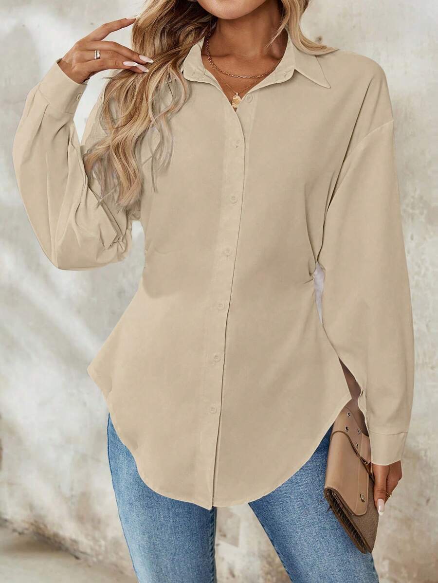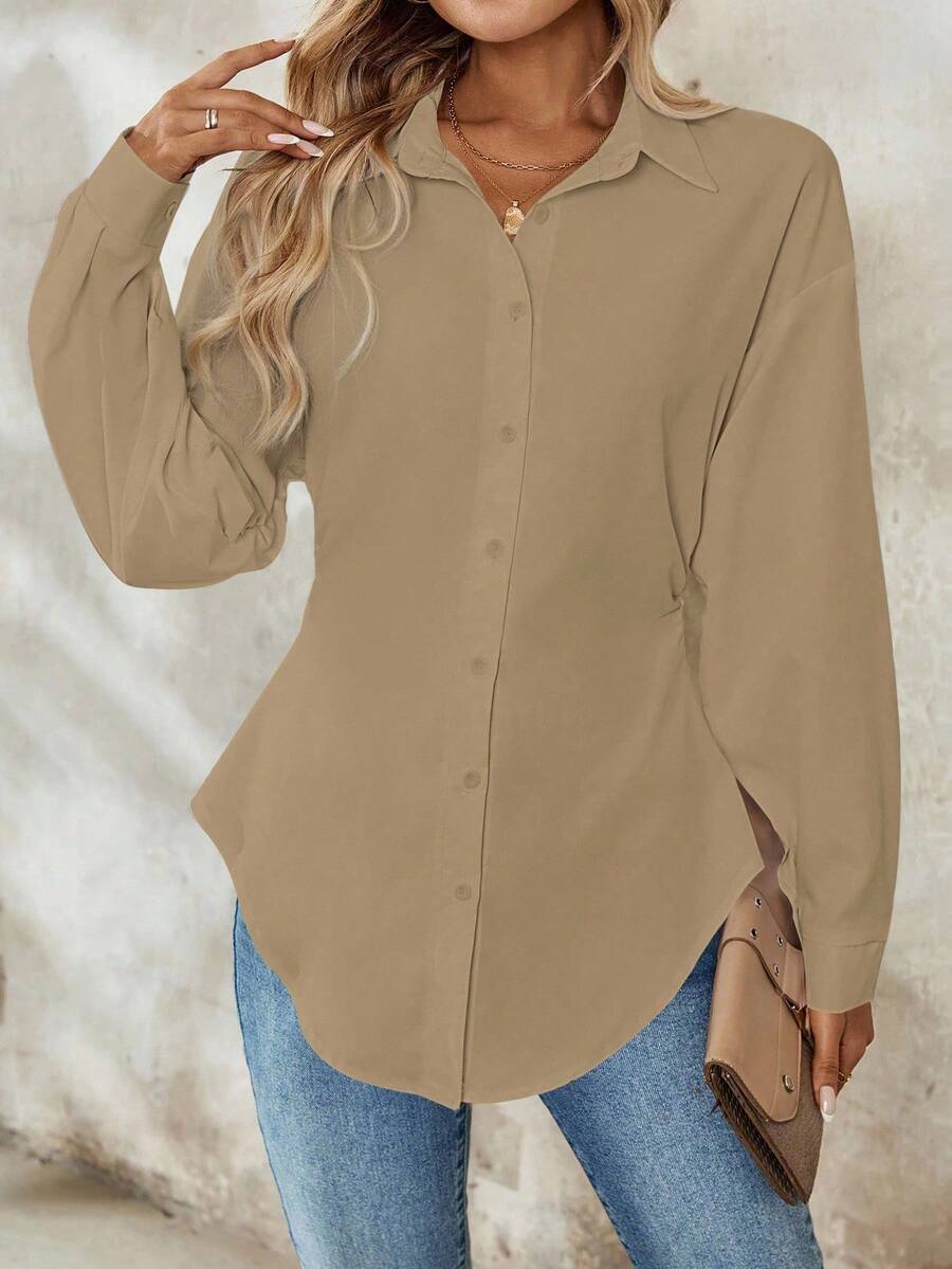 MAJA Ženska elegantna bluzica sa dugim rukavima u jednobojnoj boji