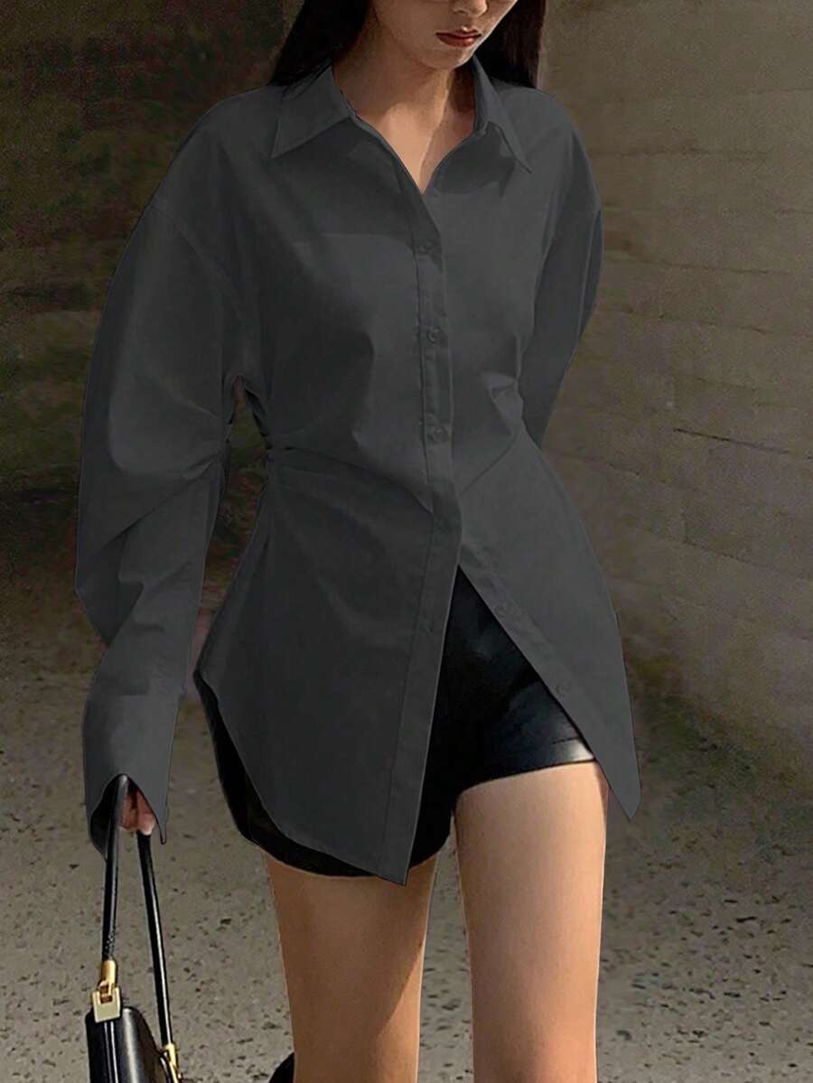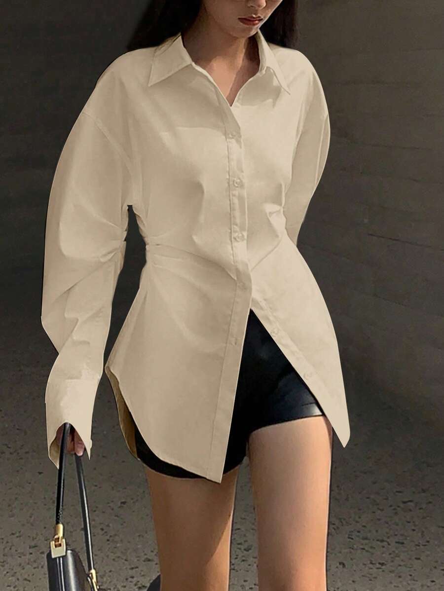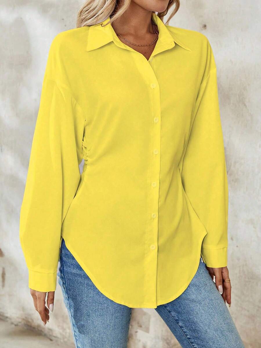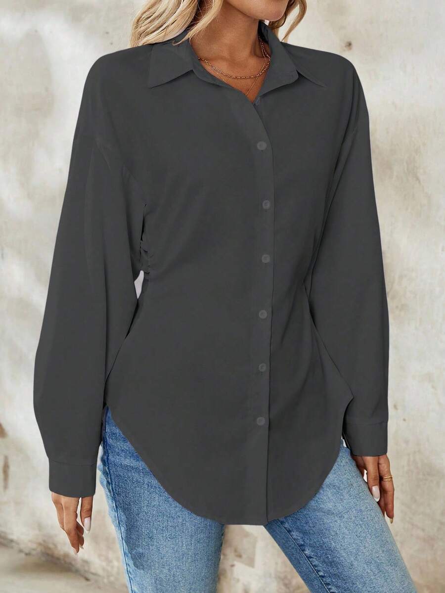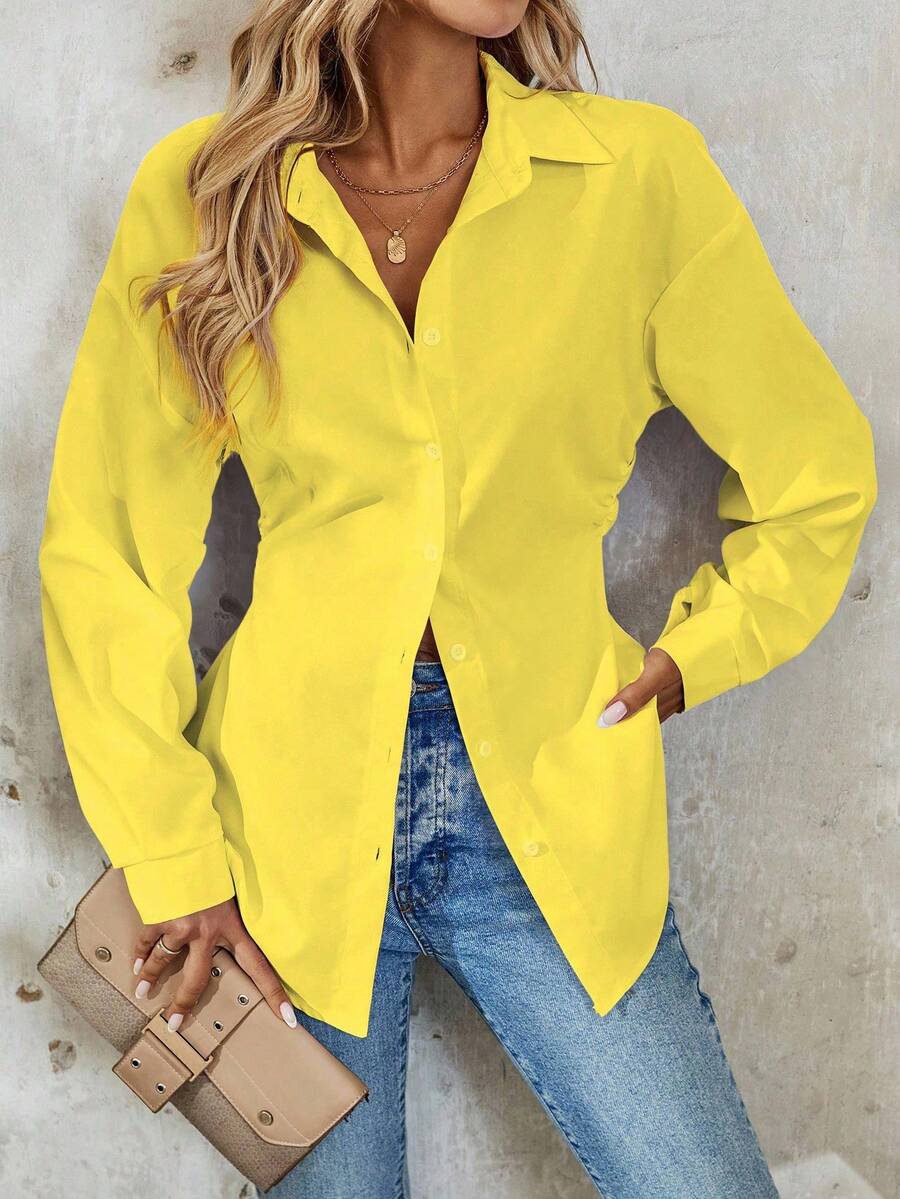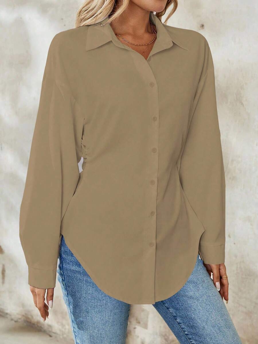 MAJA Ženska elegantna bluzica sa dugim rukavima u jednobojnoj boji