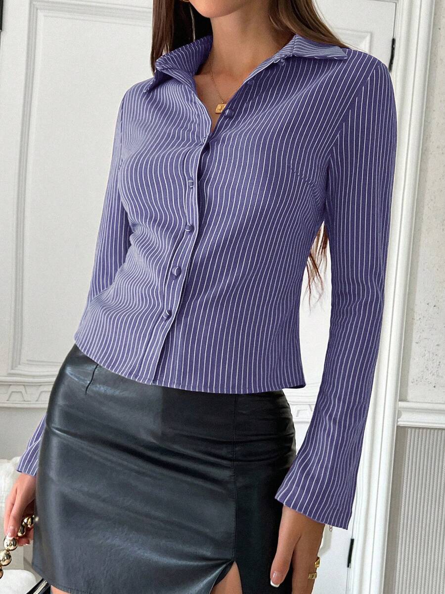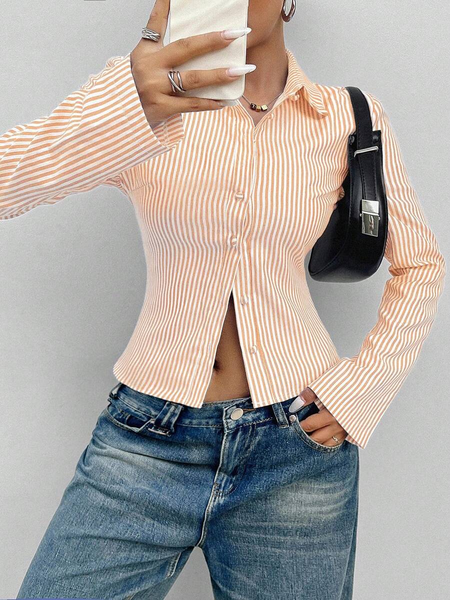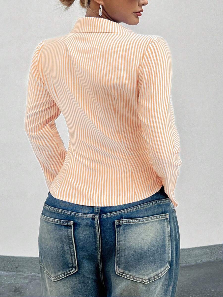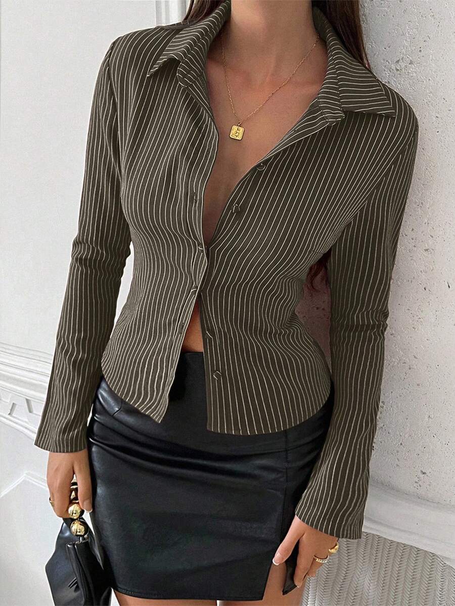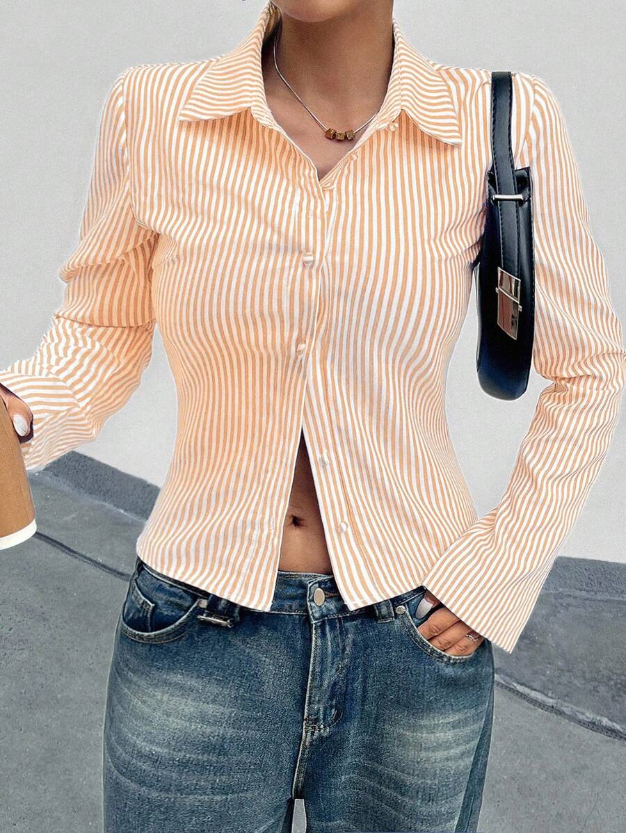 MAJA Ženska prugasta košulja dugih rukava s kopčanjem za casual/rad