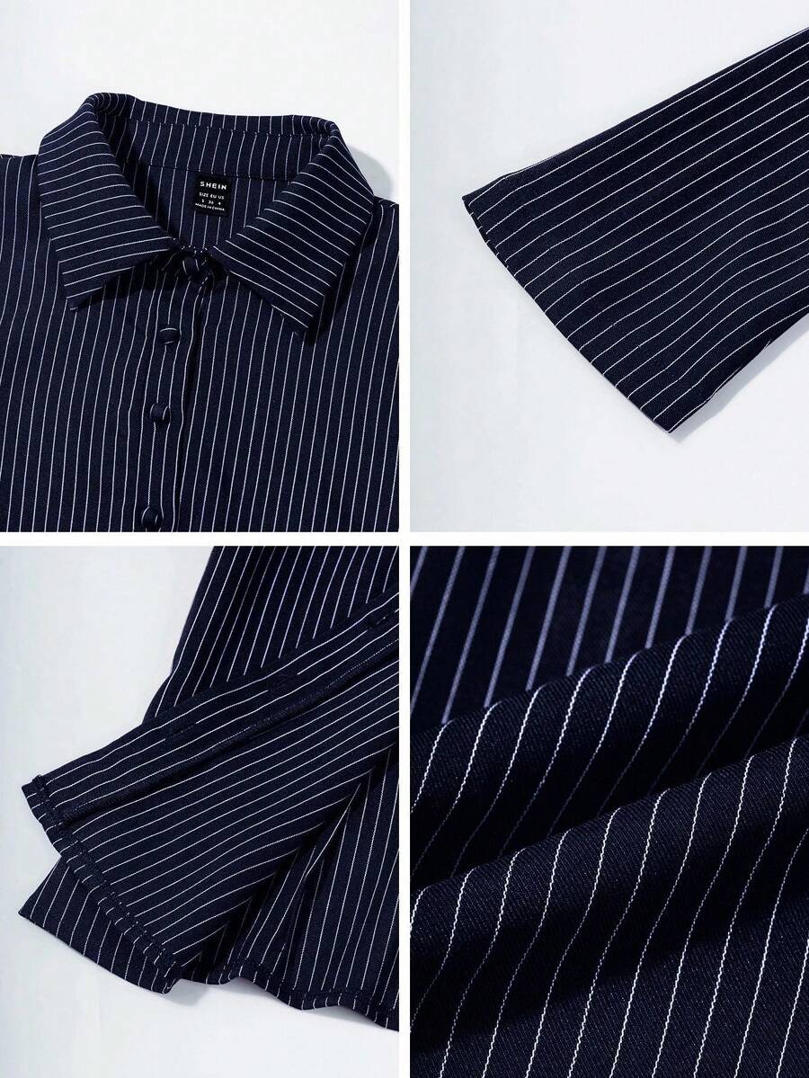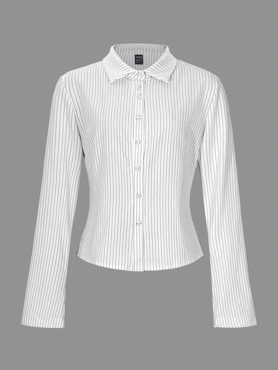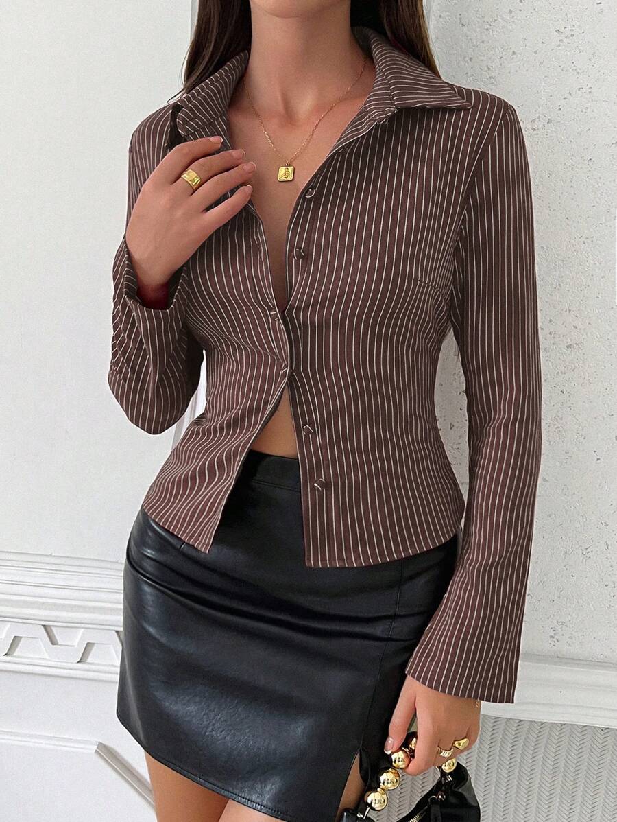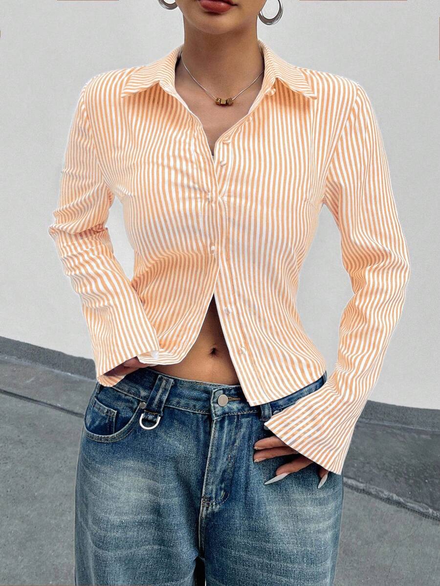 MAJA Ženska prugasta košulja dugih rukava s kopčanjem za casual/rad