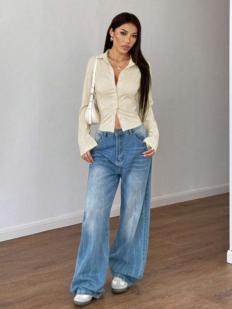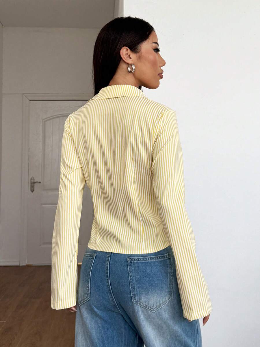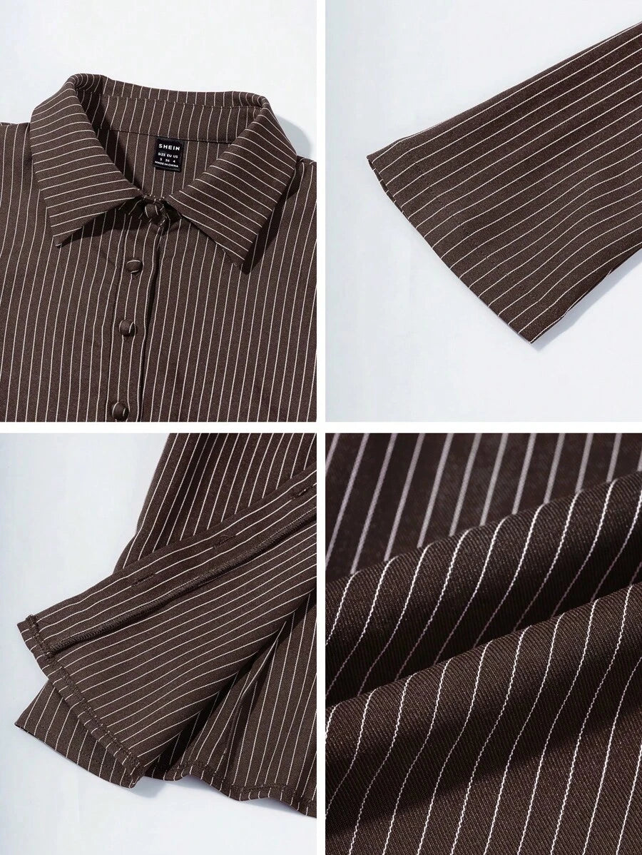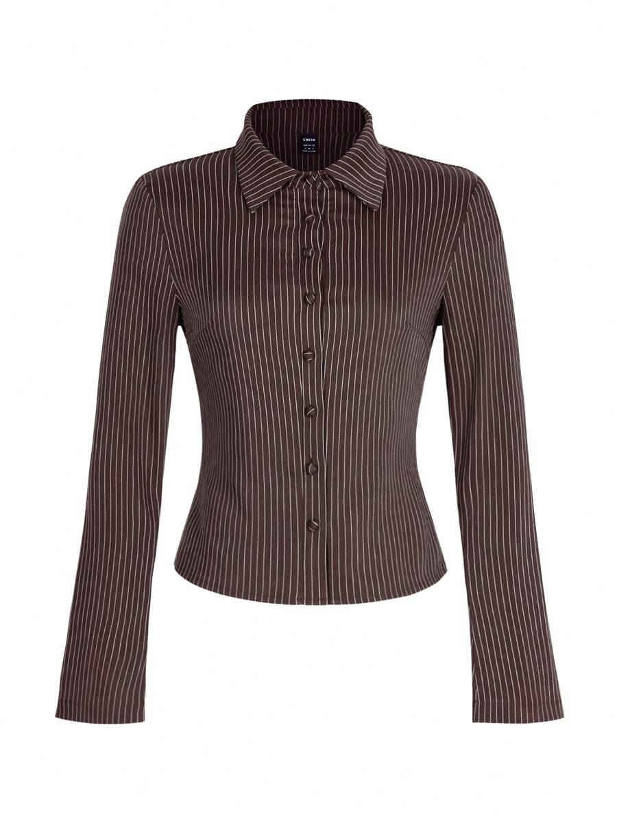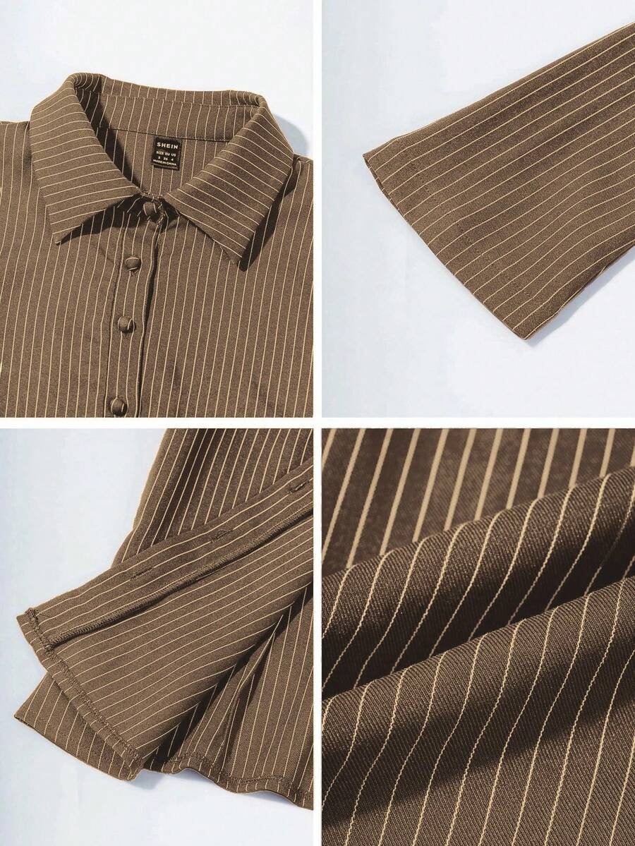 MAJA Ženska prugasta košulja dugih rukava s kopčanjem za casual/rad
