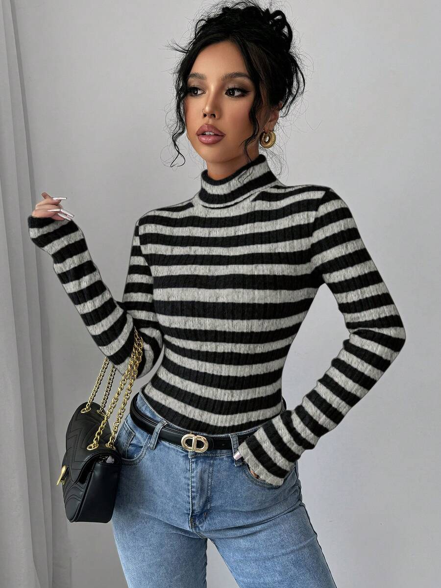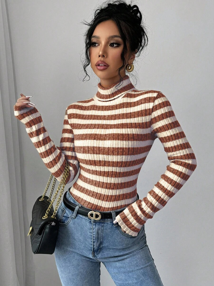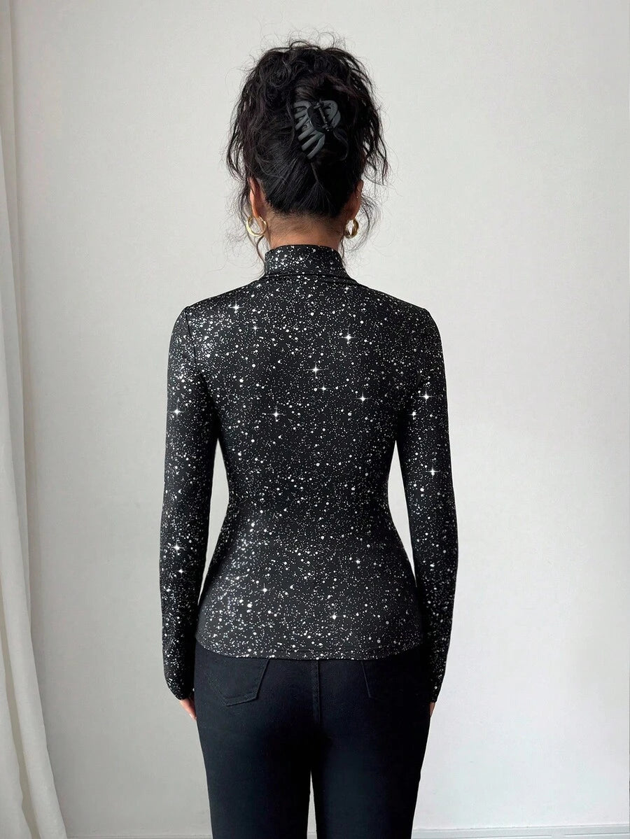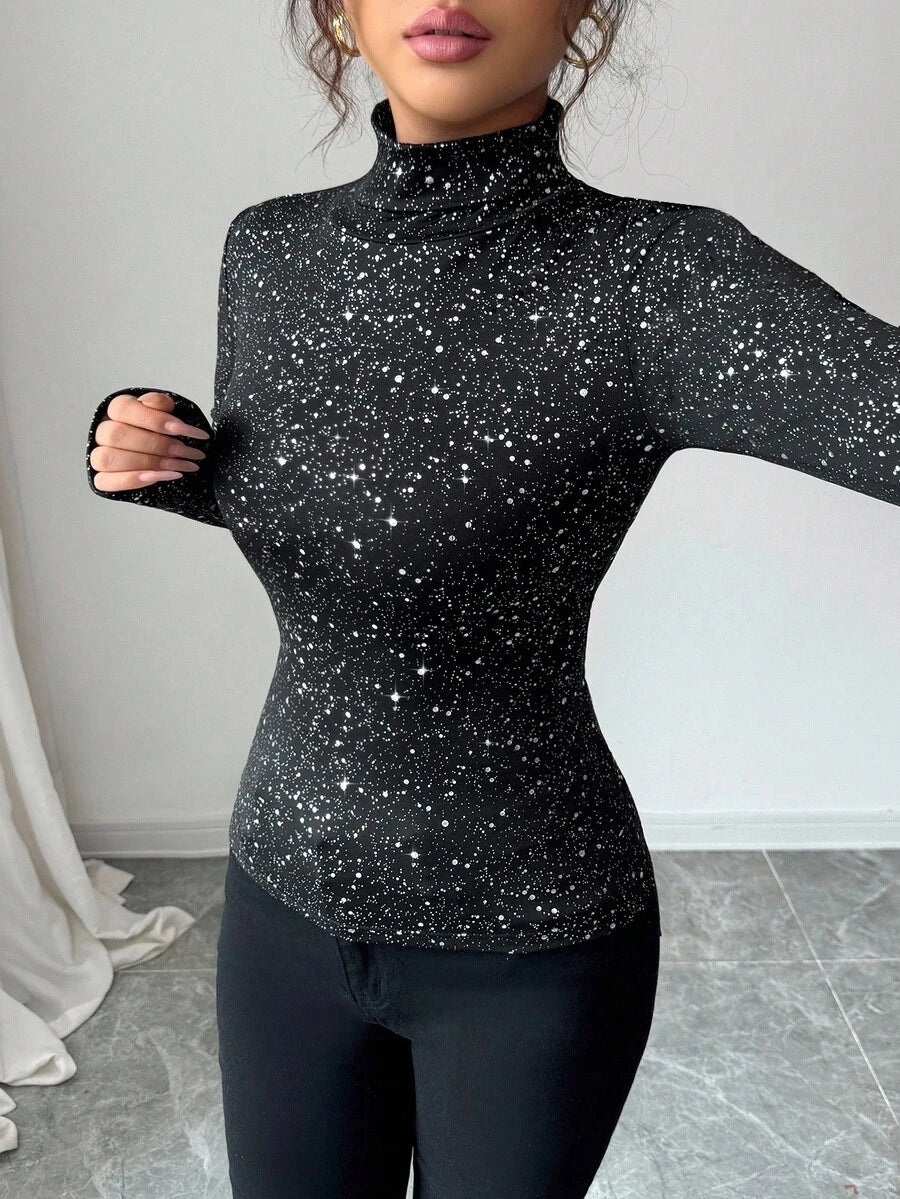 MAJA Ženska rani jesenji majica s visokim ovratnikom i dugim rukavima