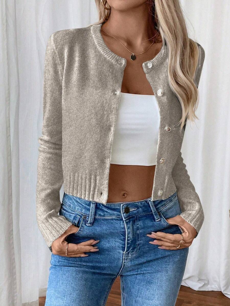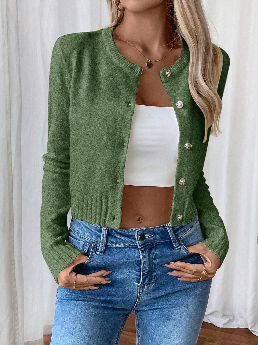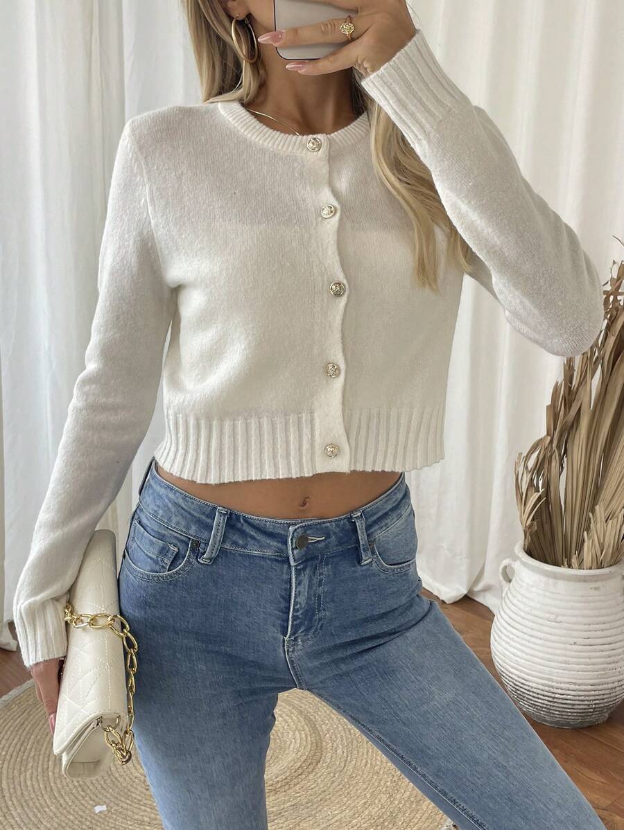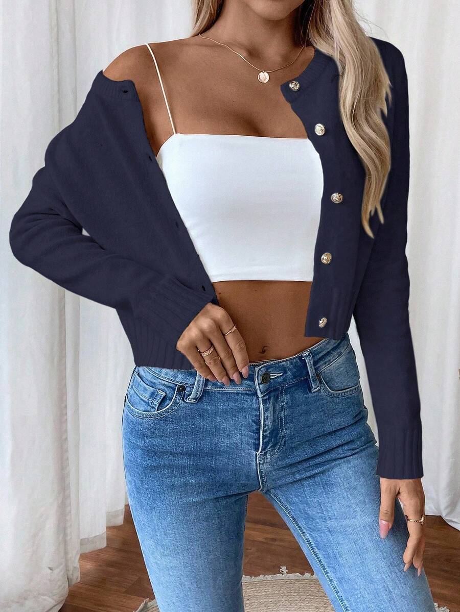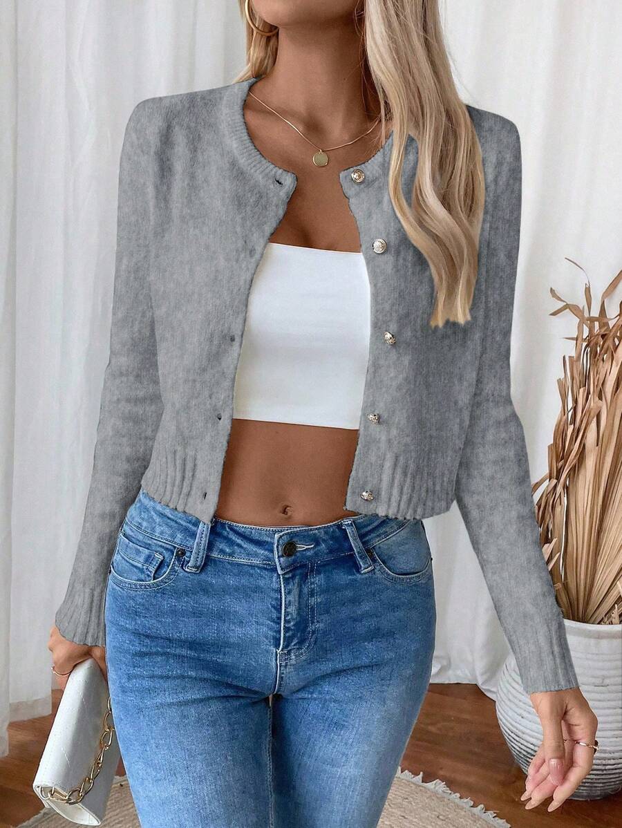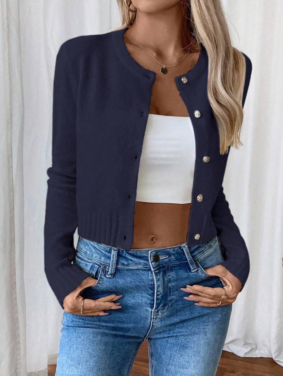 MAJA Ženski kratki kardigan sa zlatnim dugmadima i rebrastim dizajnom, pogodan za proleće i jesen