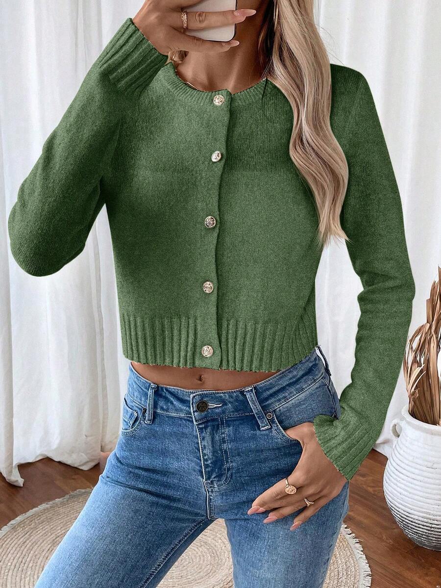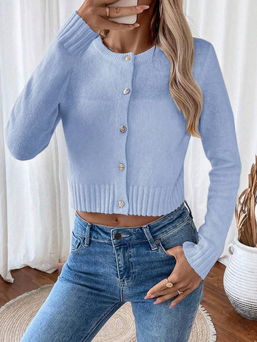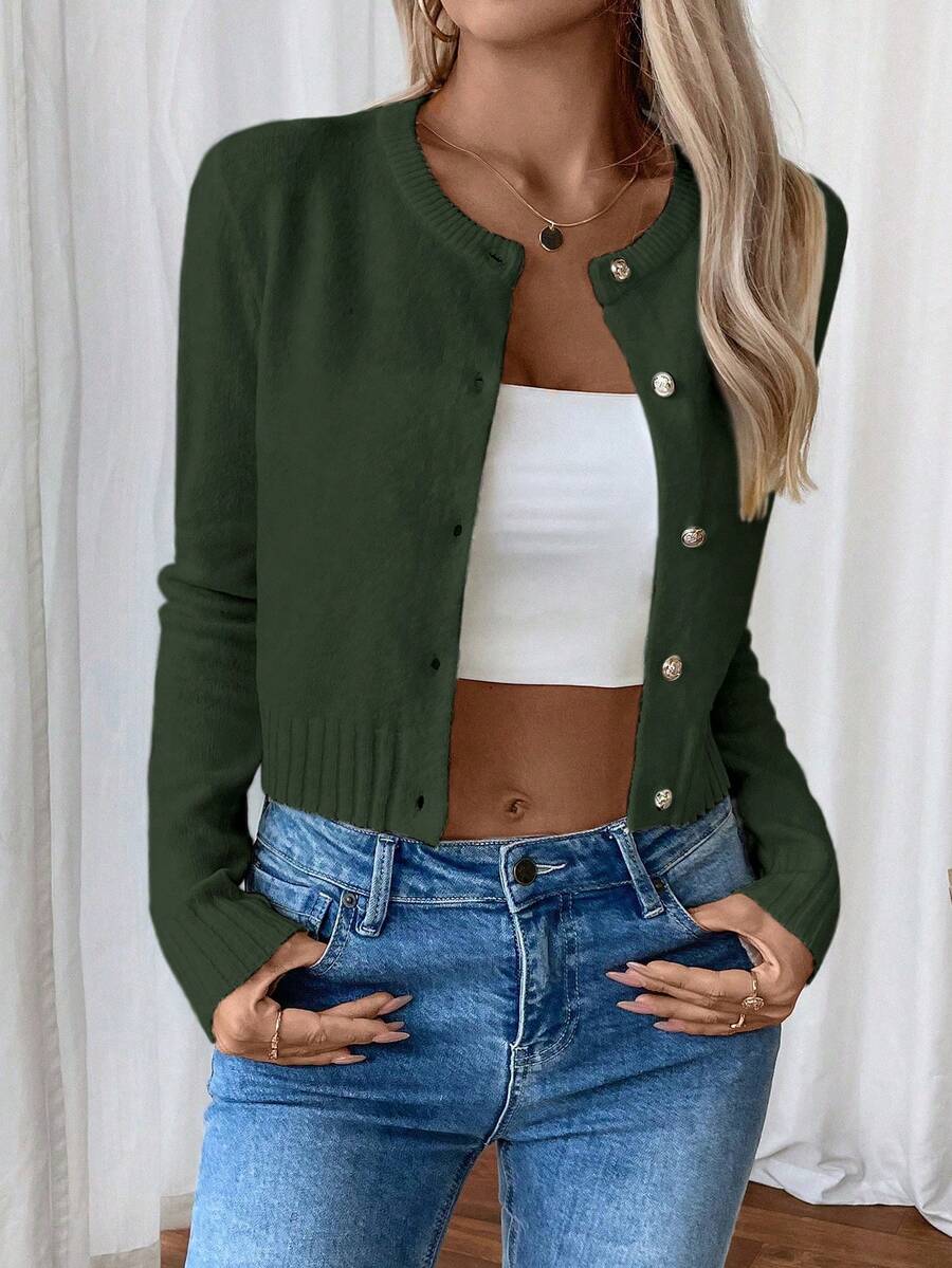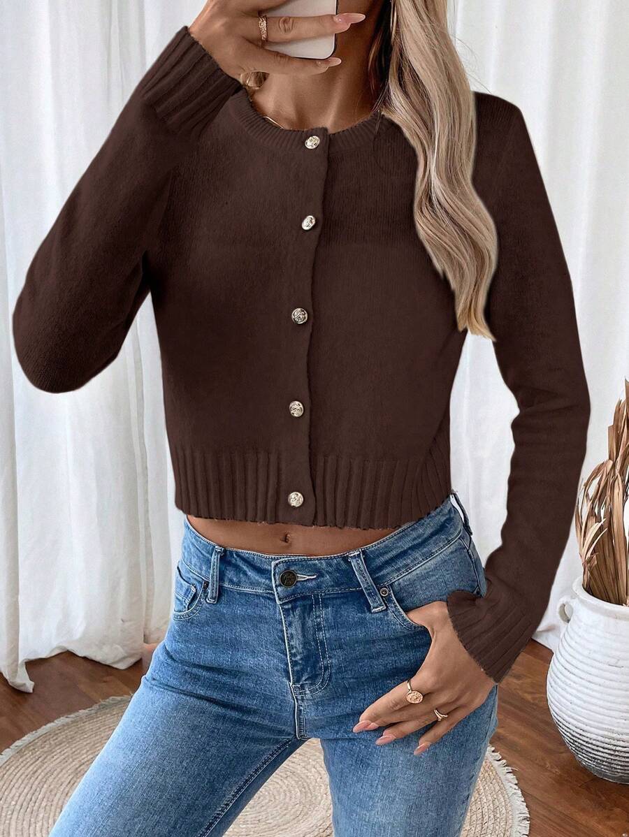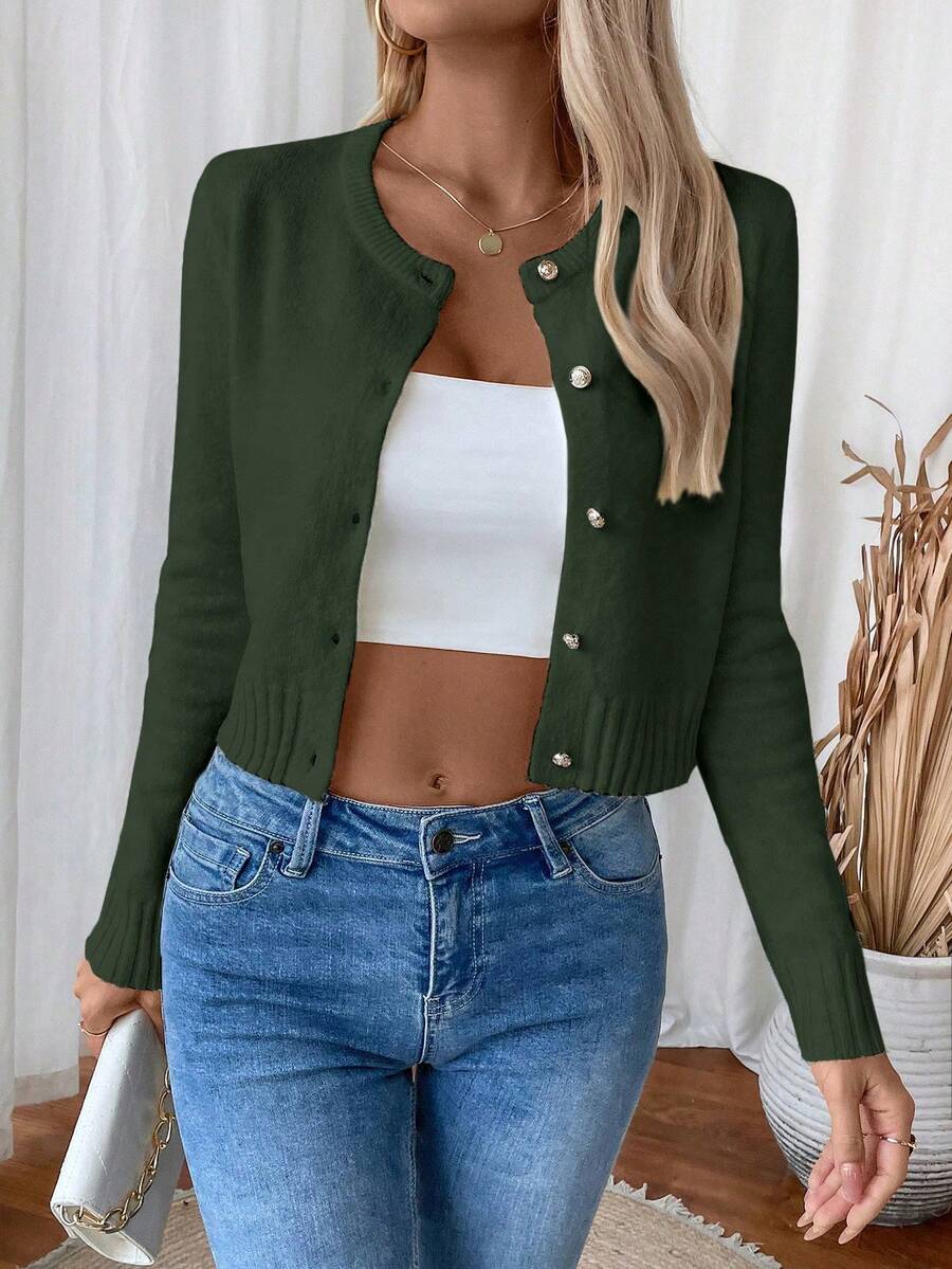 MAJA Ženski kratki kardigan sa zlatnim dugmadima i rebrastim dizajnom, pogodan za proleće i jesen