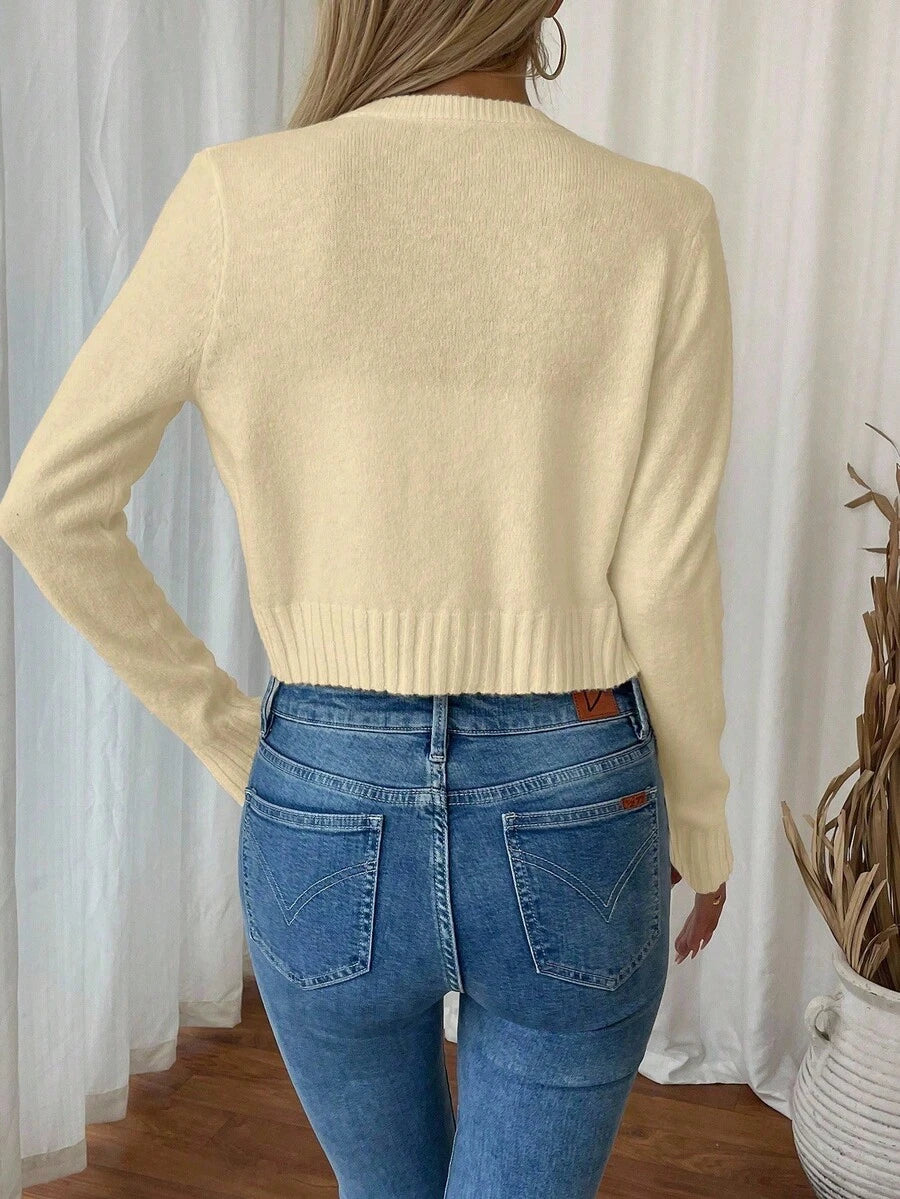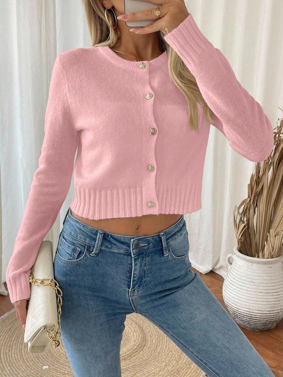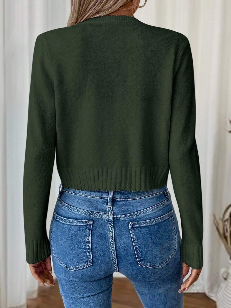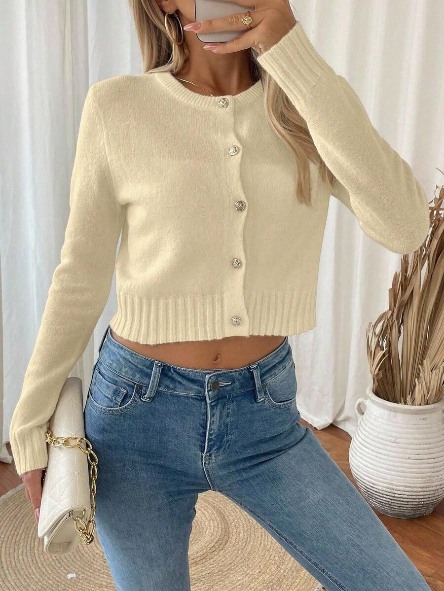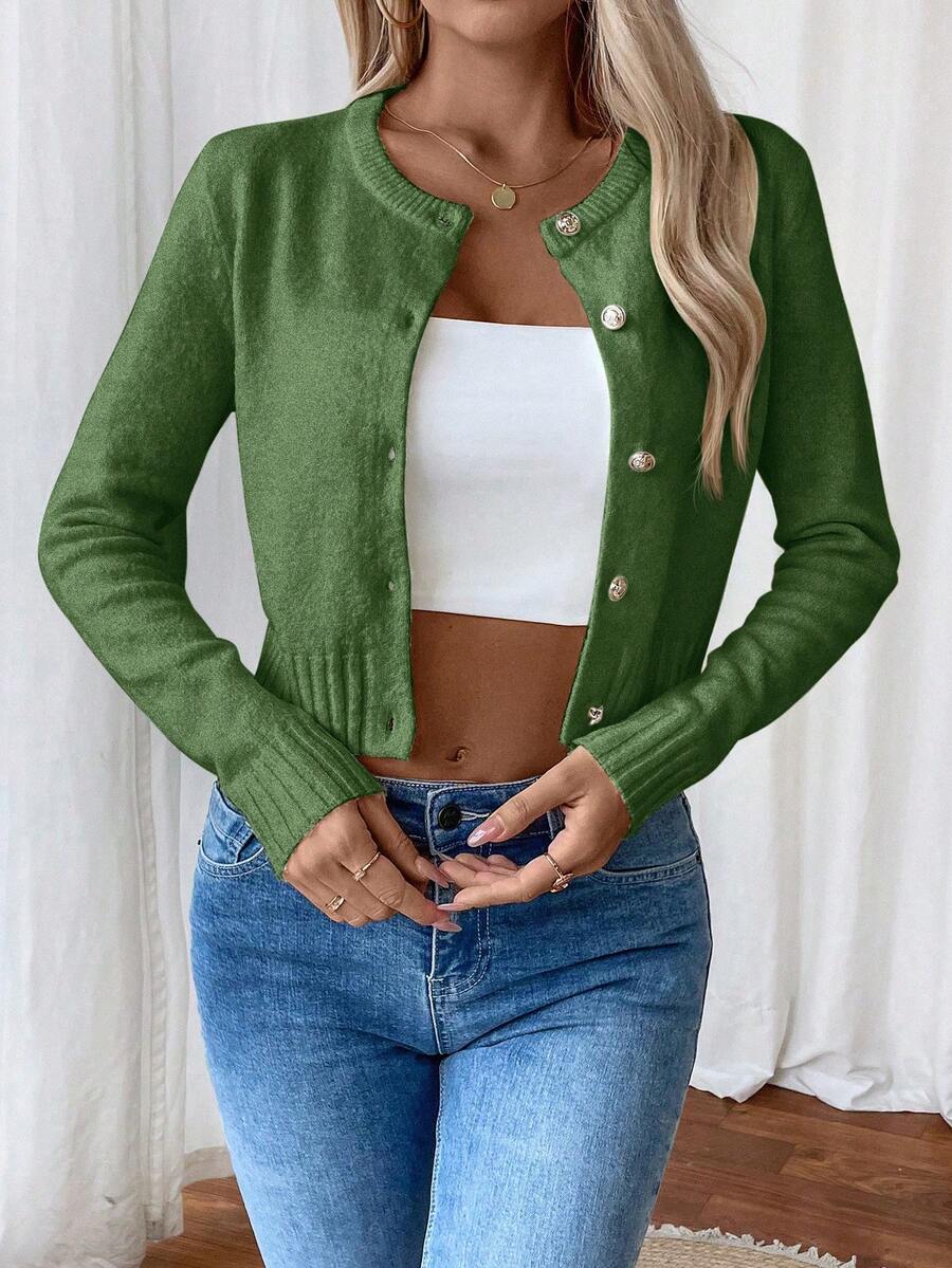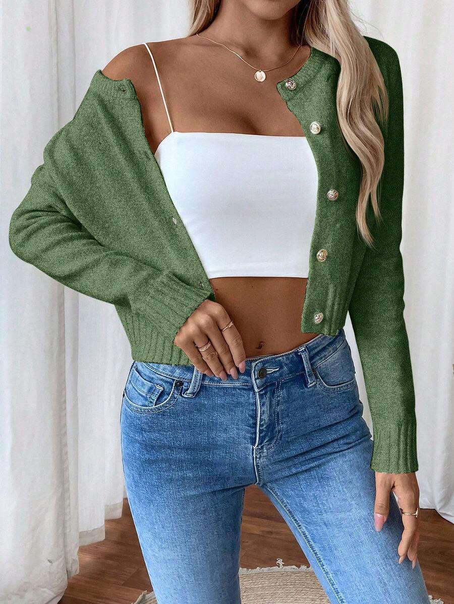 MAJA Ženski kratki kardigan sa zlatnim dugmadima i rebrastim dizajnom, pogodan za proleće i jesen
