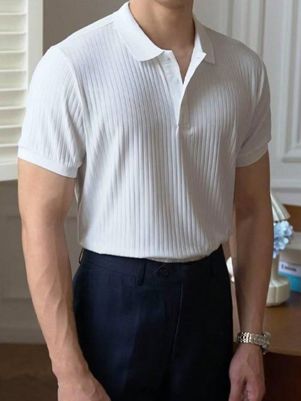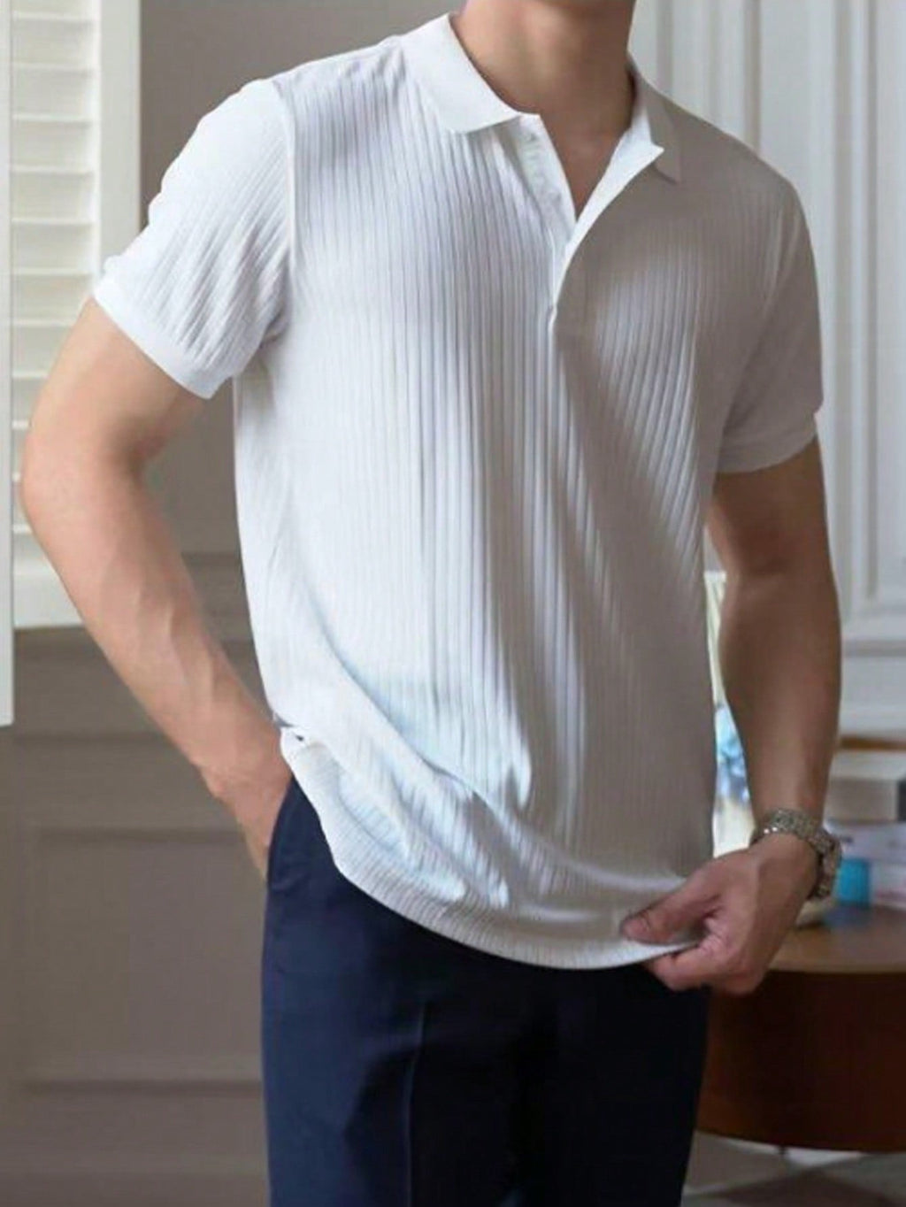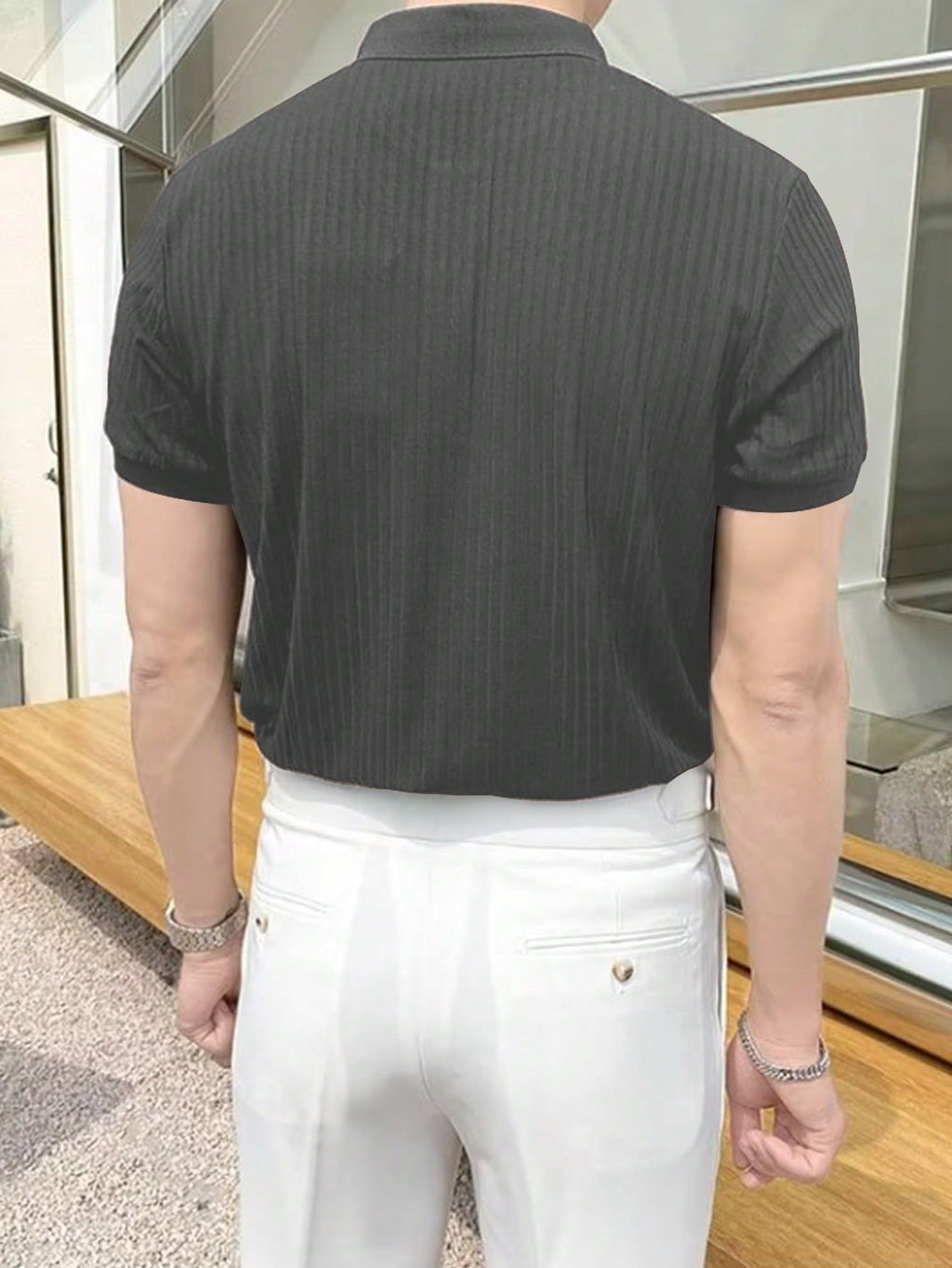 Muška rebrasta polo majica kratkih rukava