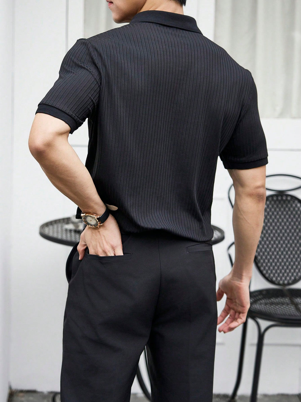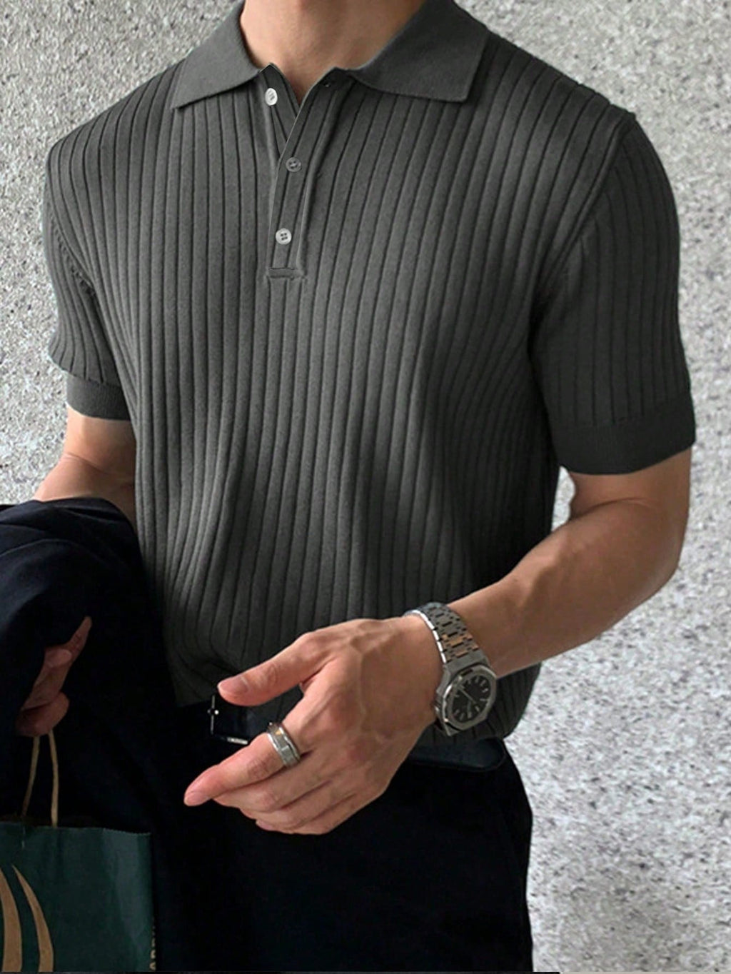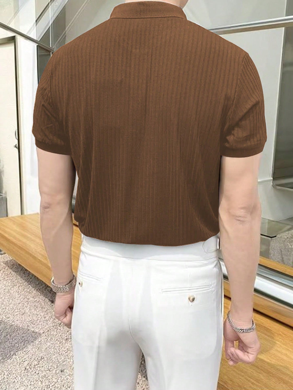 Muška rebrasta polo majica kratkih rukava