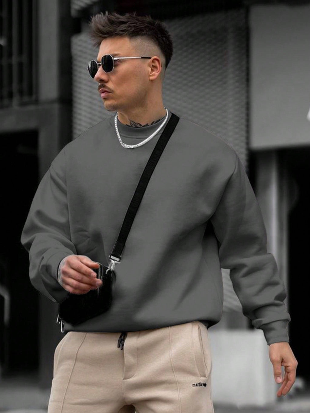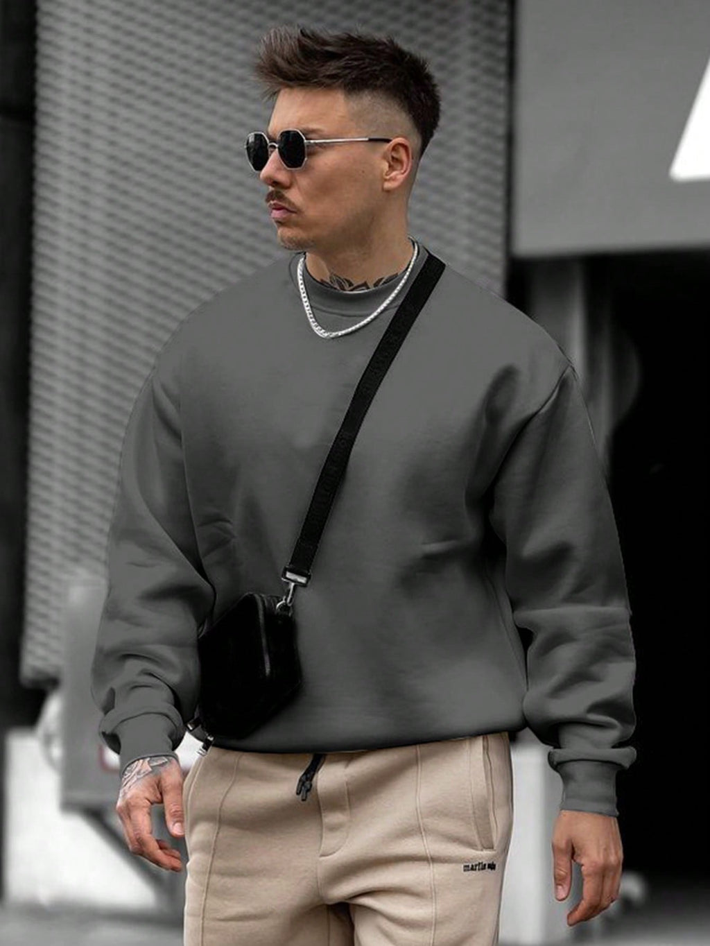 Muška jednobojna majica dugih rukava sa okruglim izrezom