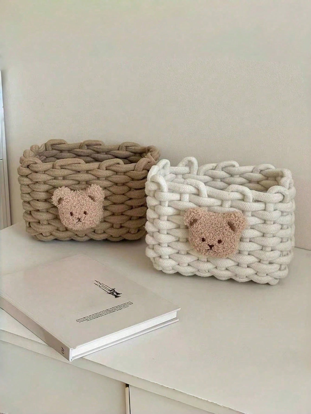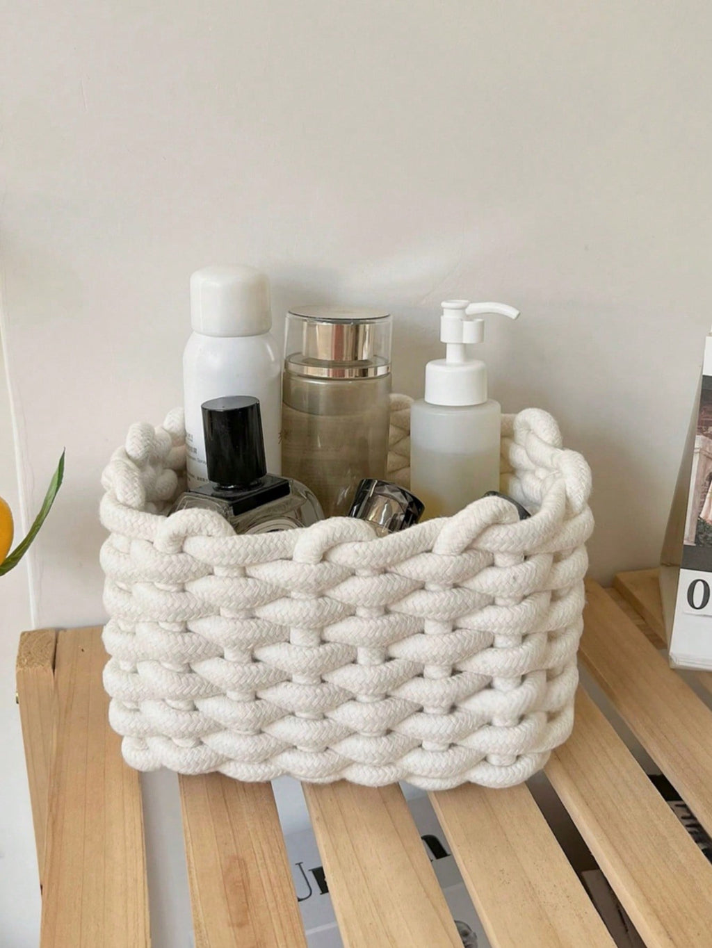 MIU 1 Pure Hand-Woven Cosmetic Brush Case, And Skin Care Product Storage And Organization, Classic White/Khaki,For Holiday Beach, Bathroom Collection, Bedroom Collection, Large Capacity
