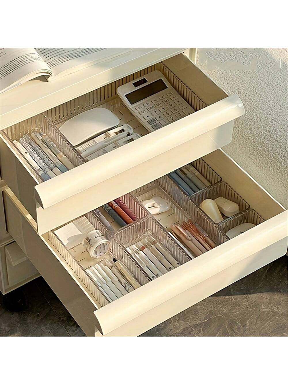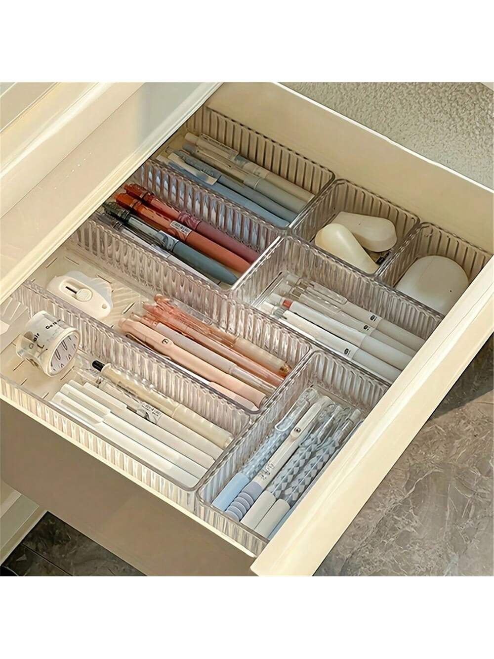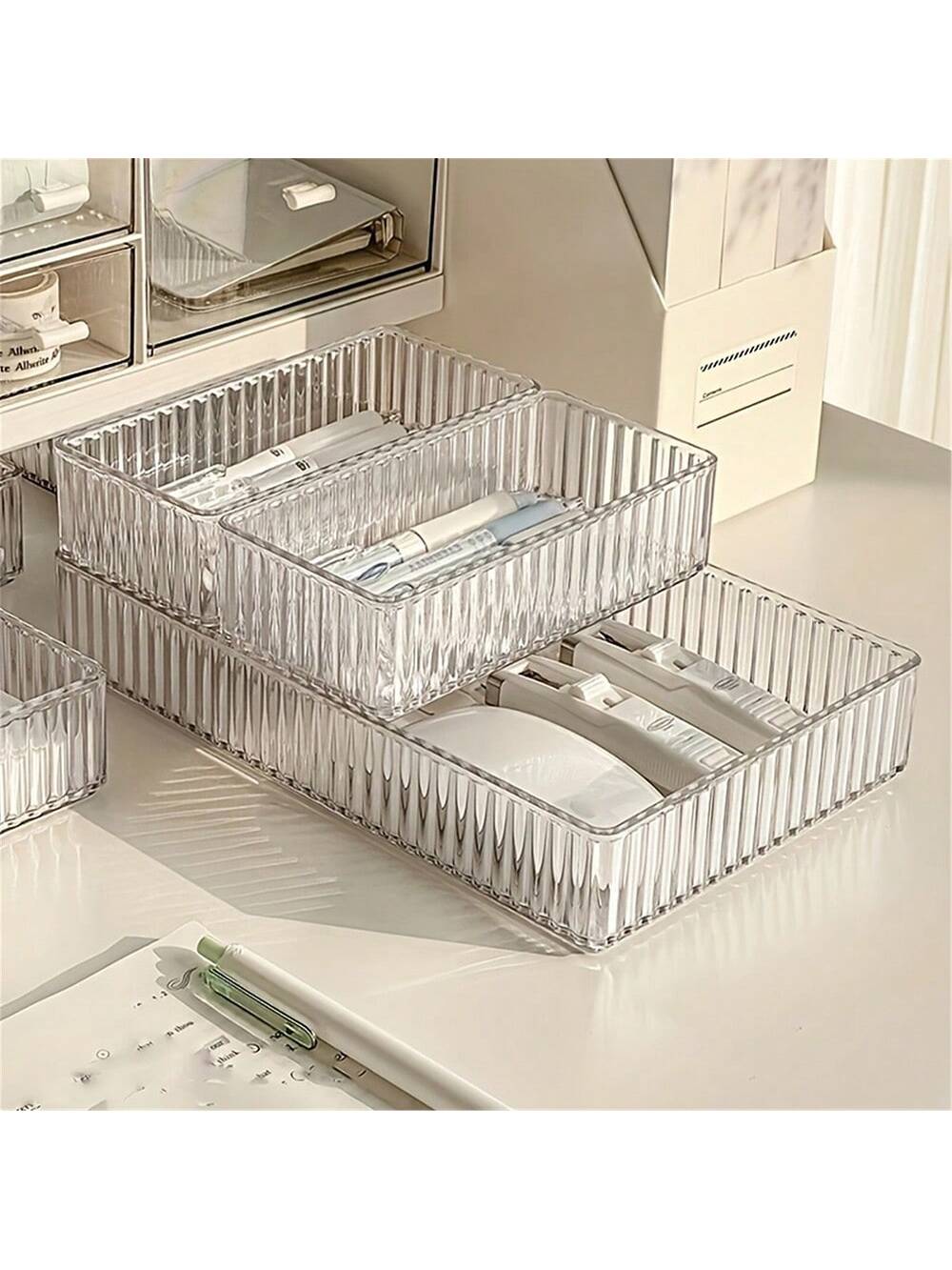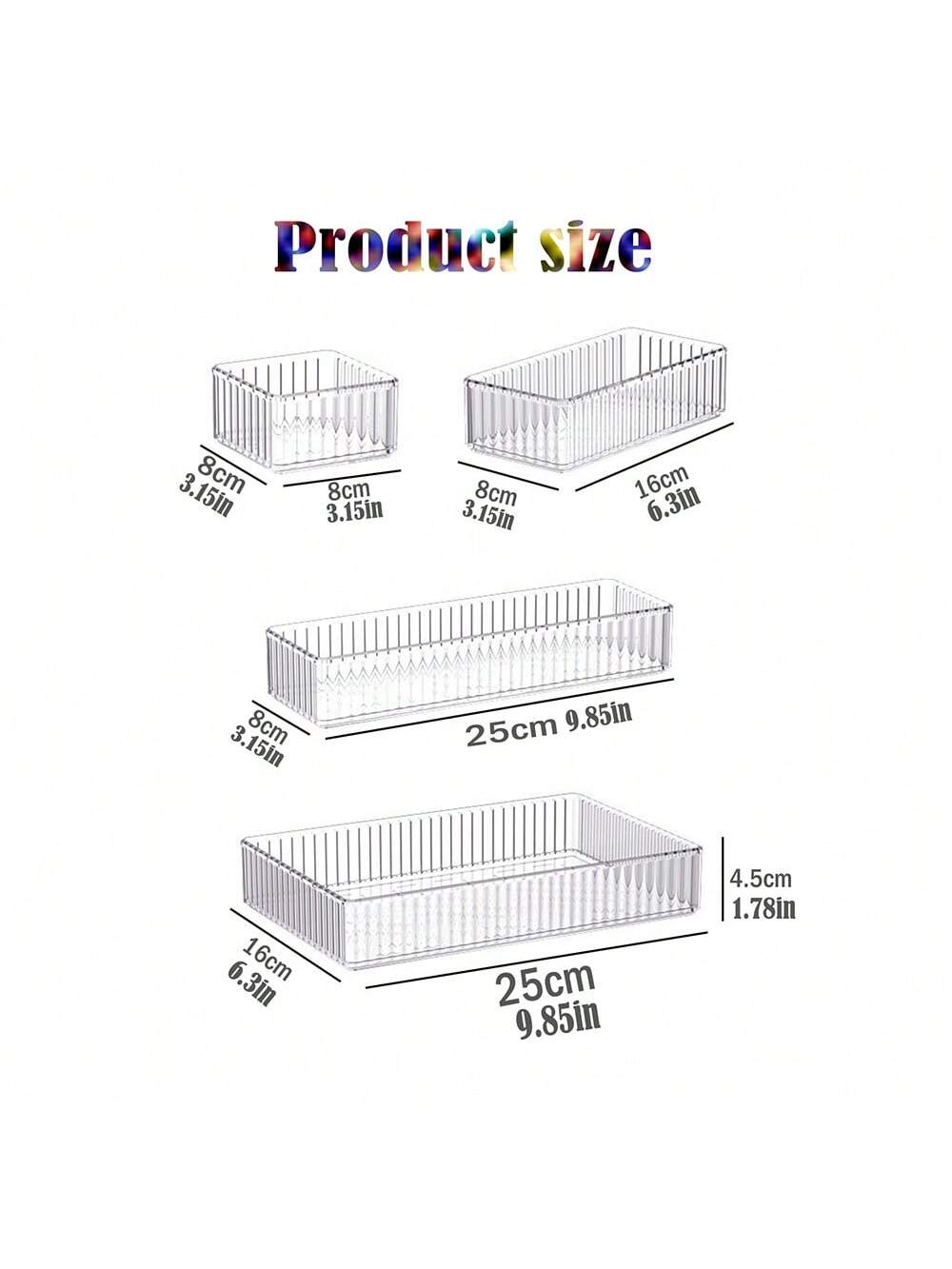 MIU 10/1 Set Drawer Divider Makeup Organizer Box, Transparent Cosmetic Storage Tray/Box, 4 Different Sizes, Multi-Purpose For Vanity, Kitchen, Studio, Bedroom