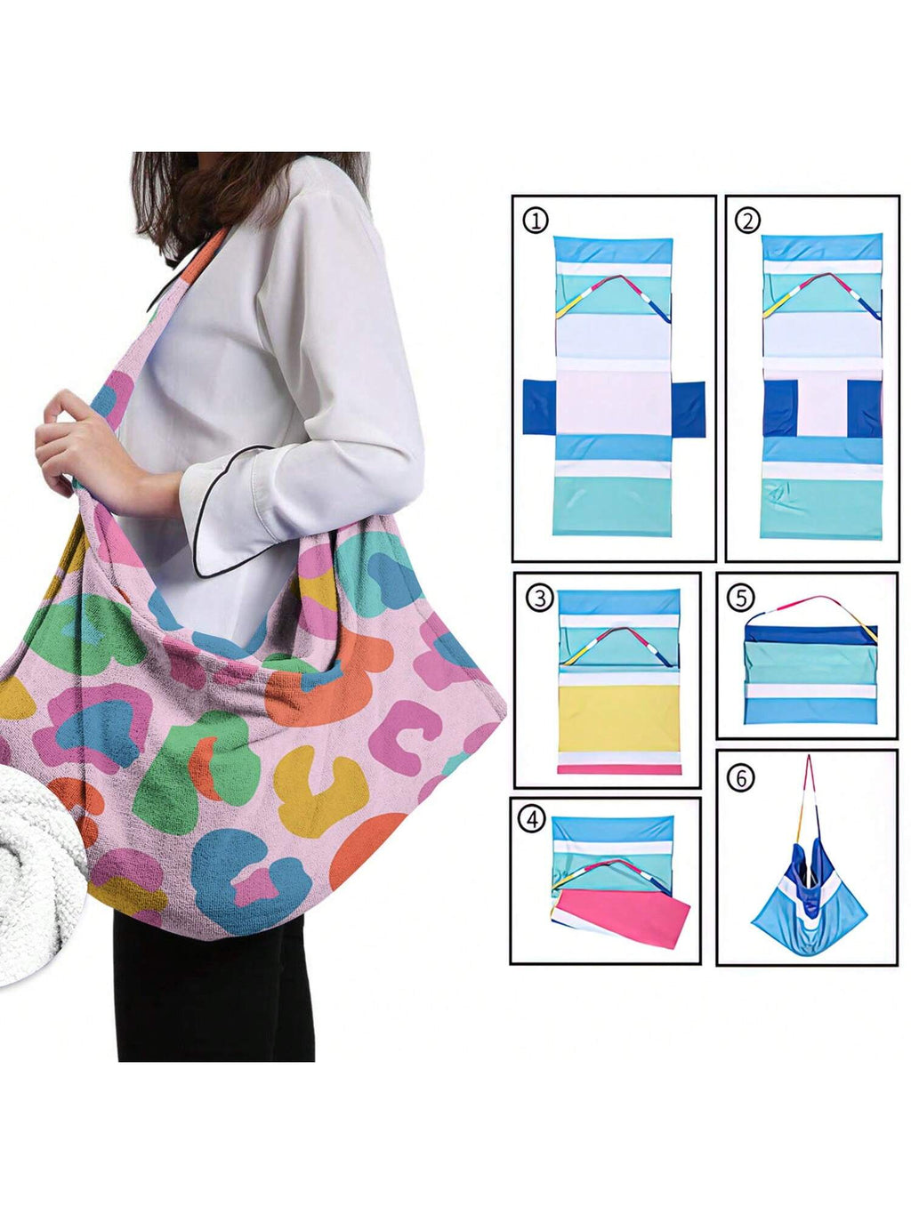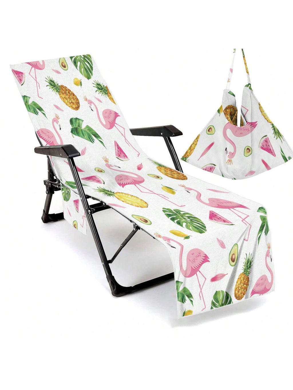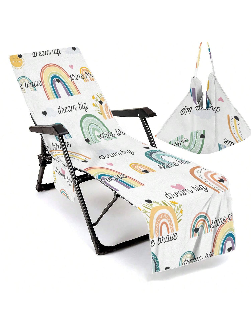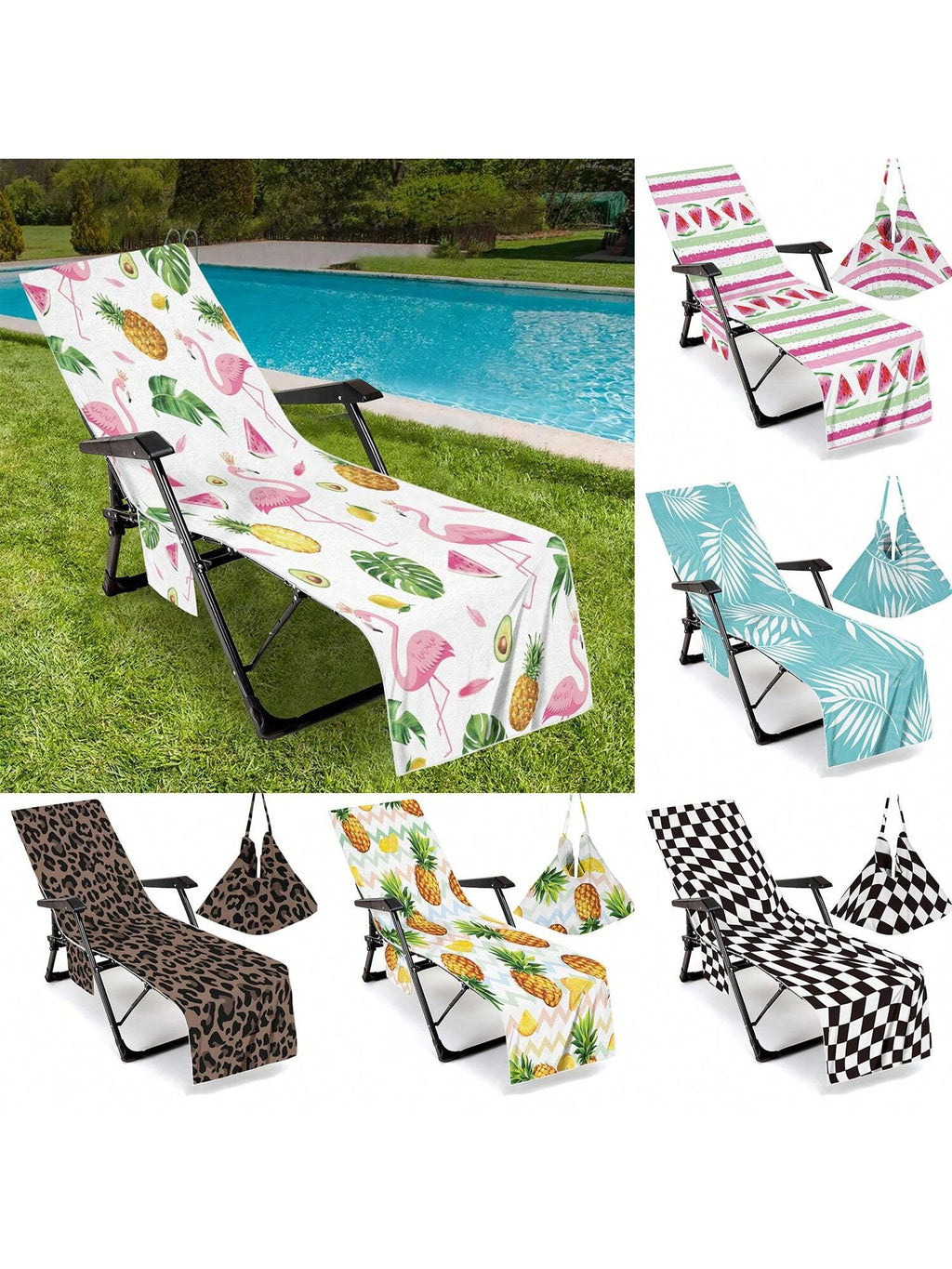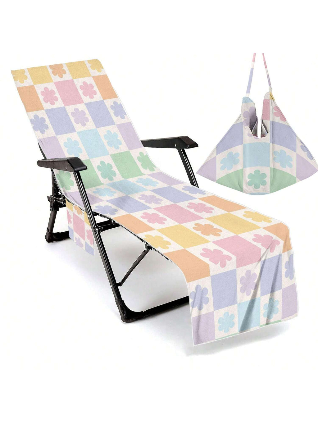 MIU 1pc Foldable Beach Chair Cover, Can Be Folded Into A Handbag, With Side Pockets For Sunglasses And Phones. Beach Chair Towel Cover, Swimming Pool Lounge Chair Cover, Convenient To Carry Beach Essentials
