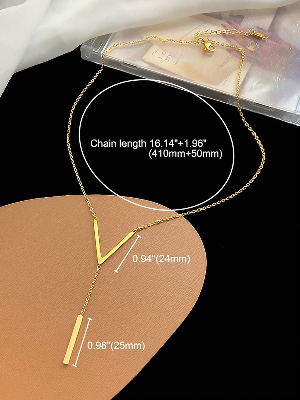 MIU 1pc Minimalist Style Letter Pendant Stainless Steel Necklace With Gold Plating, Long Chain Jewelry Gift For Women's Party Girls