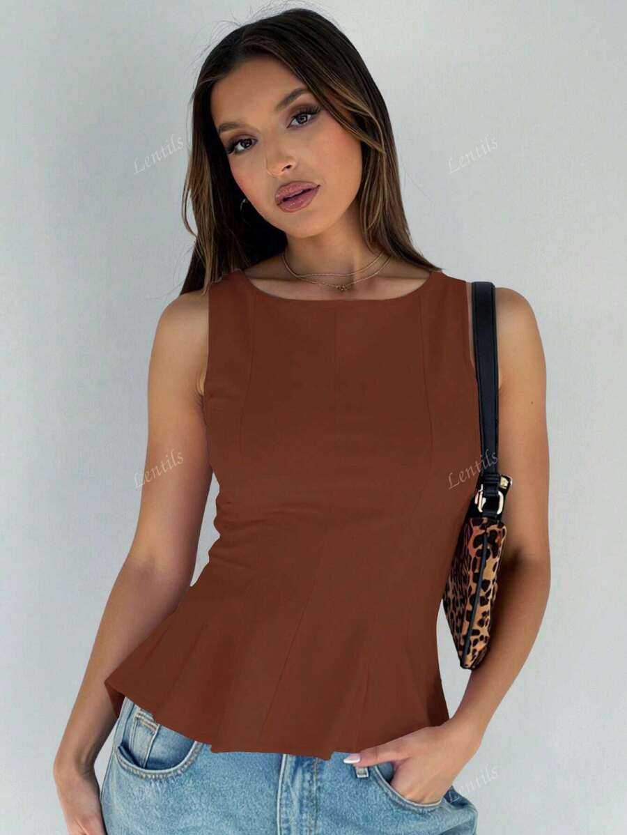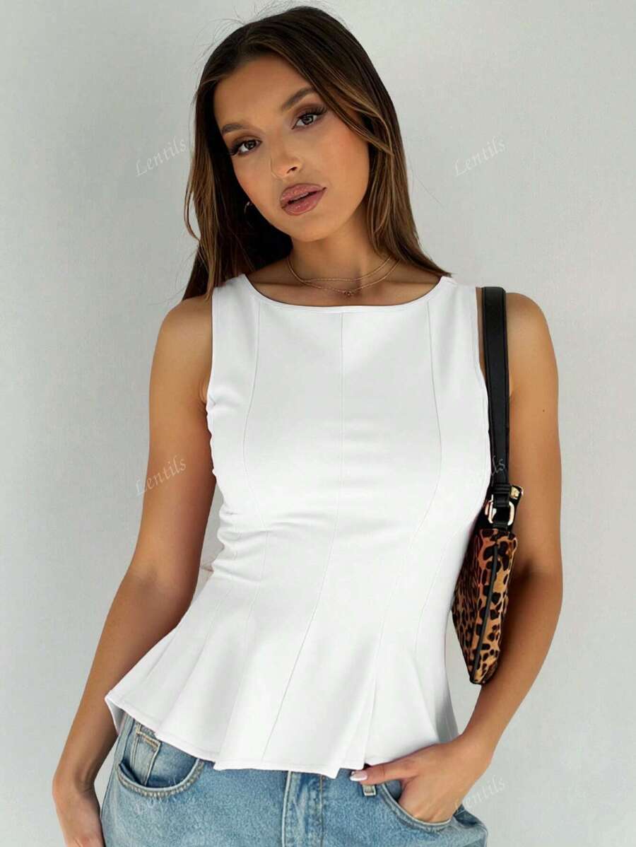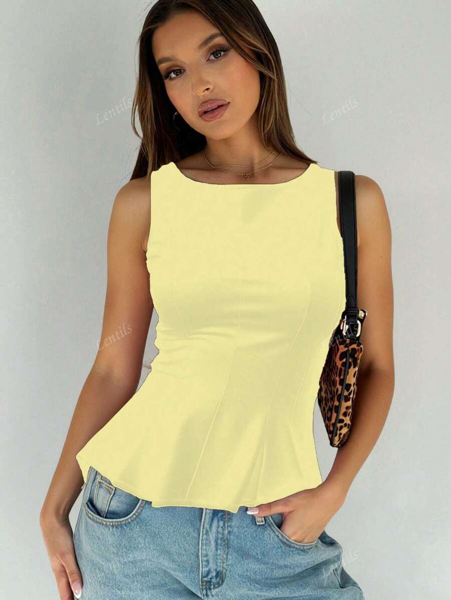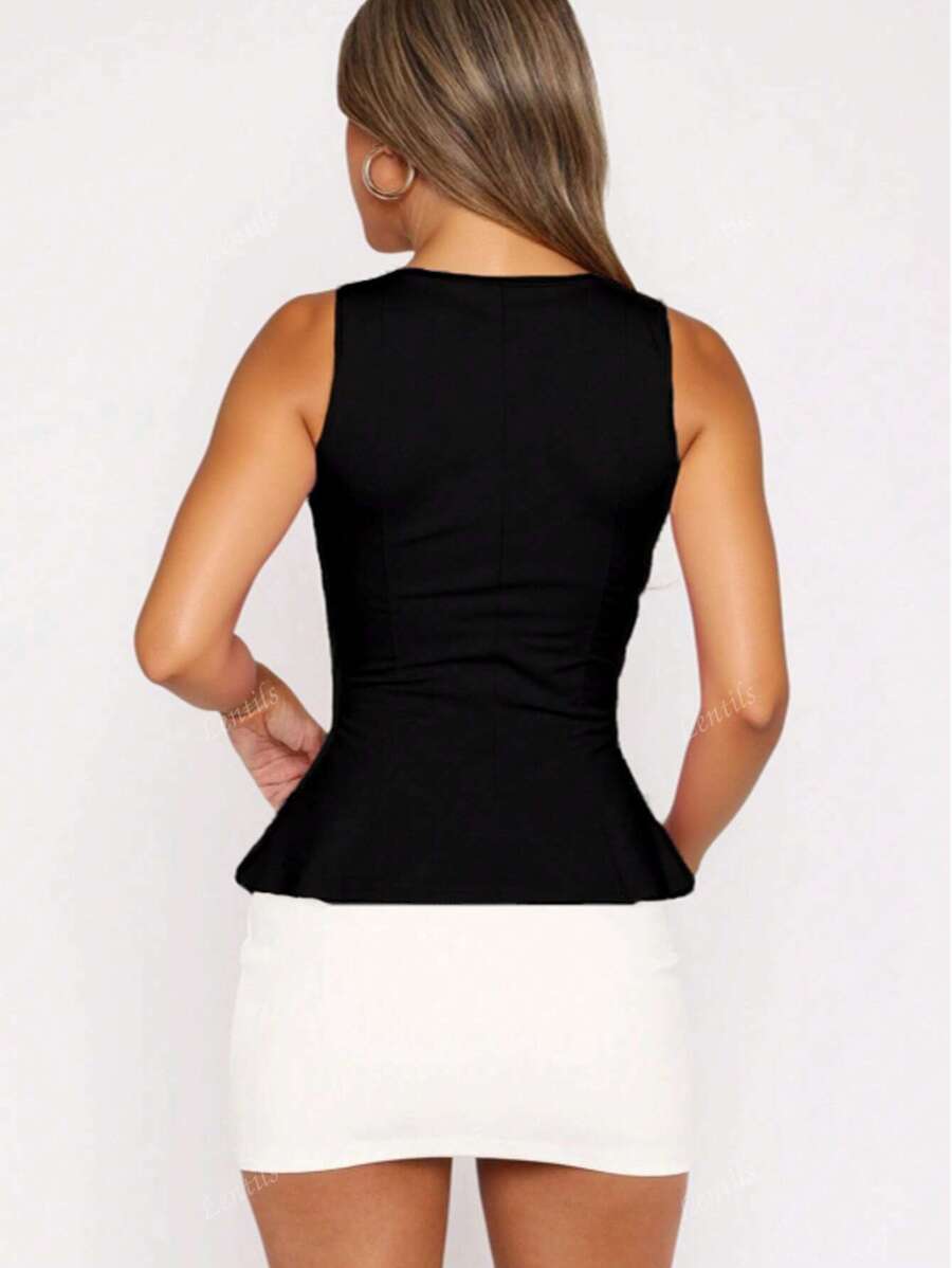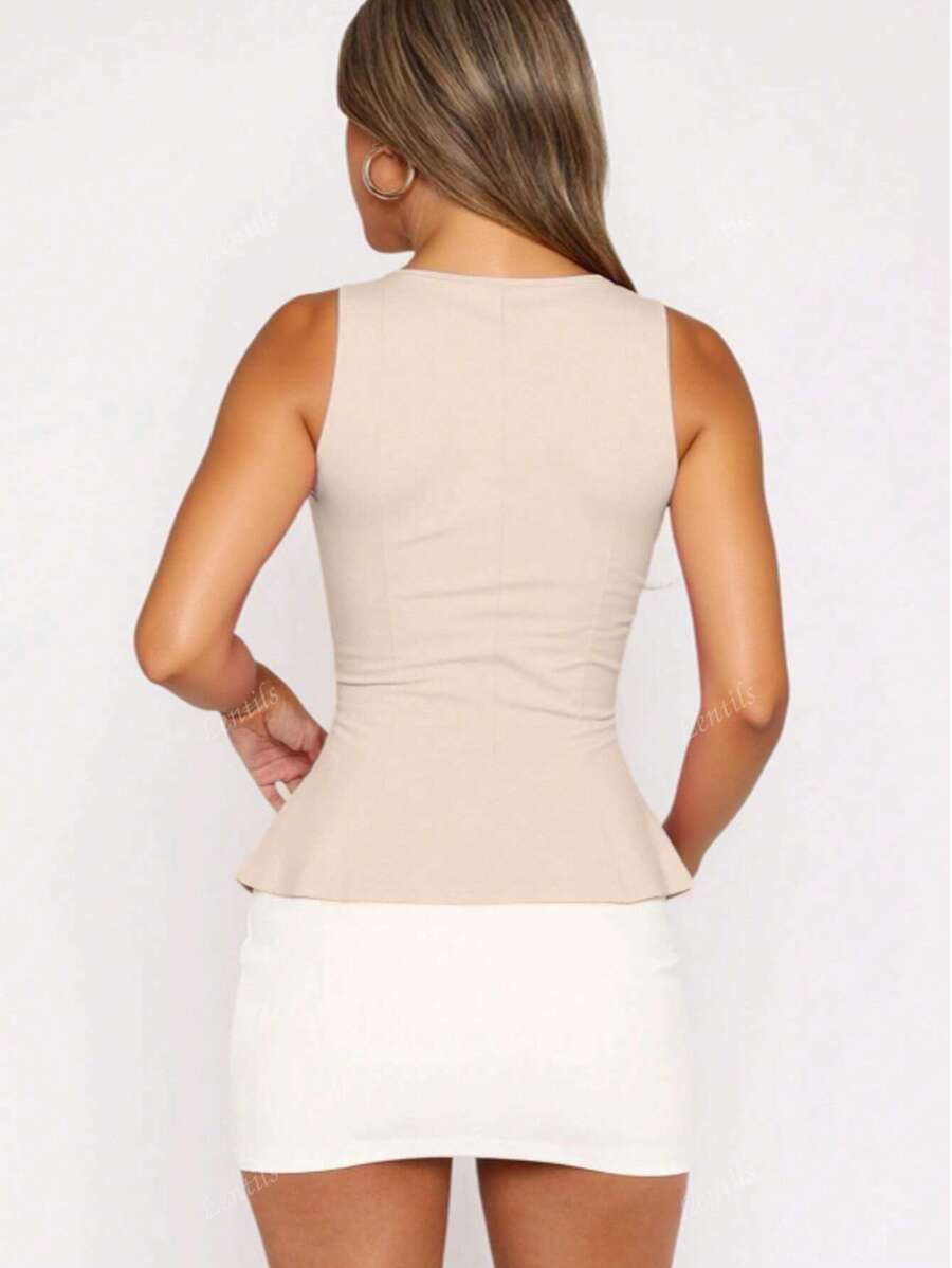 MIU 1pc Solid Color Ruffled Hem Knit Top, Casual Summer Wear