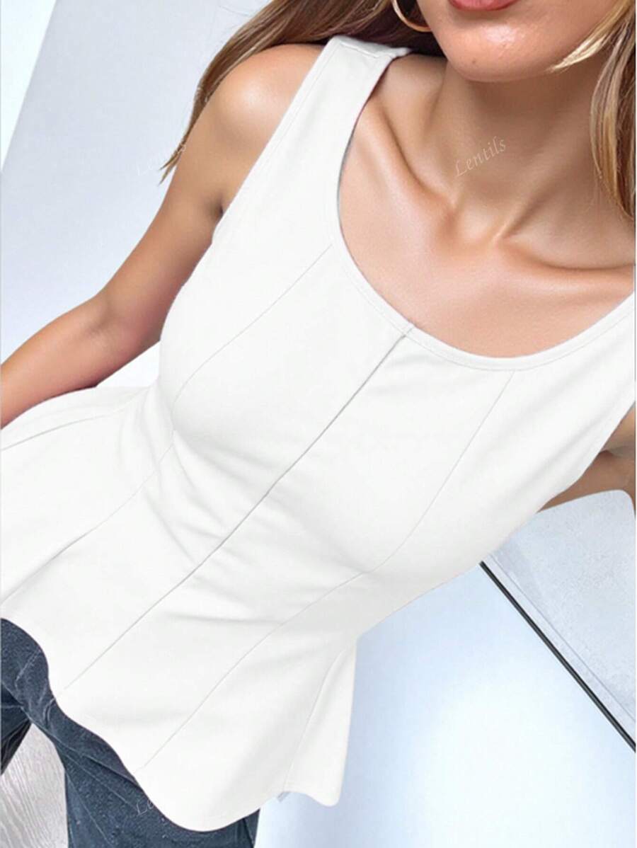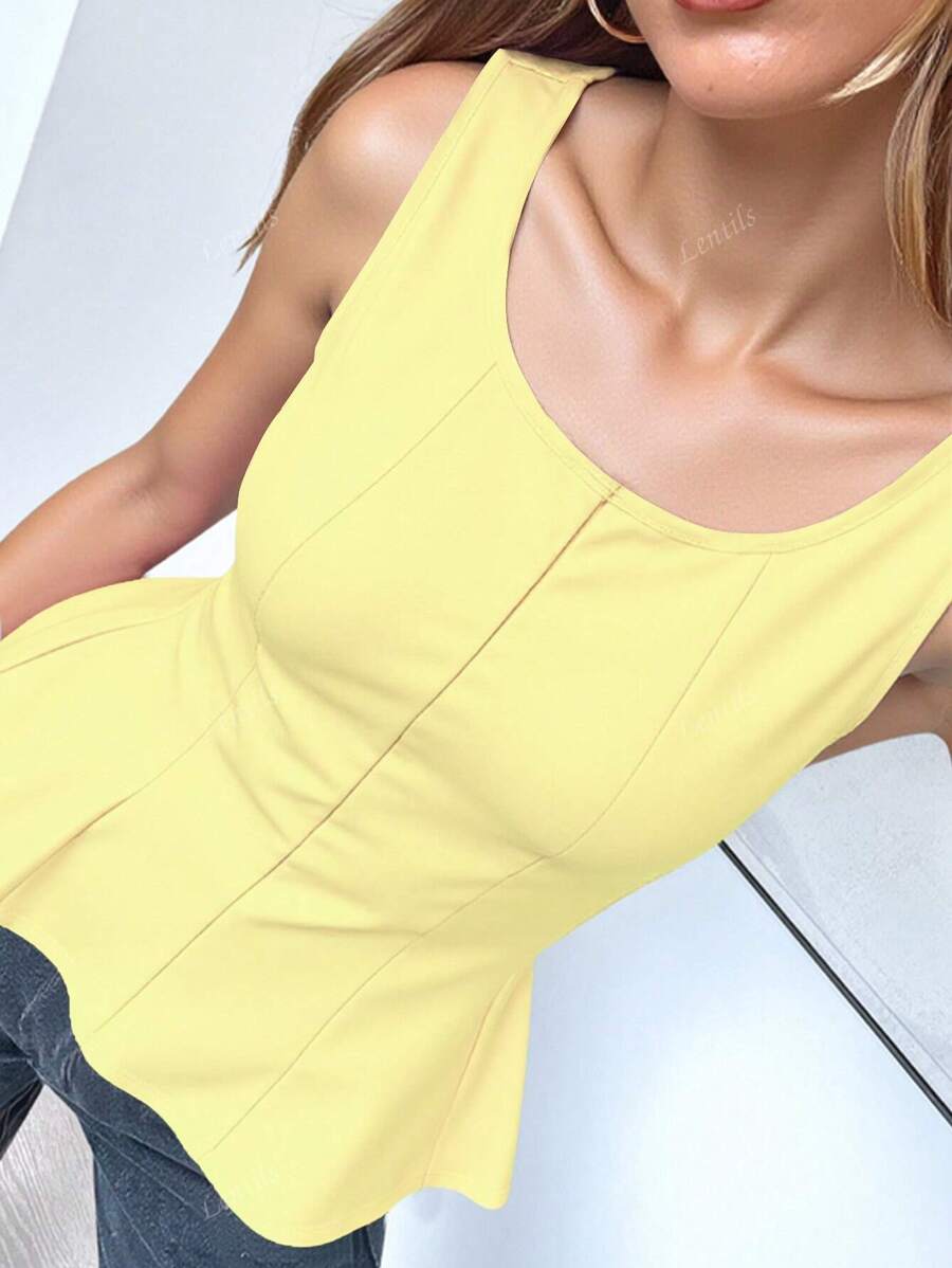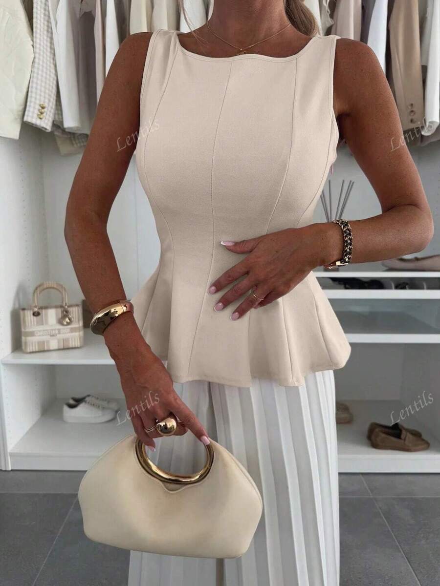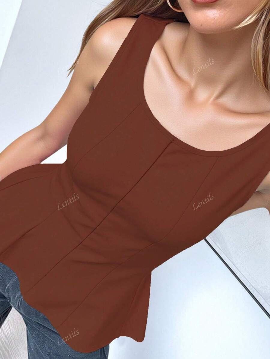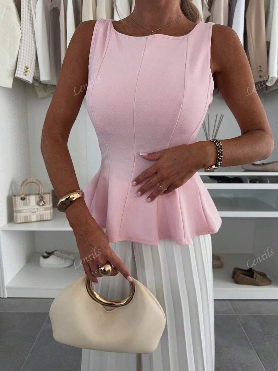 MIU 1pc Solid Color Ruffled Hem Knit Top, Casual Summer Wear