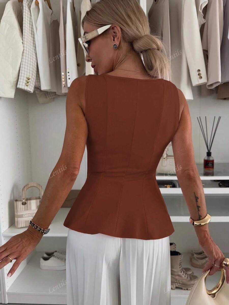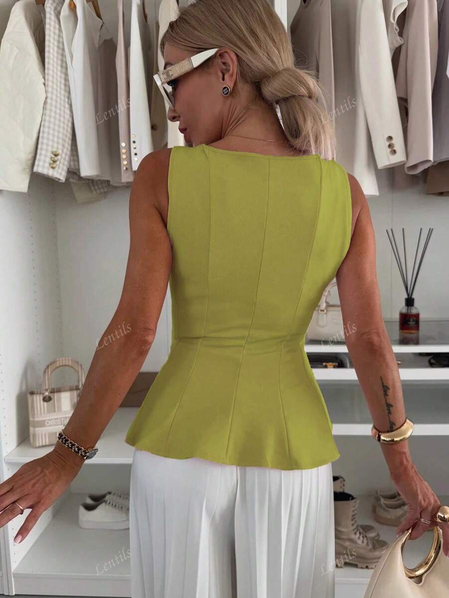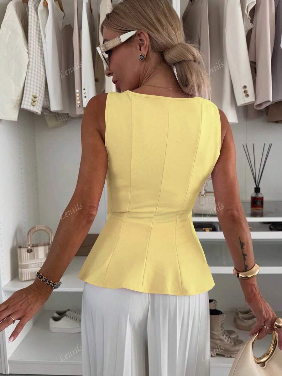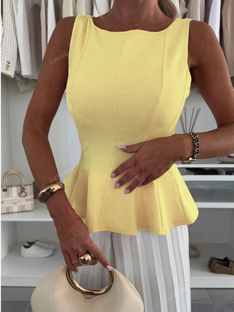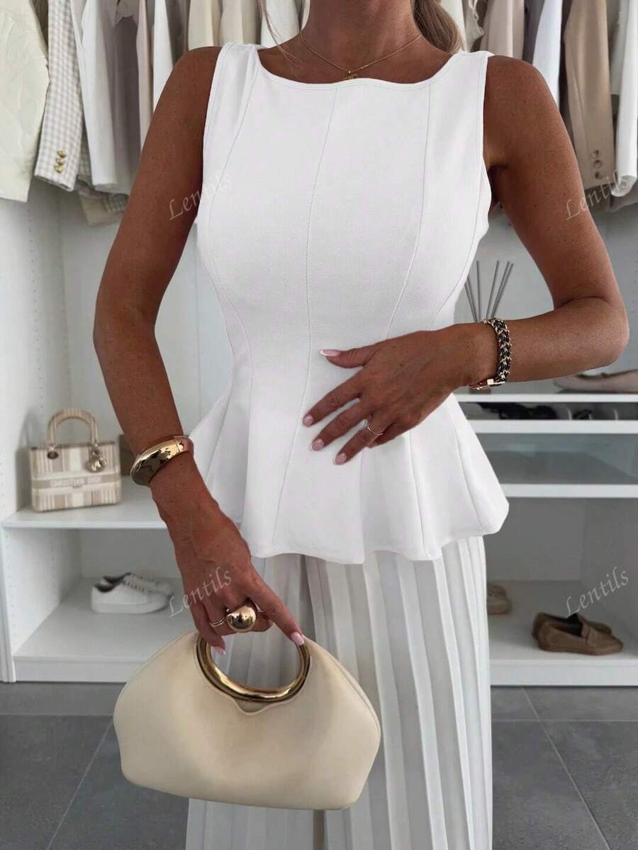 MIU 1pc Solid Color Ruffled Hem Knit Top, Casual Summer Wear