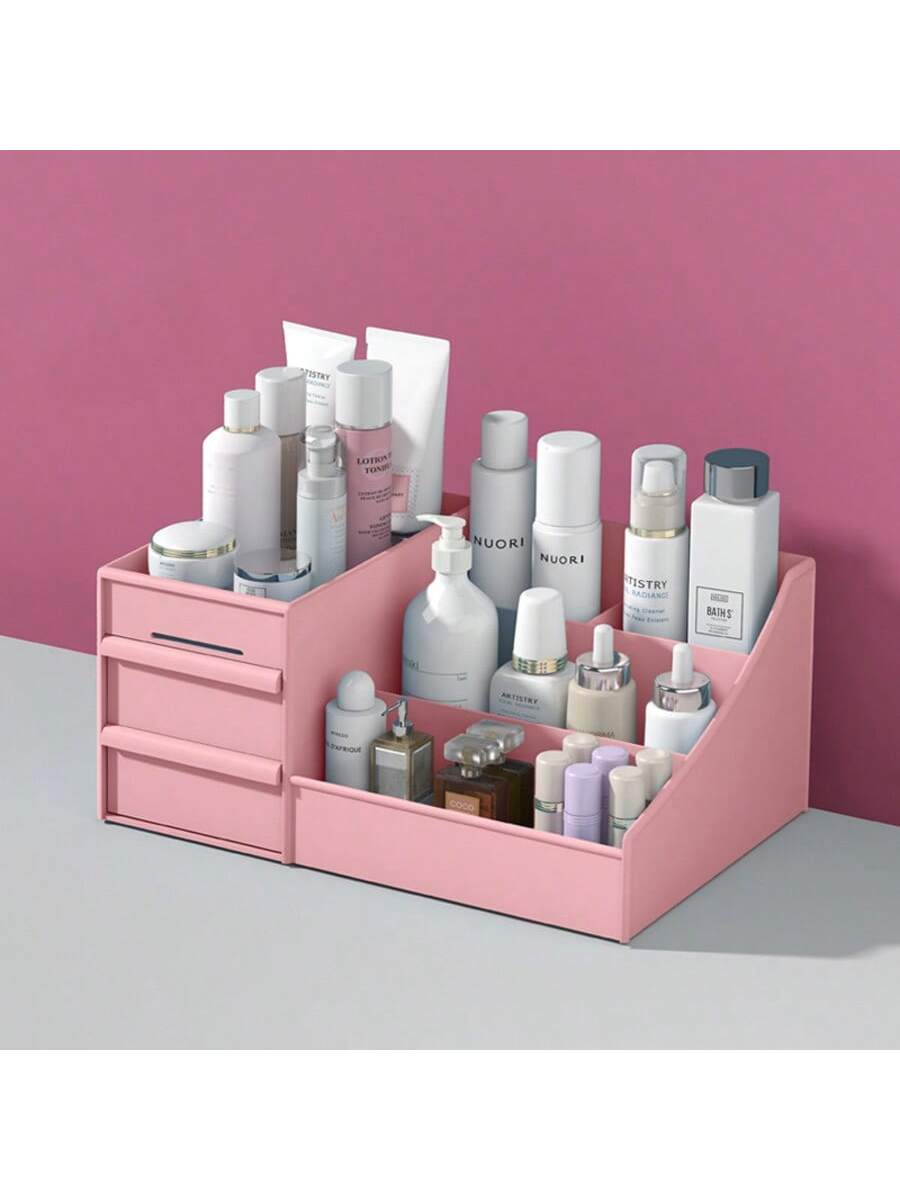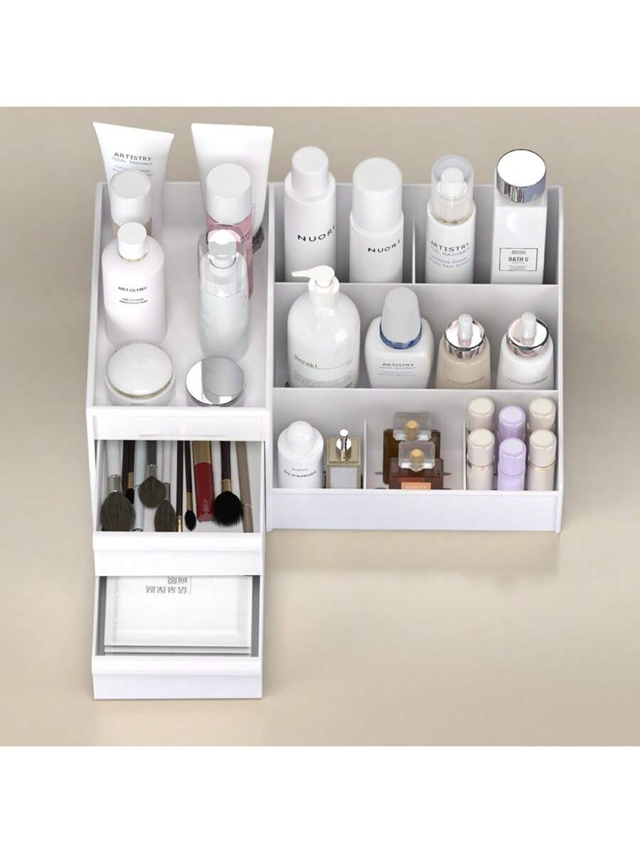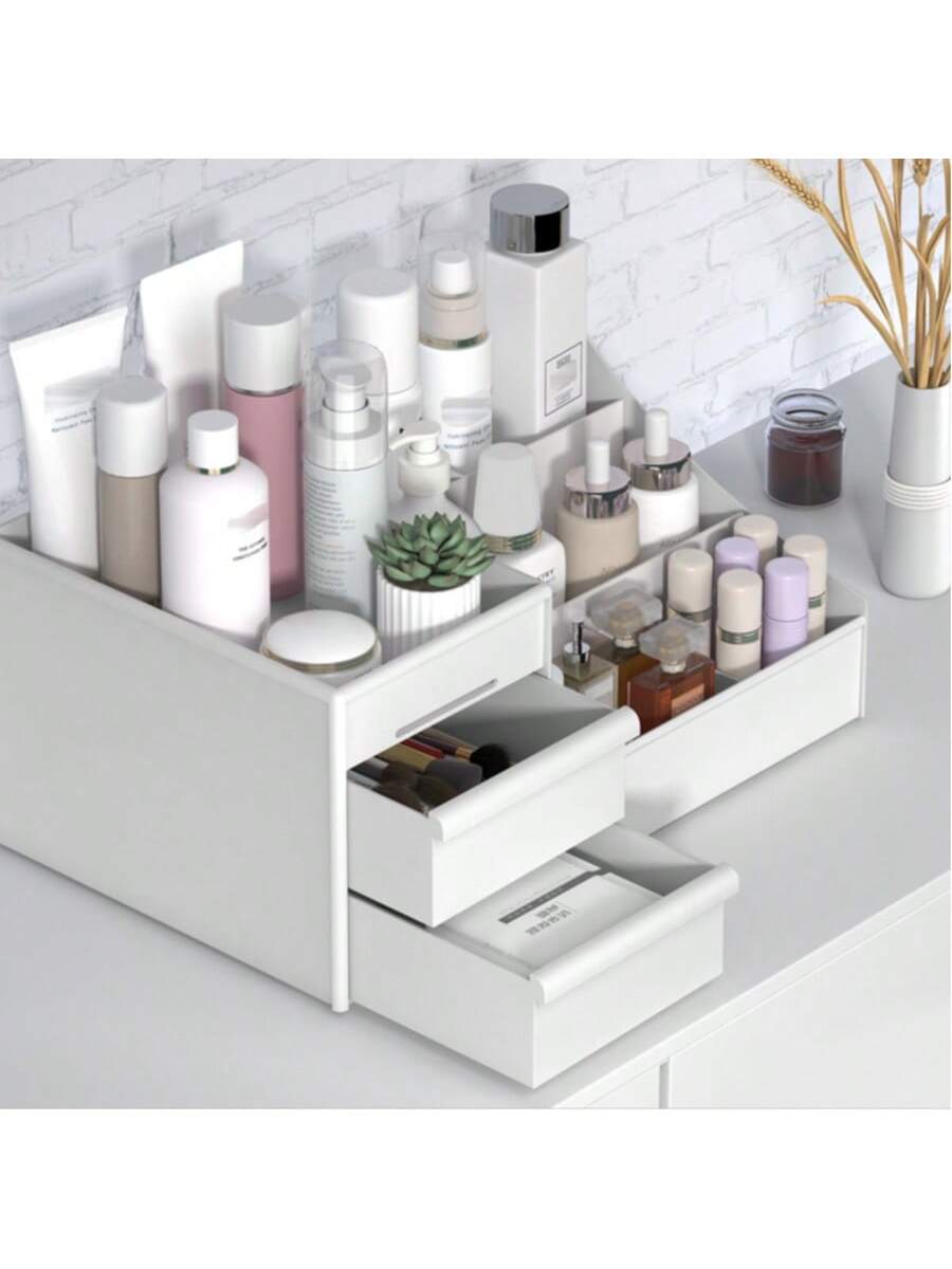 MIU 1pc Storage Box With 2 Drawers, Used For Desktop Organization, Makeup Tool And Skincare Product Storage, As Well As Jewelry Storage, Dressing Table Accessories, Bathroom Accessories, Storage Box