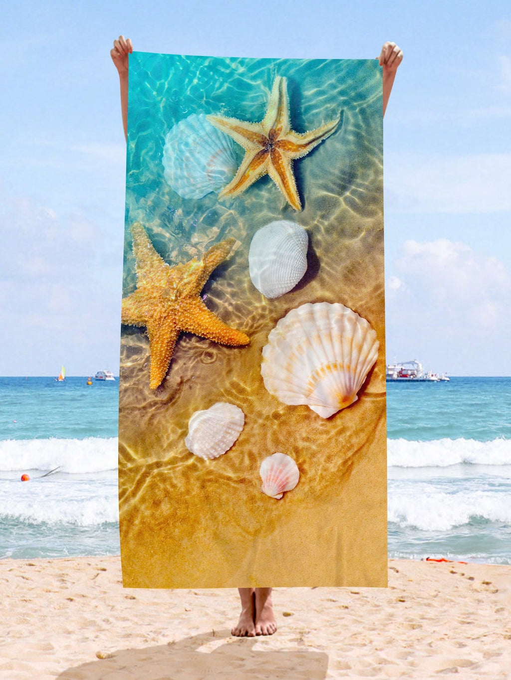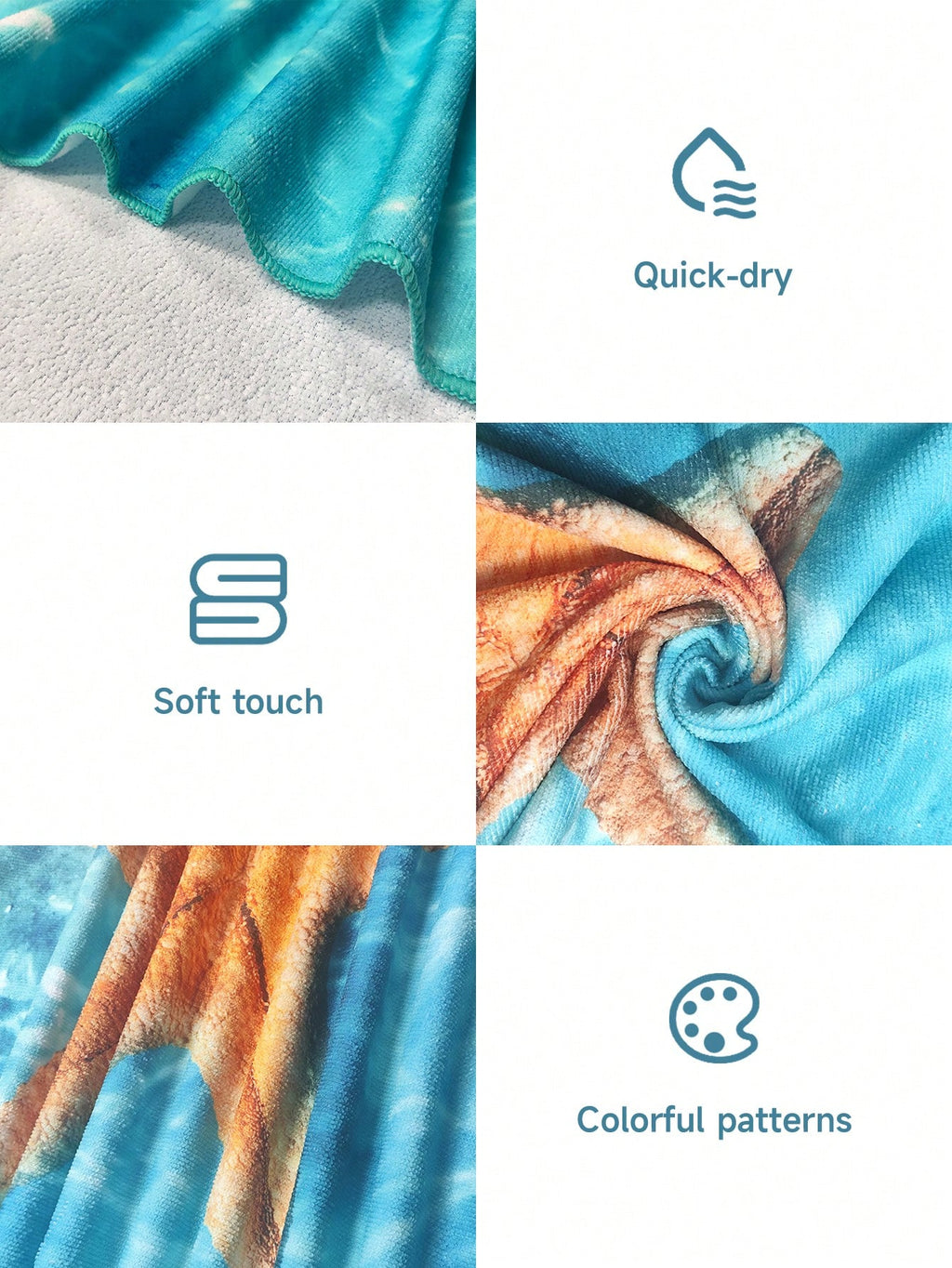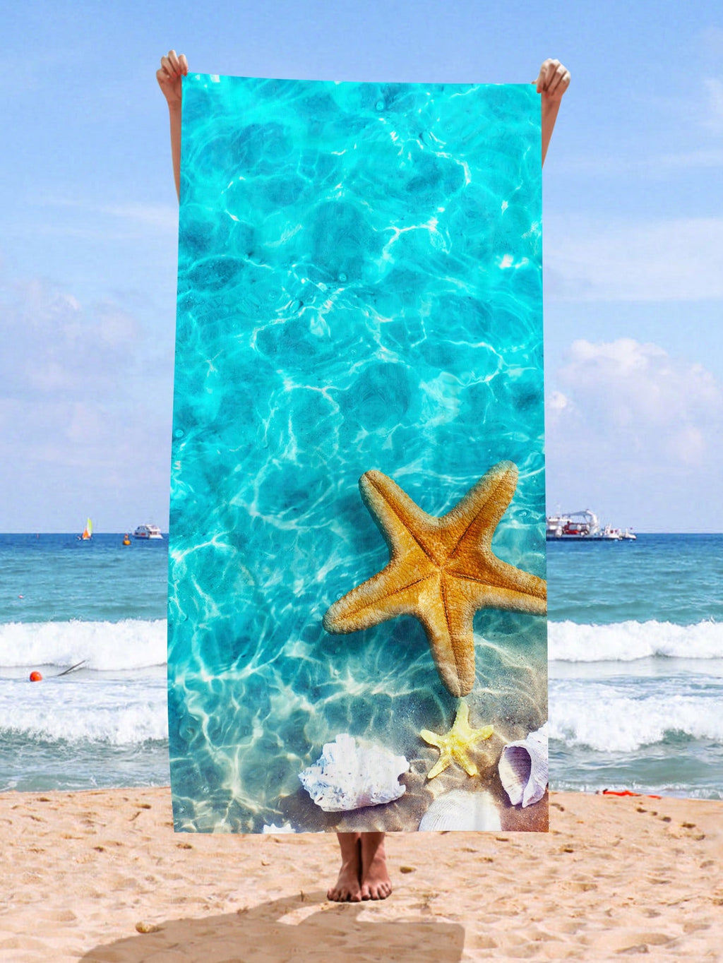 MIU 1pc Ultra-Soft Microfiber Beach Towel With Starfish Print, Quick Dry, Absorbent, Suitable For Adults, Travel, Summer, Sports, Swimming, Pool, Yoga, Camping Beach Essentials
