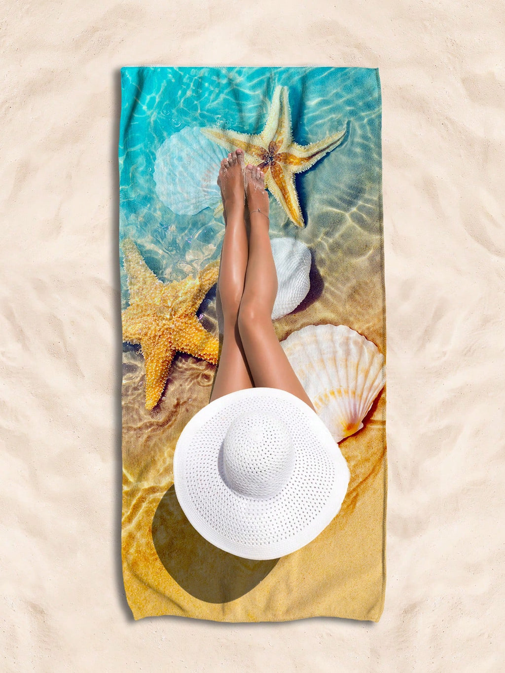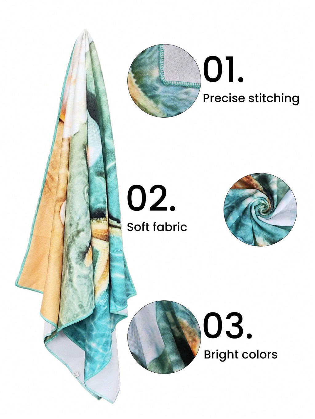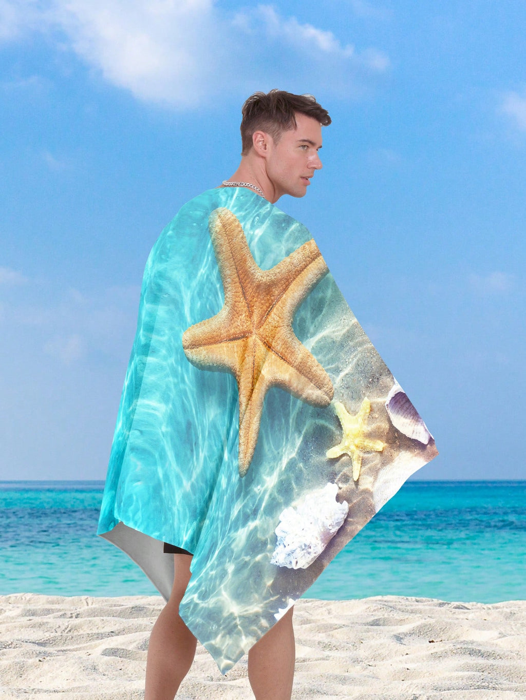 MIU 1pc Ultra-Soft Microfiber Beach Towel With Starfish Print, Quick Dry, Absorbent, Suitable For Adults, Travel, Summer, Sports, Swimming, Pool, Yoga, Camping Beach Essentials