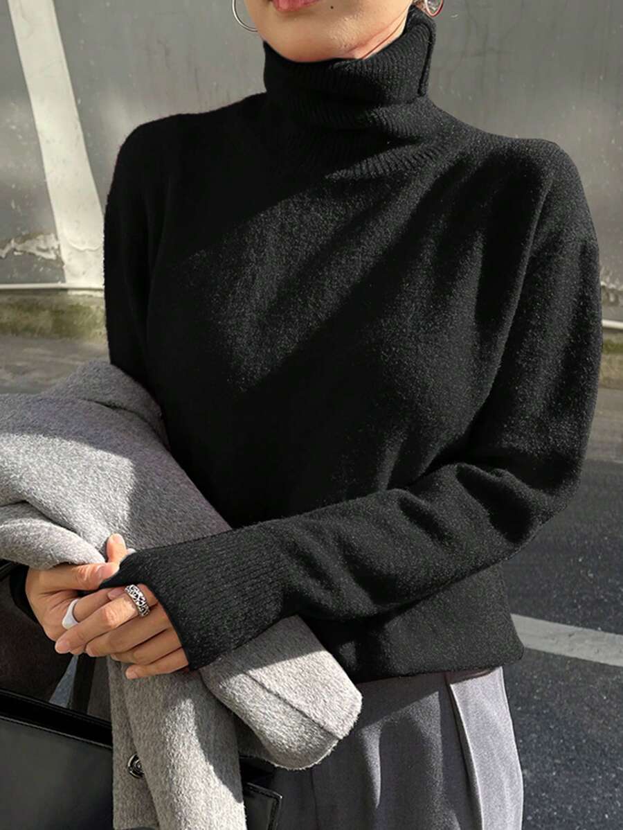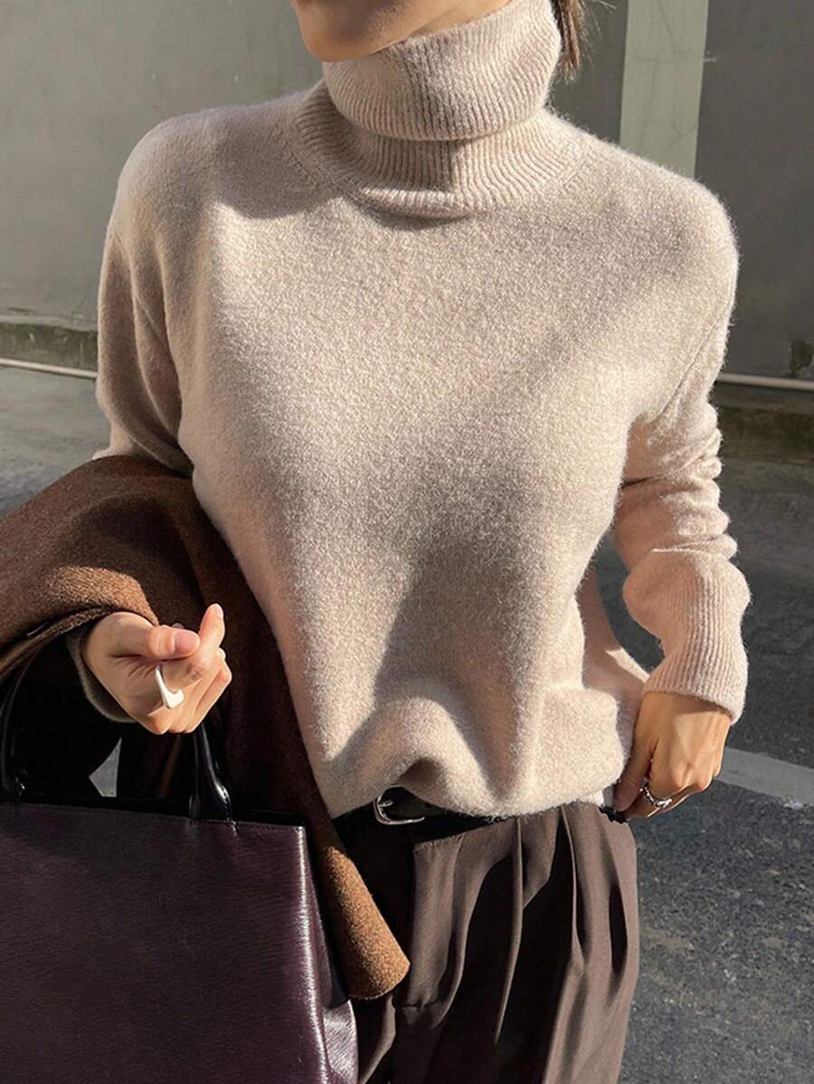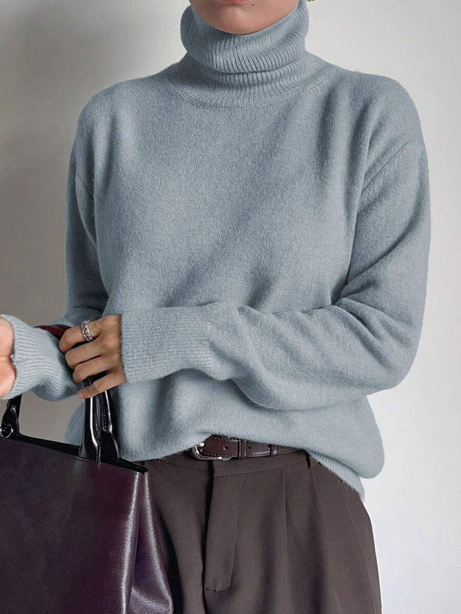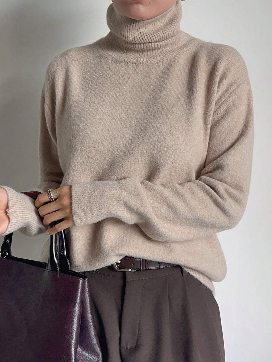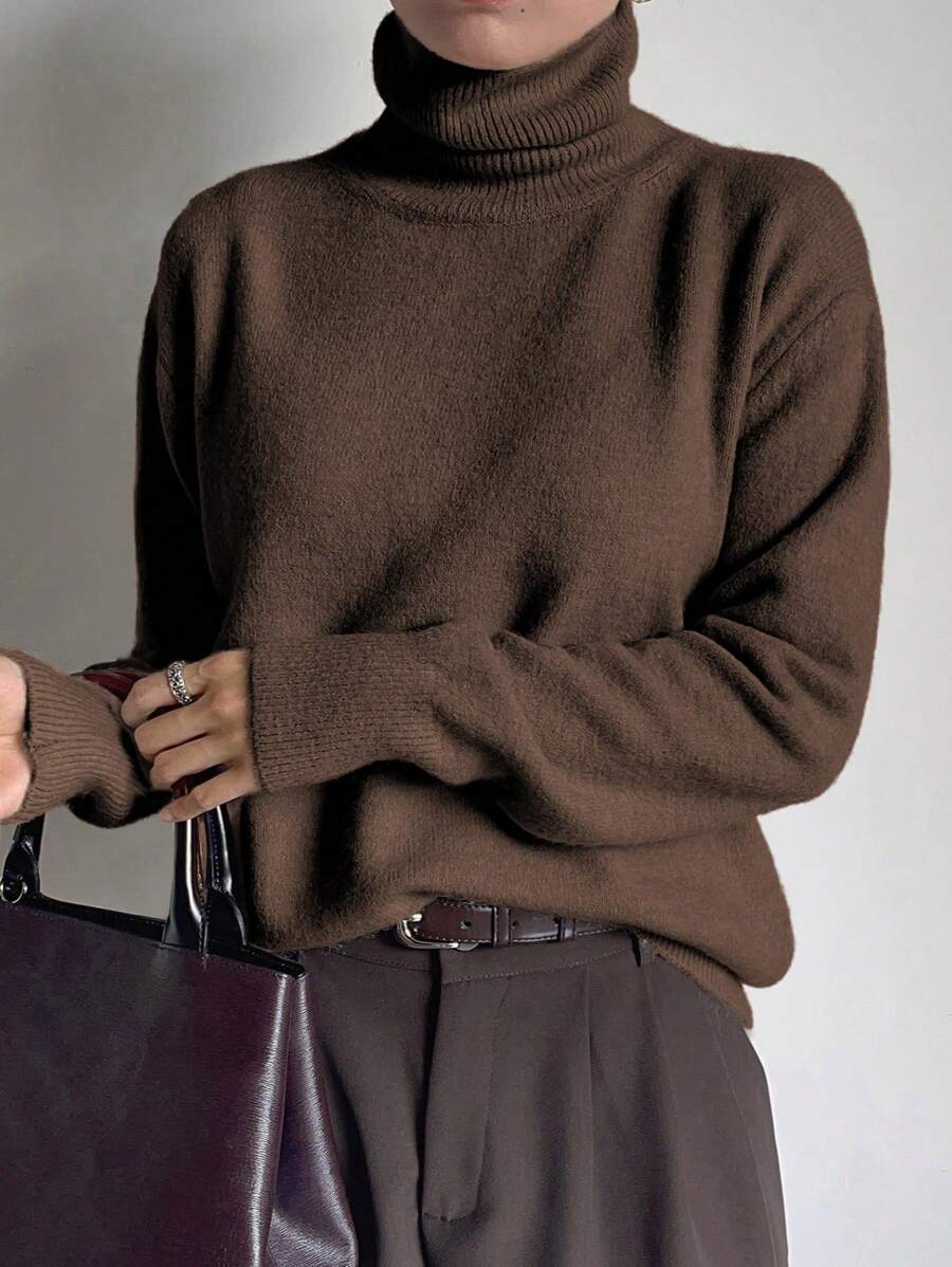 MIU 1pc Women's Business Casual Pullover Turtleneck Sweater,Fall Women Clothes