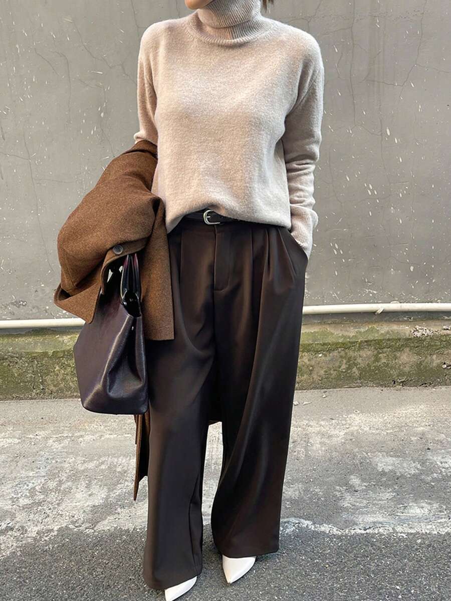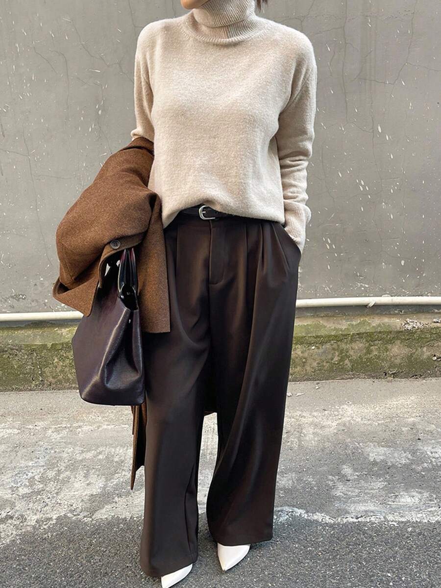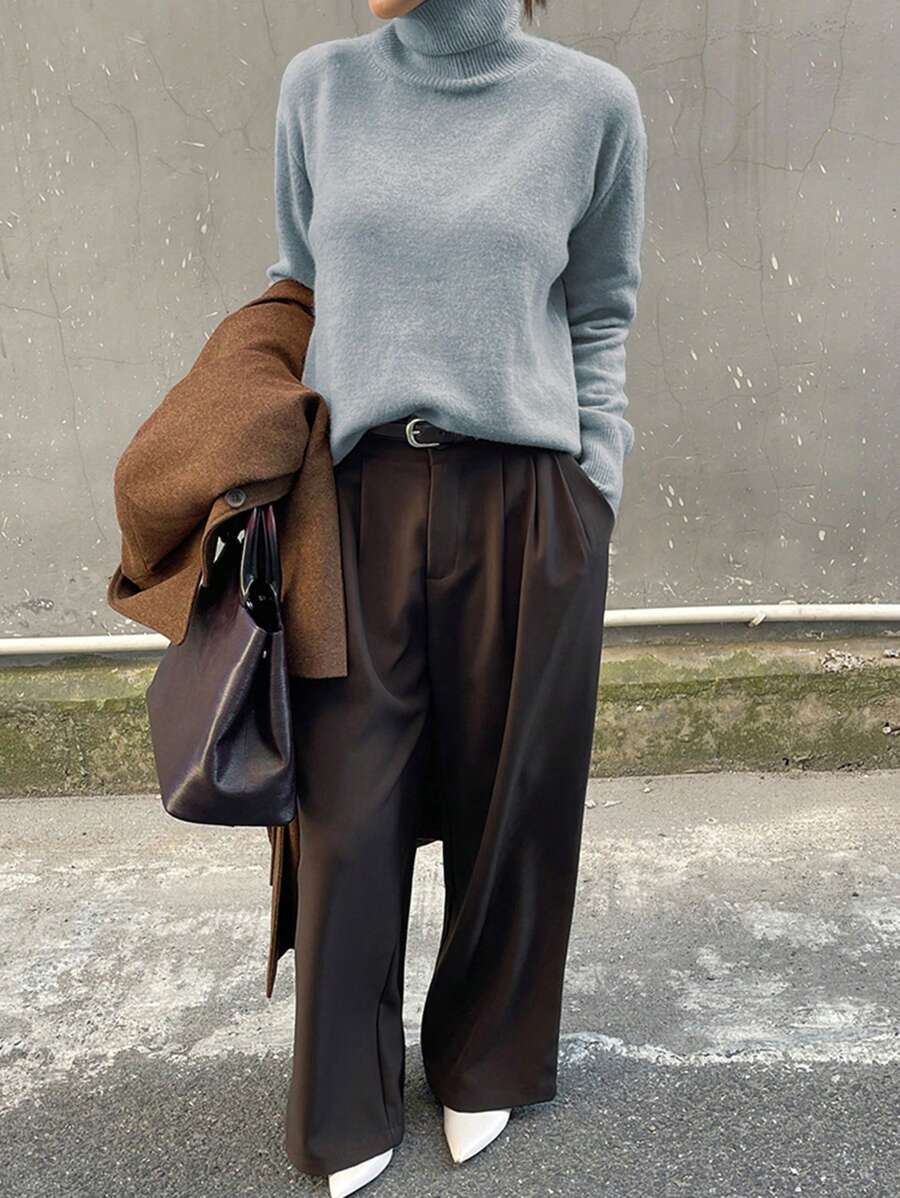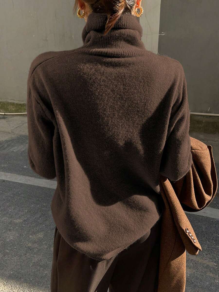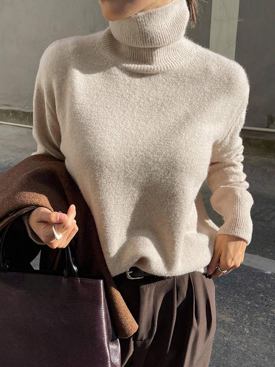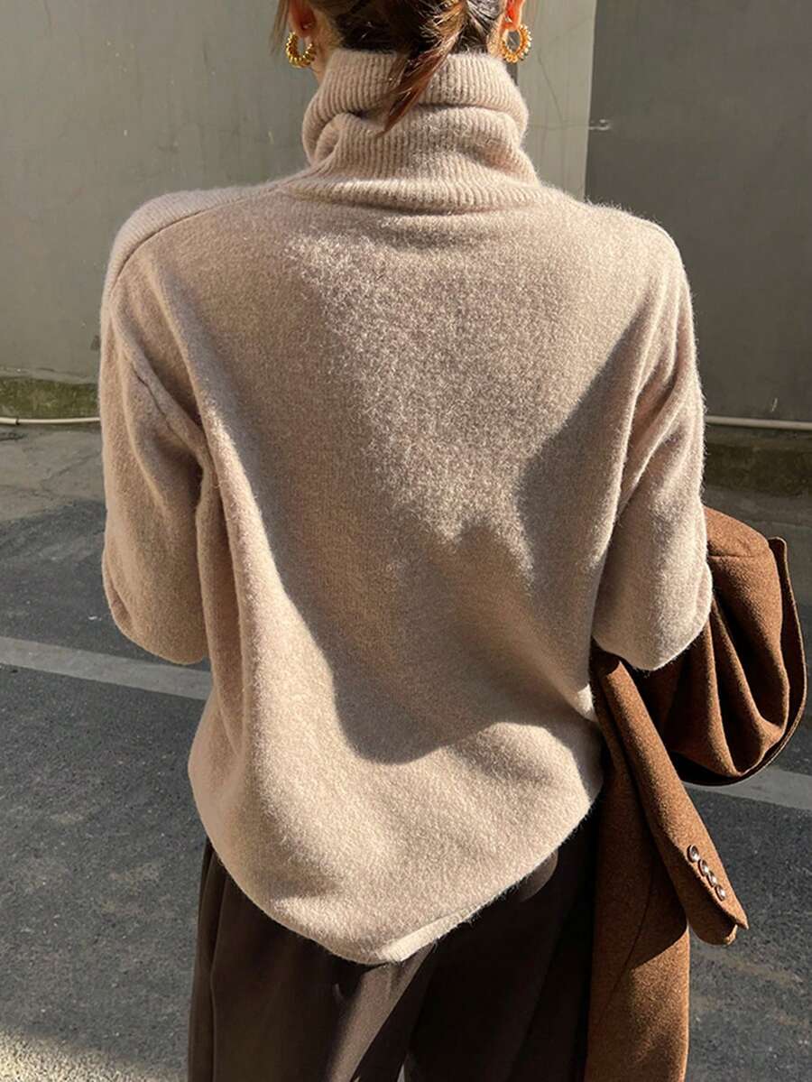 MIU 1pc Women's Business Casual Pullover Turtleneck Sweater,Fall Women Clothes