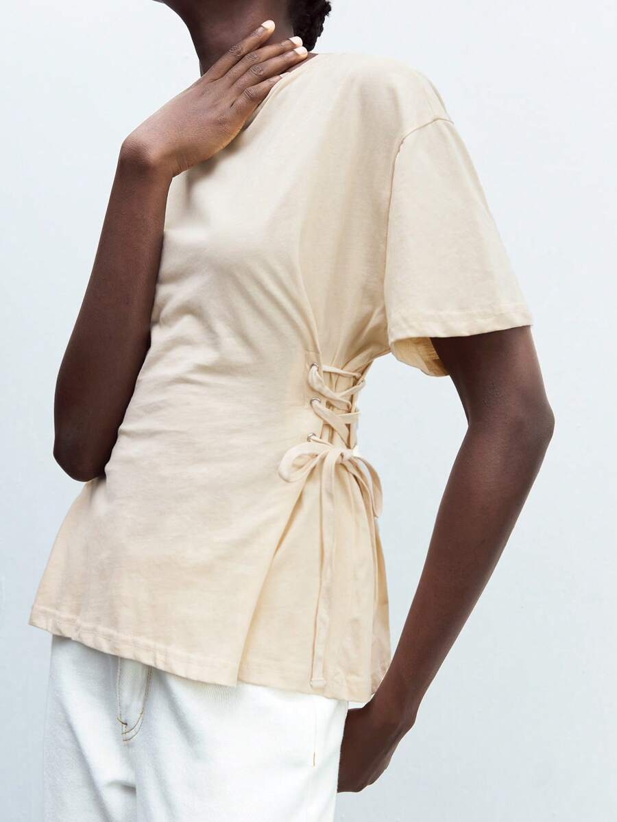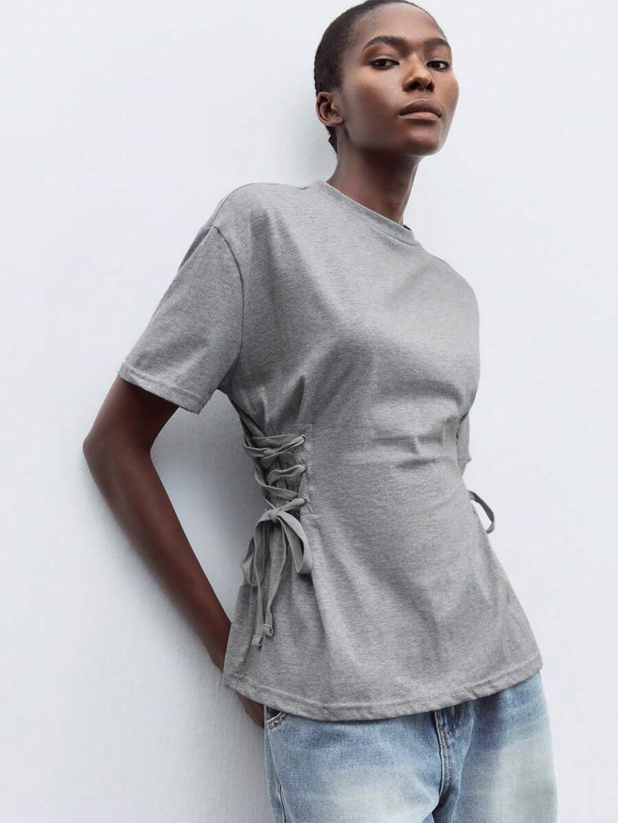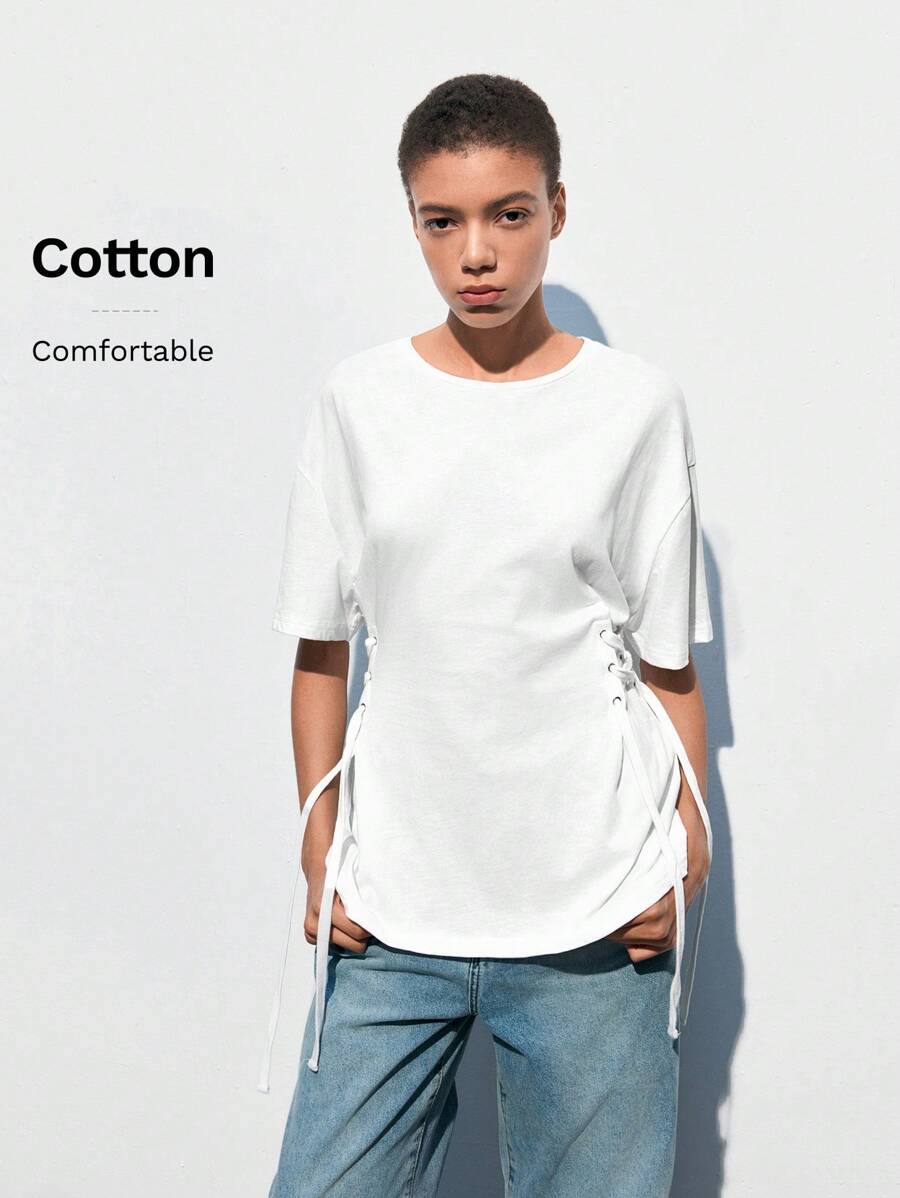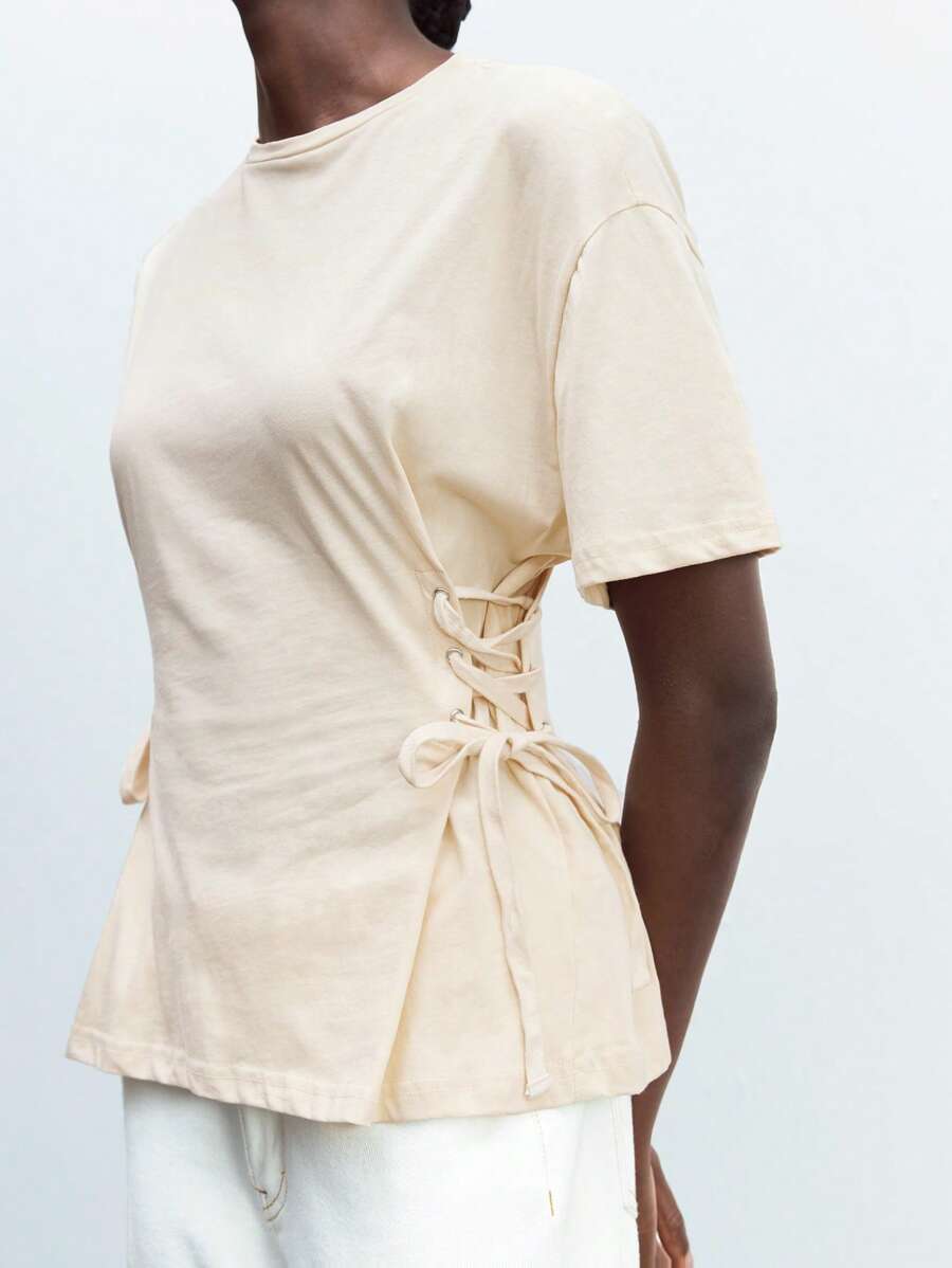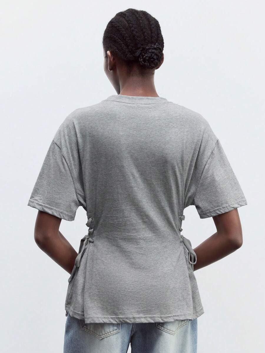 MIU [2025 New Summer Olive Green Crew Neck Tie Waist Bow Knot T-Shirt, Versatile For Business, Casual, Daily, Beach, Wedding Guest, Country Music Festival, Brunch, Airport Outfit, 90s Retro Business Casual Women Office Wear