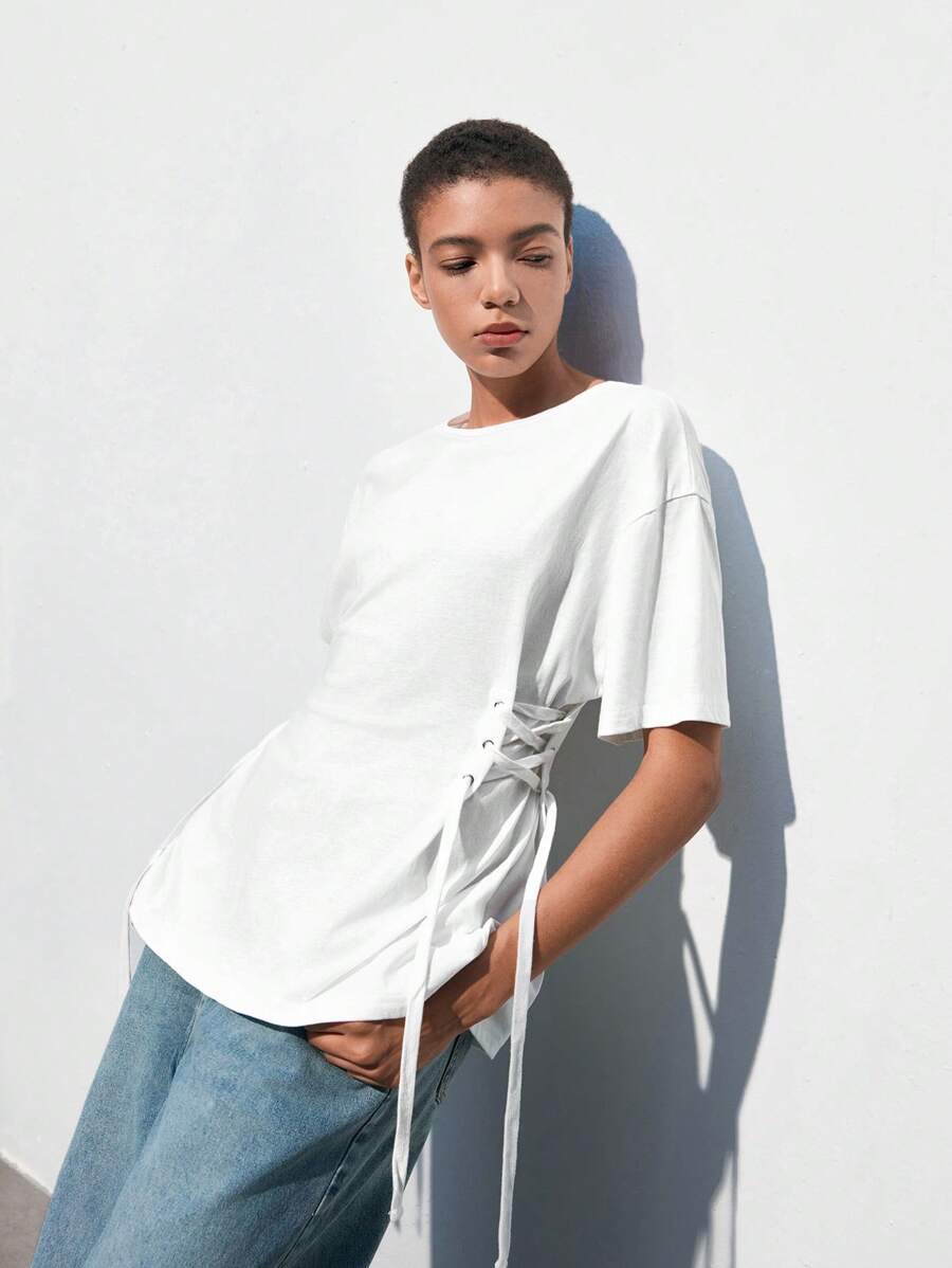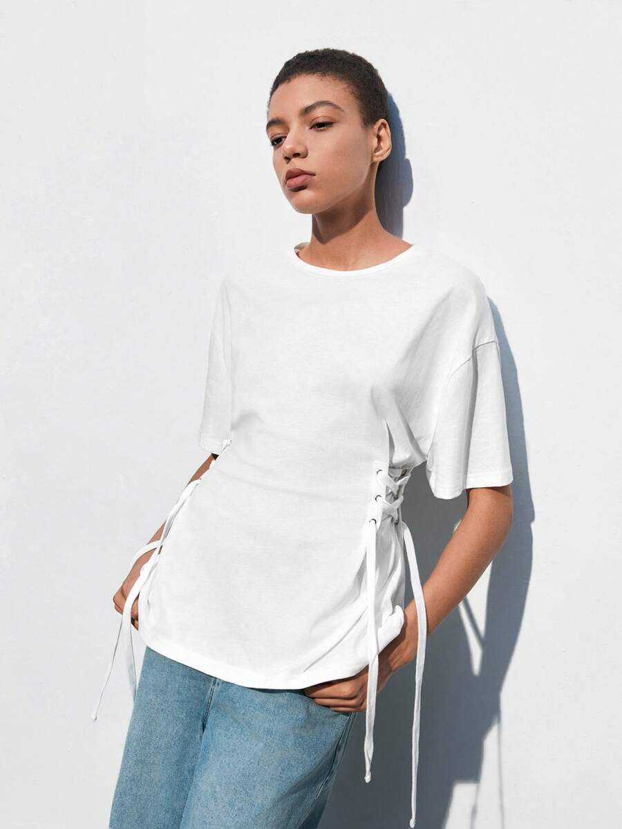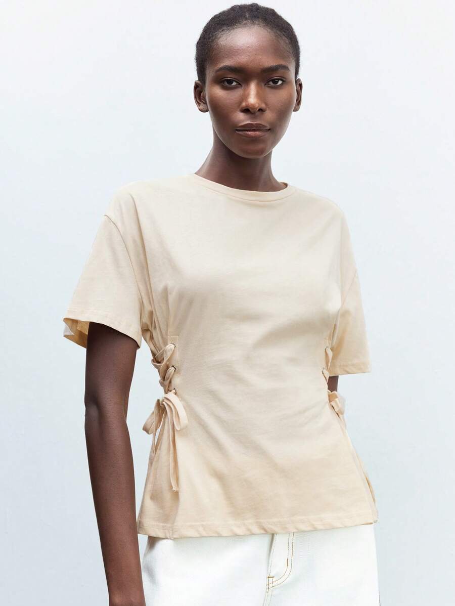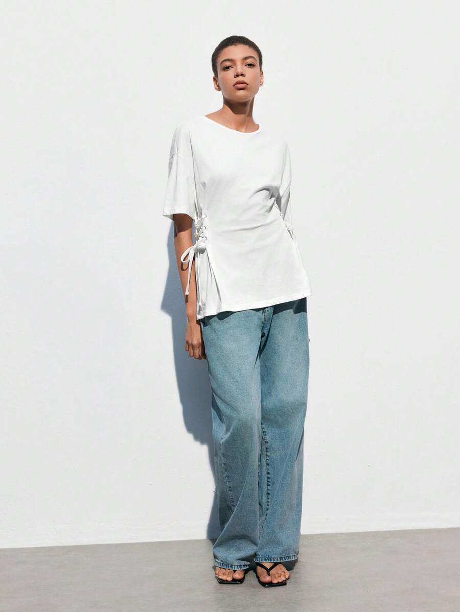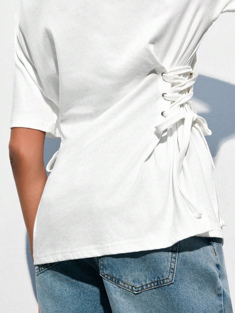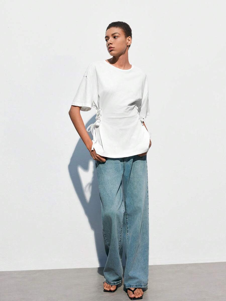 MIU [2025 New Summer Olive Green Crew Neck Tie Waist Bow Knot T-Shirt, Versatile For Business, Casual, Daily, Beach, Wedding Guest, Country Music Festival, Brunch, Airport Outfit, 90s Retro Business Casual Women Office Wear