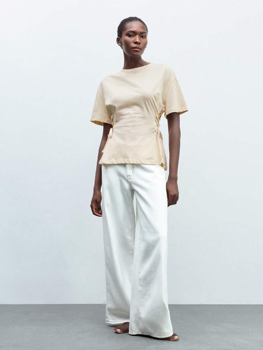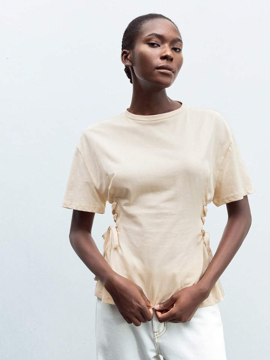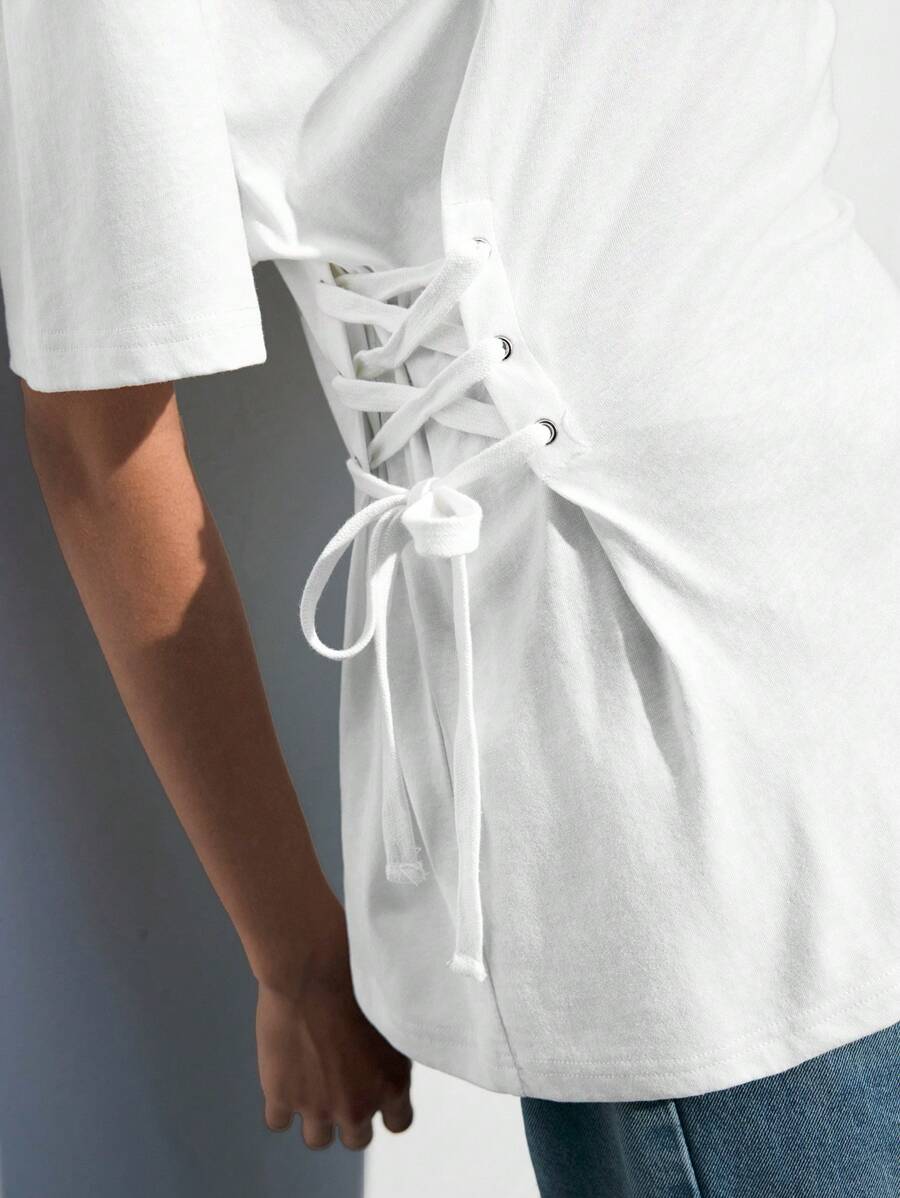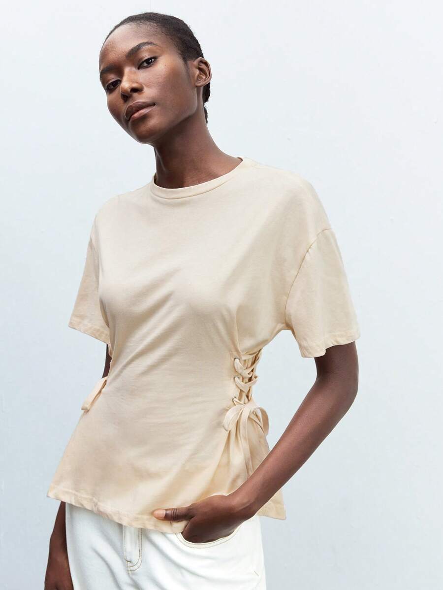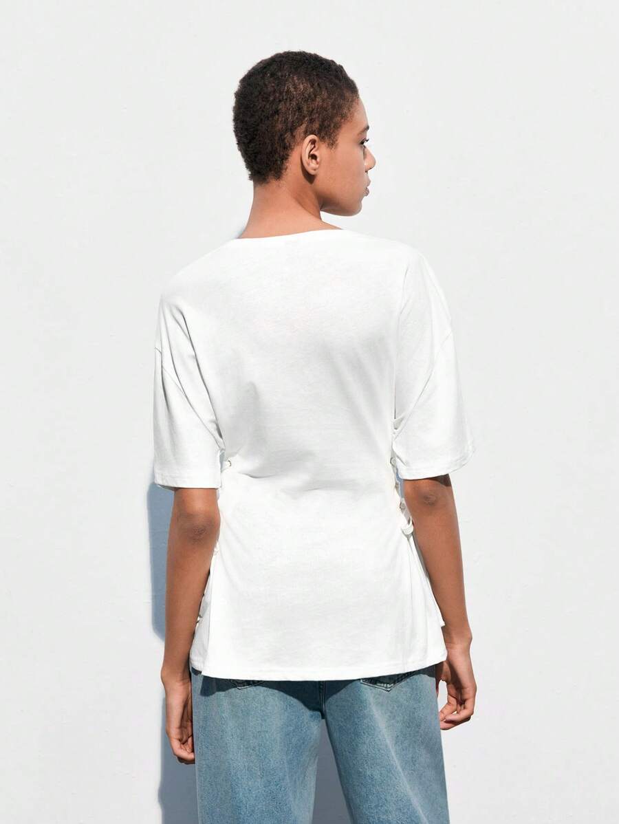 MIU [2025 New Summer Olive Green Crew Neck Tie Waist Bow Knot T-Shirt, Versatile For Business, Casual, Daily, Beach, Wedding Guest, Country Music Festival, Brunch, Airport Outfit, 90s Retro Business Casual Women Office Wear