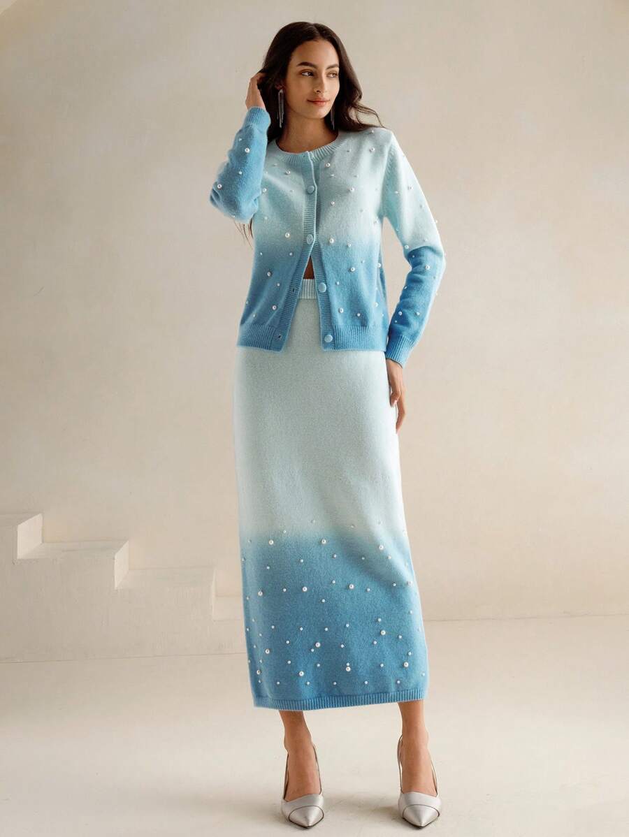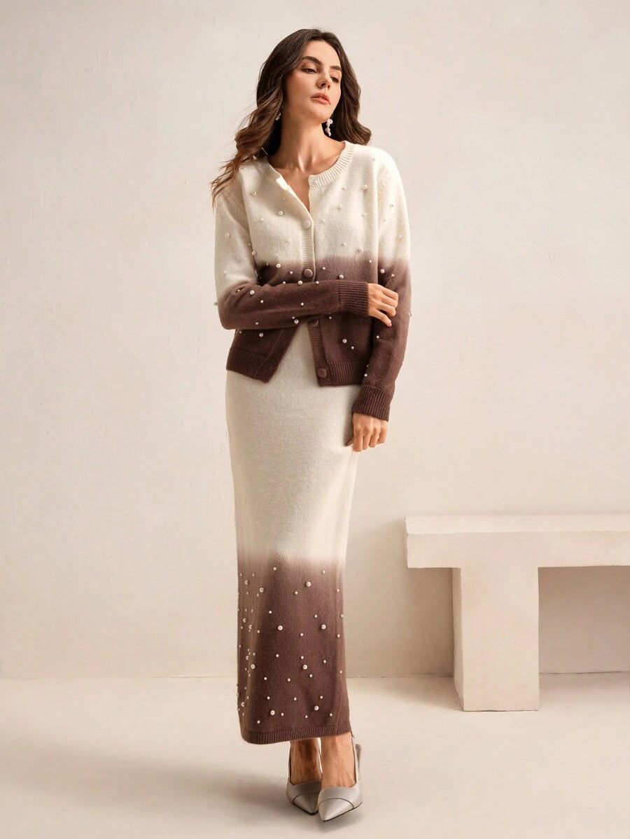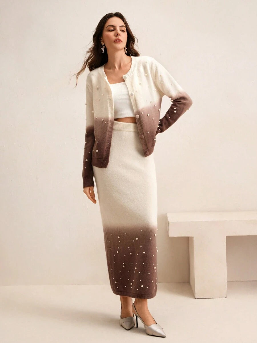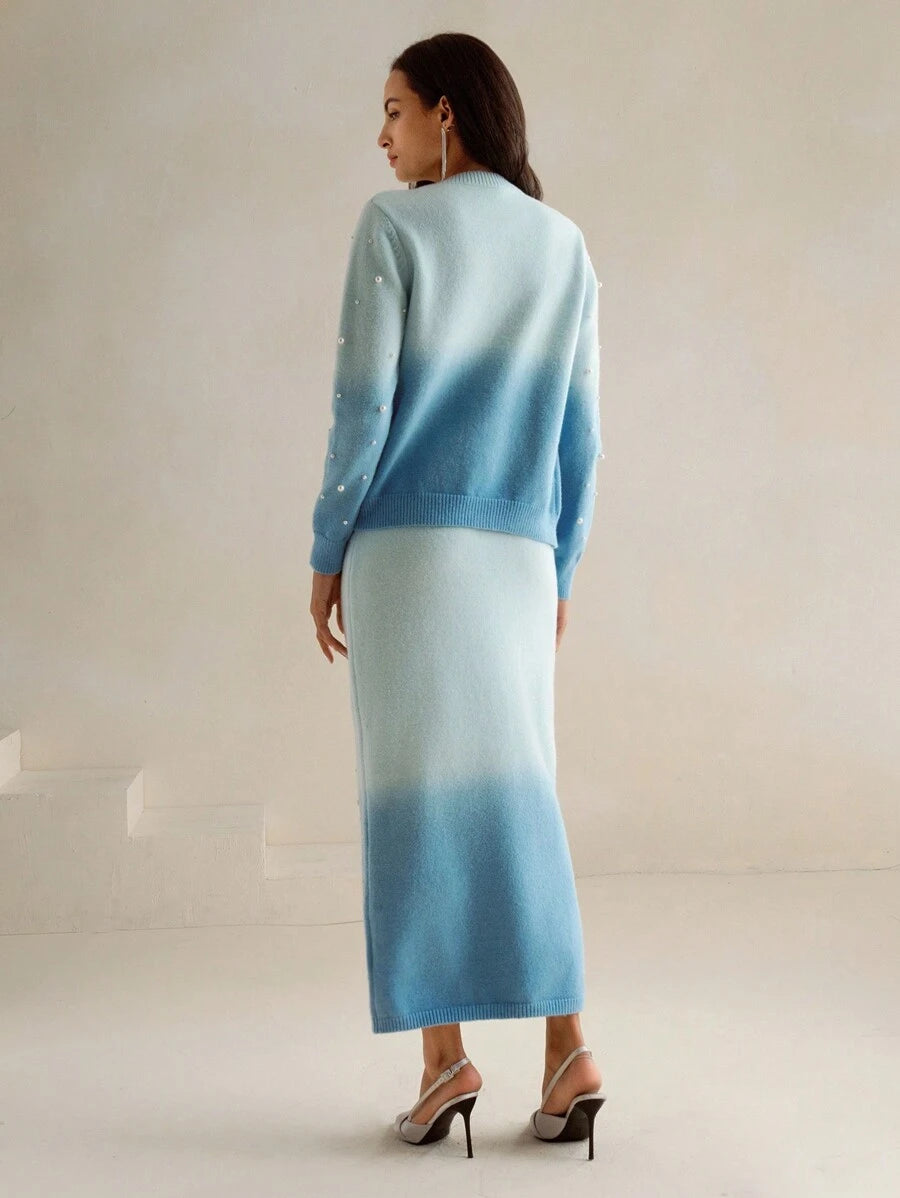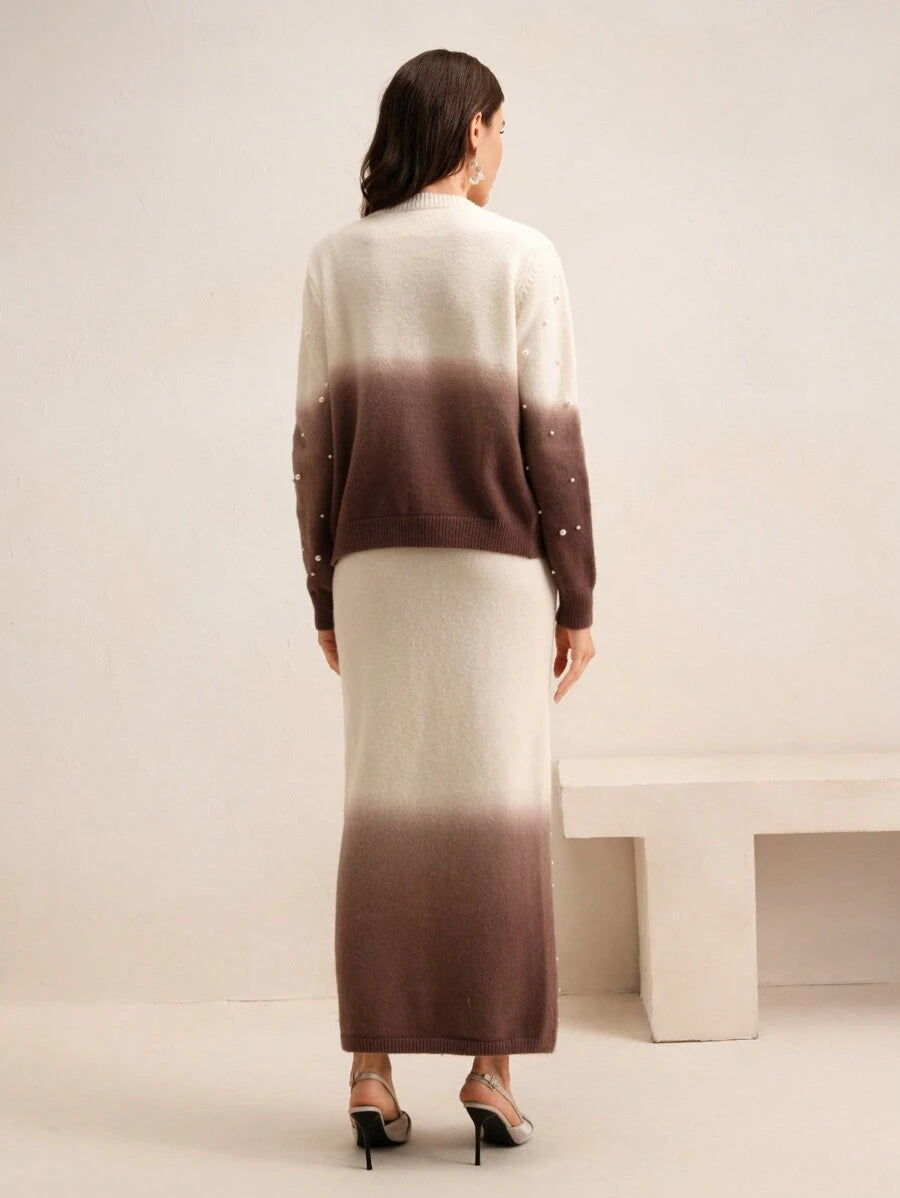 MIU 2pcs Autumn/Winter Warm Elegant Beaded Ombre Knit Sweater