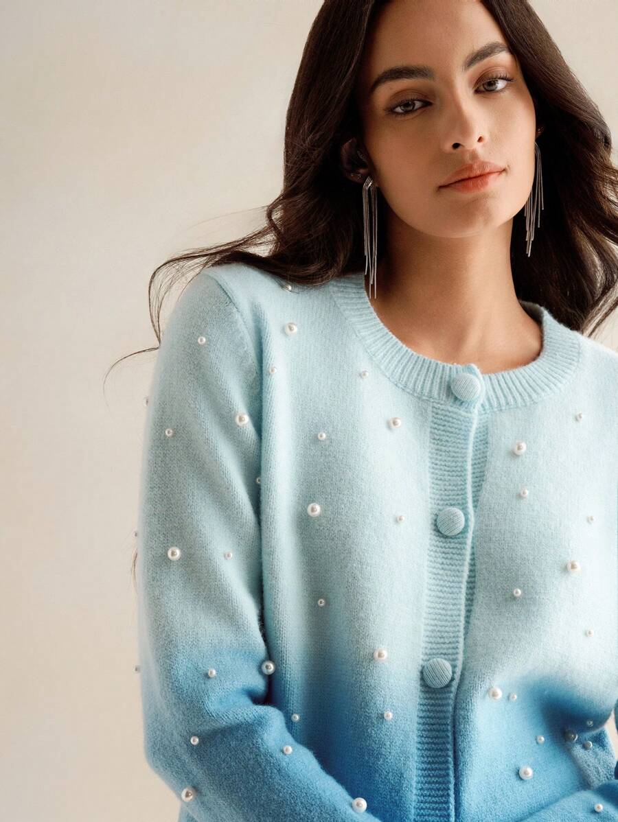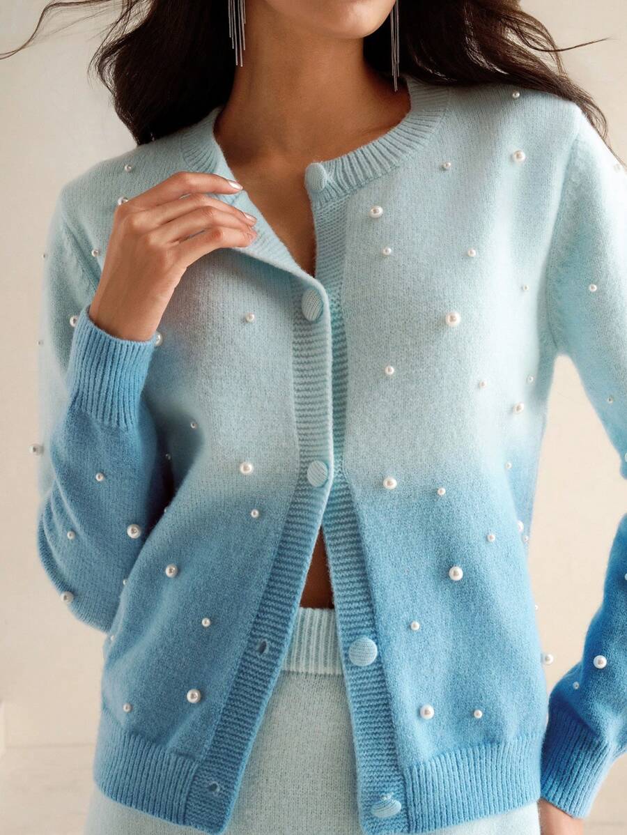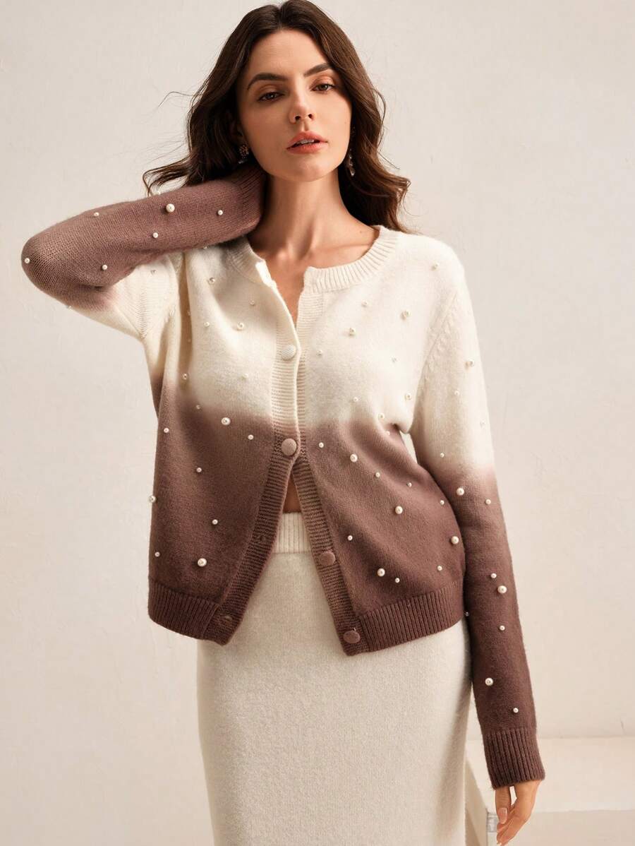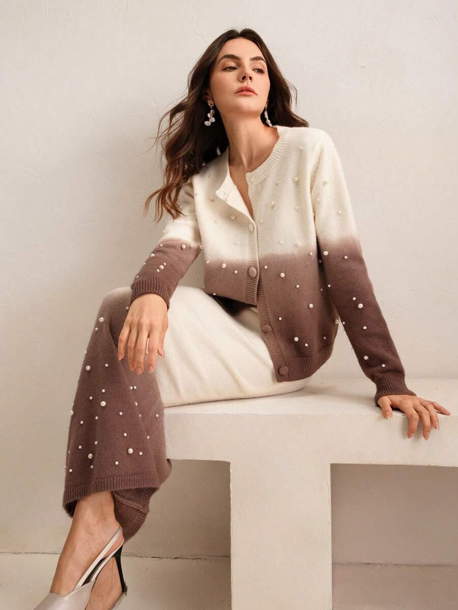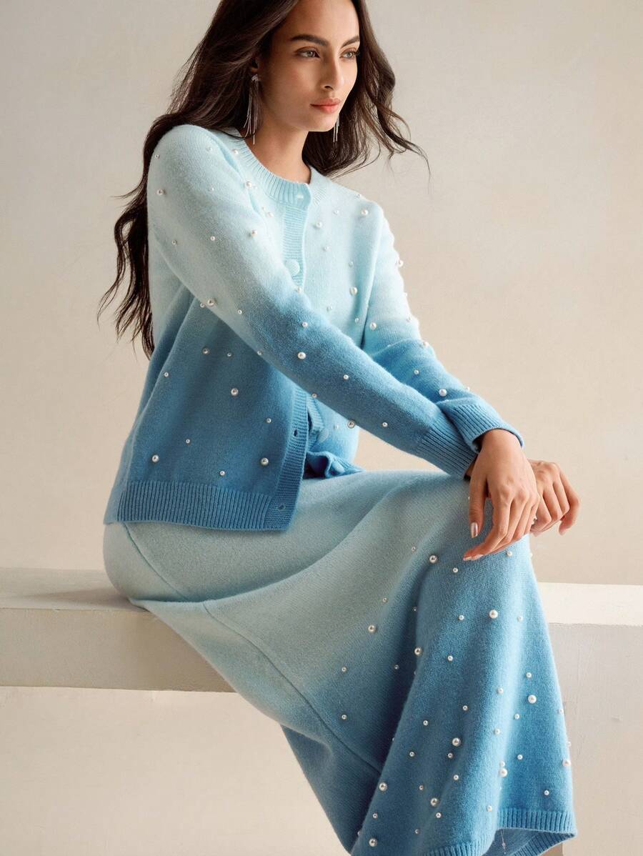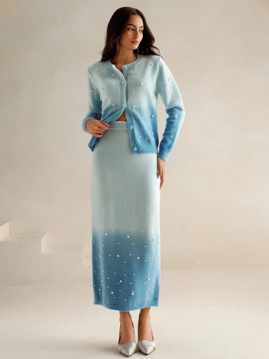 MIU 2pcs Autumn/Winter Warm Elegant Beaded Ombre Knit Sweater