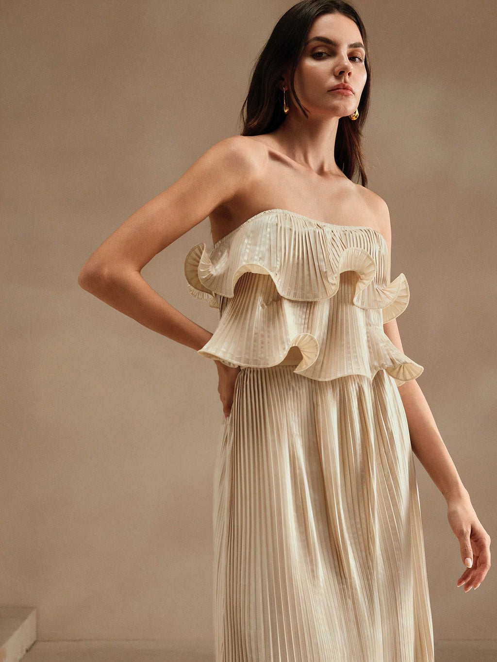 MIU 2pcs Elegant Shiny Pleated Set
