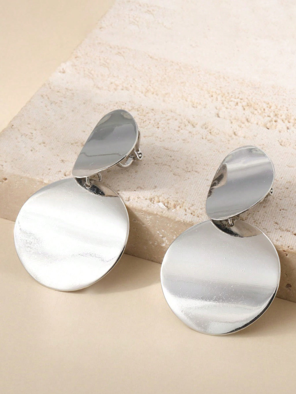 MIU 2pcs Fashion Non Piecred Clip On Earrings Gold Black Metal Round Disc Statement Ear Clips For Women Party Gift