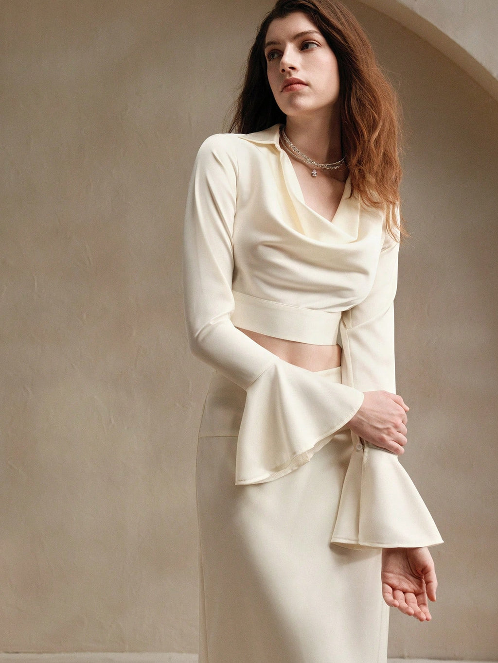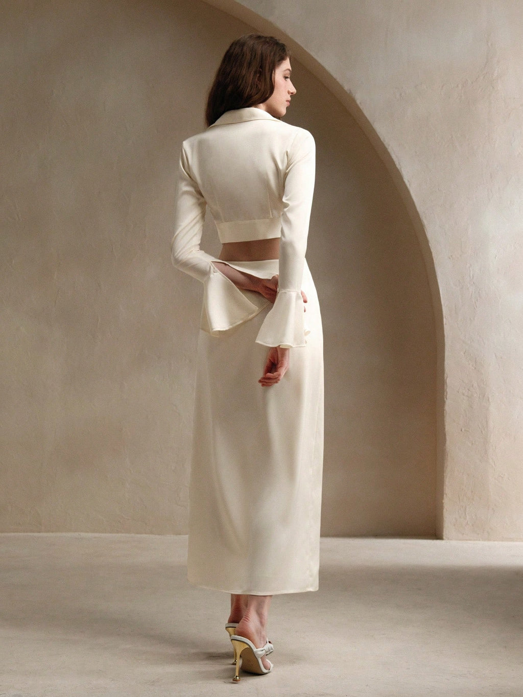 MIU 2pcs Set: Elegant Off-Shoulder Flare Sleeve Top And Mini Skirt