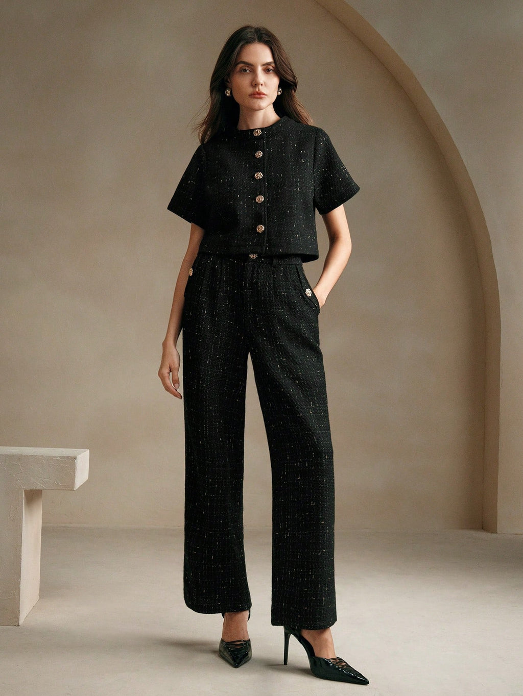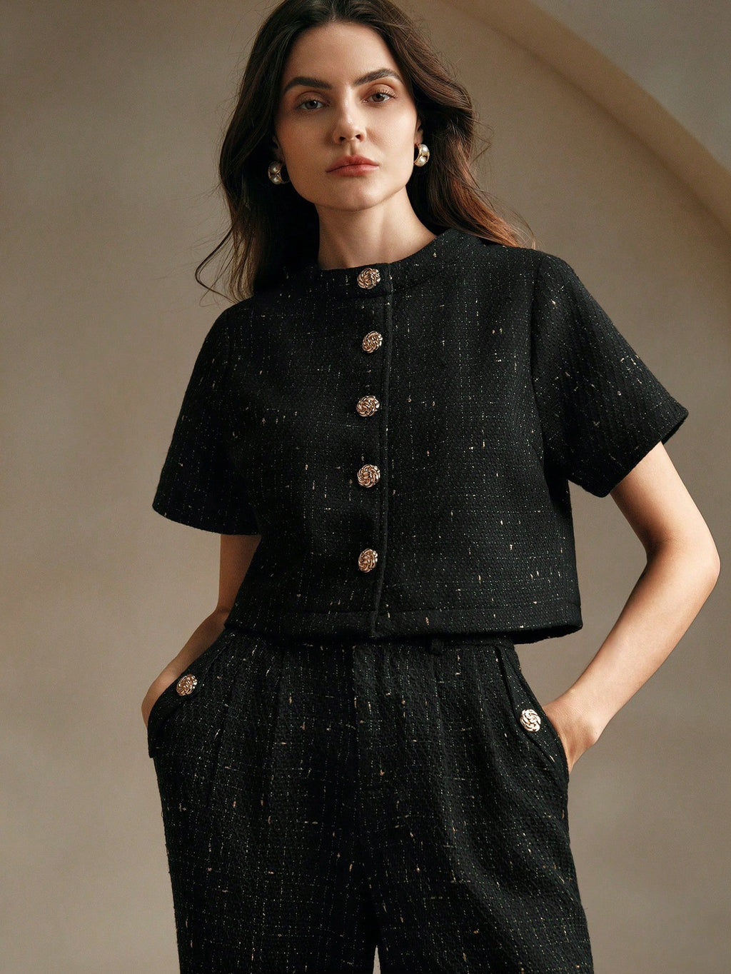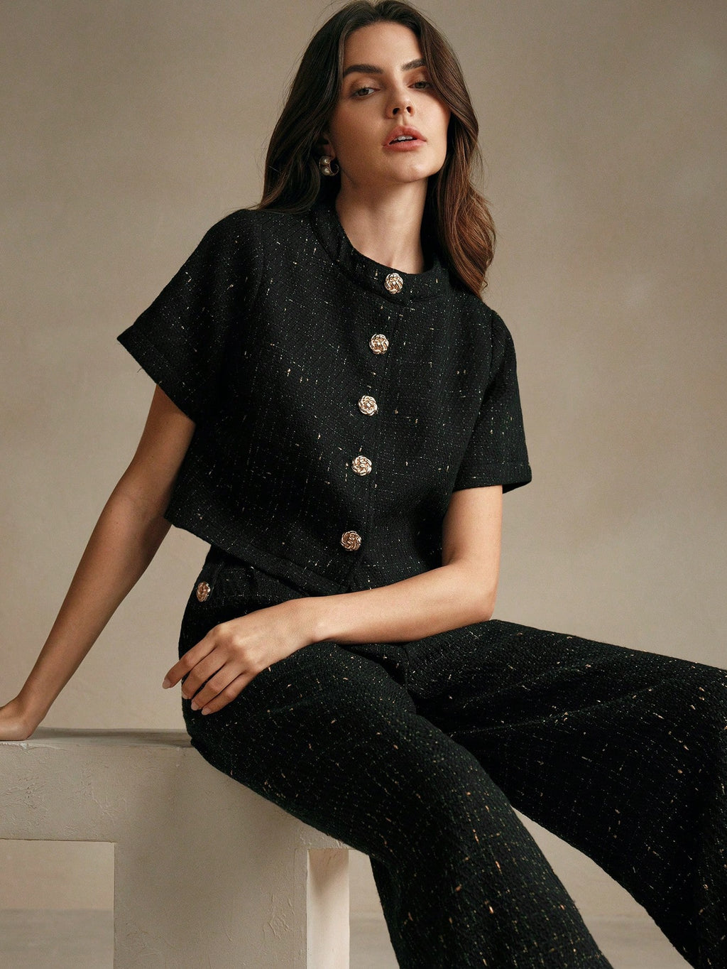 MIU 2pcs/Set Tweed Short Sleeve Jacket