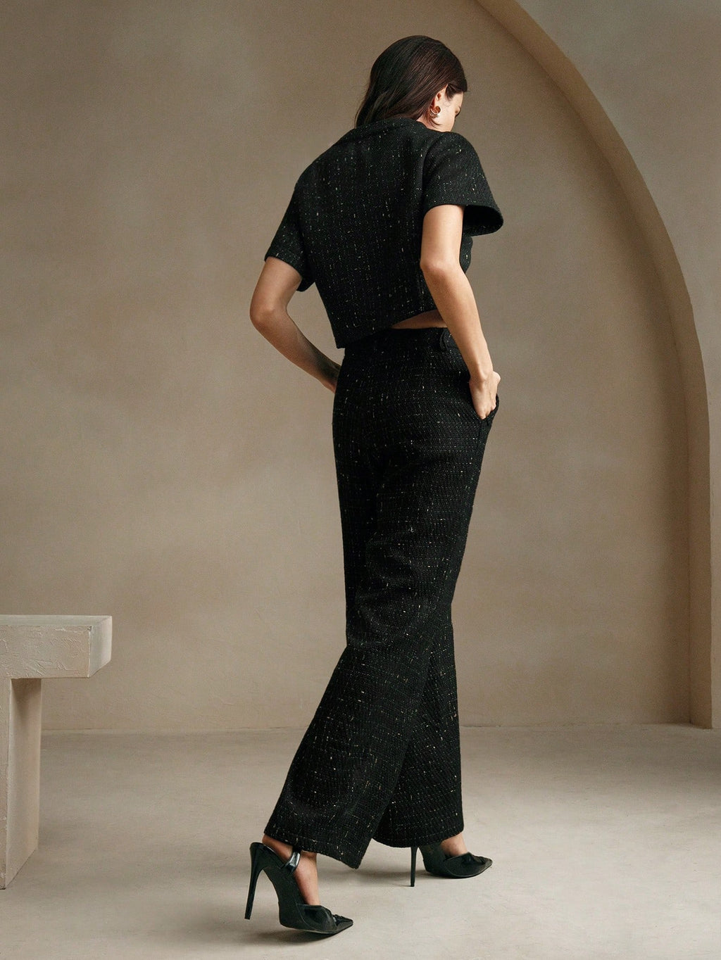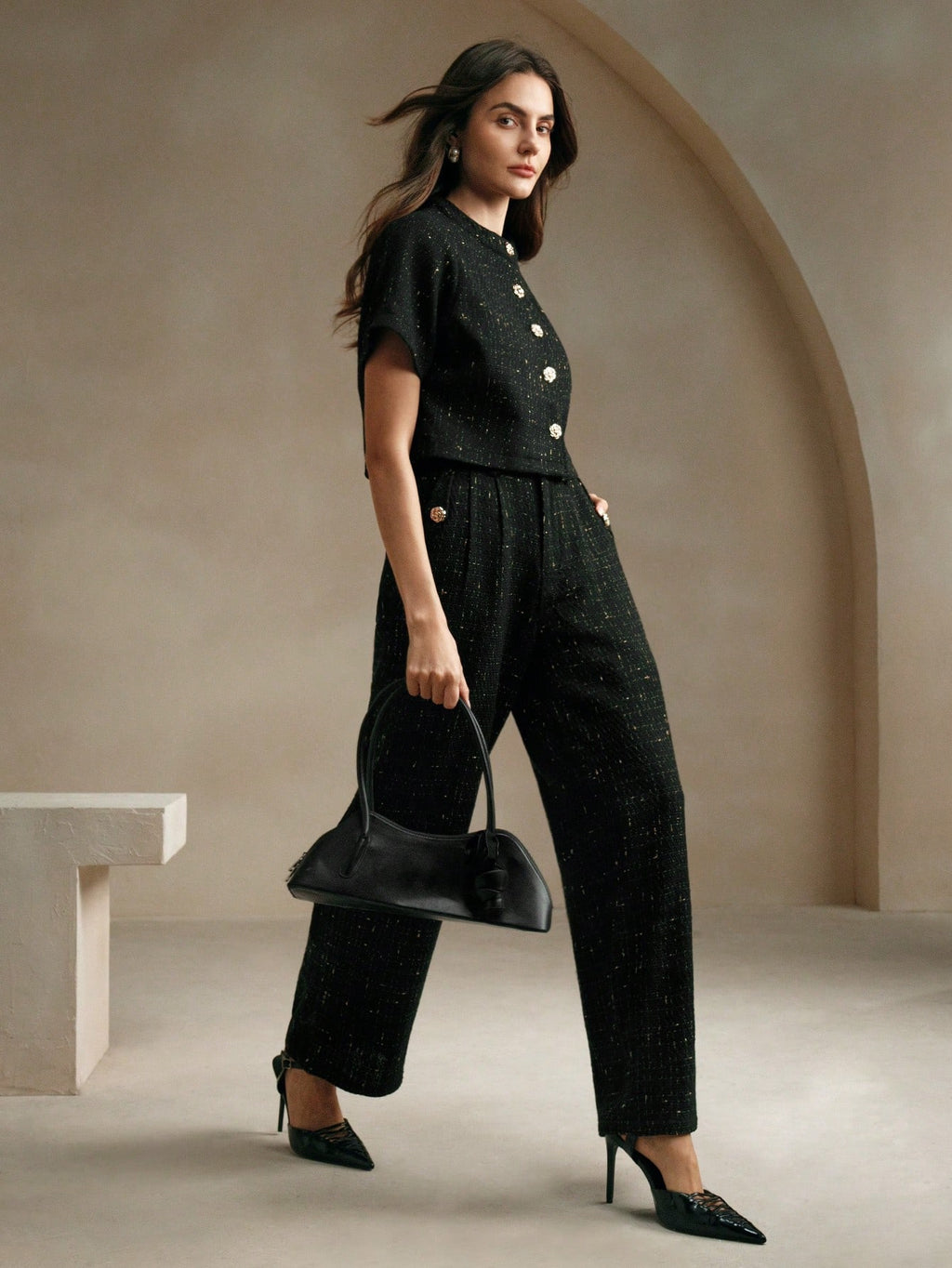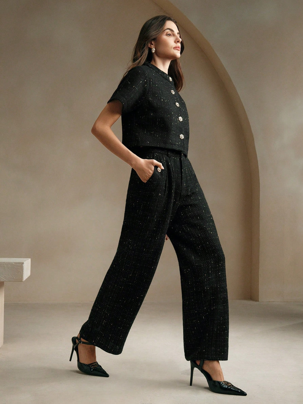 MIU 2pcs/Set Tweed Short Sleeve Jacket