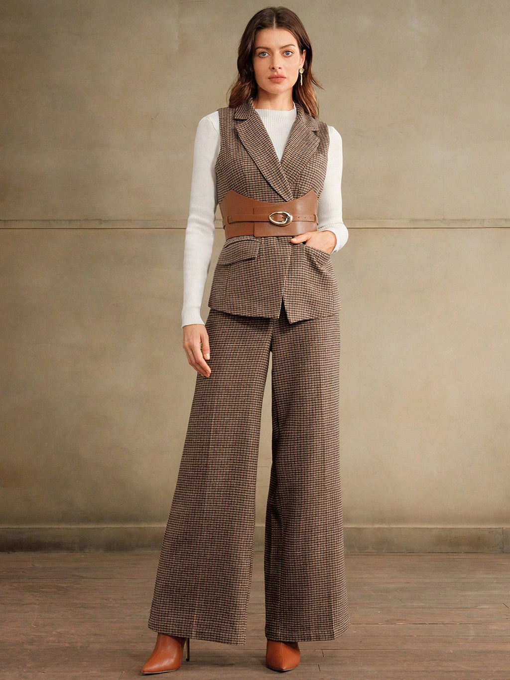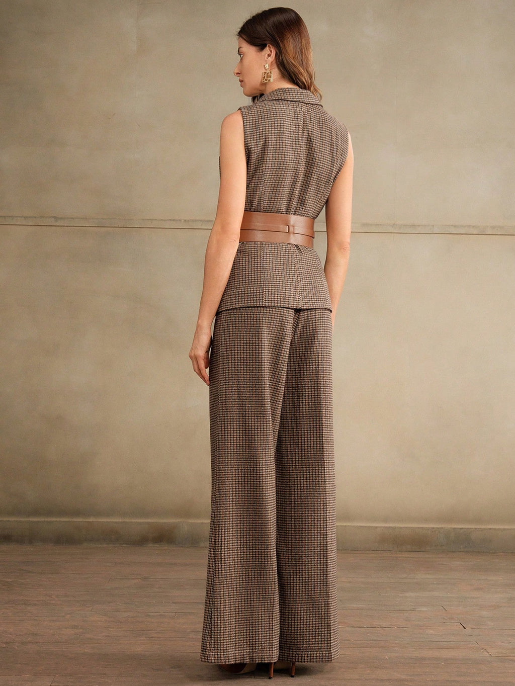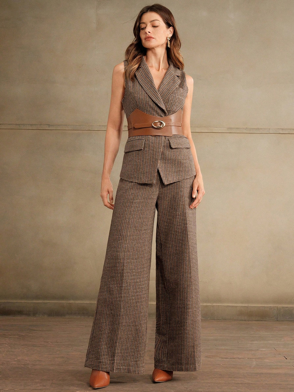 MIU 2pcs/Set Women's Sleeveless Blazer With Metal Buckle Waist Belt