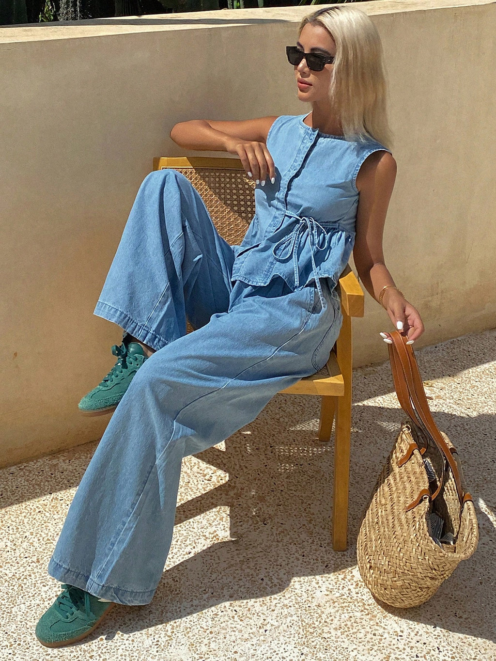MIU 2pcs Women Summer Sleeveless Wrap V-Neck Cami Top