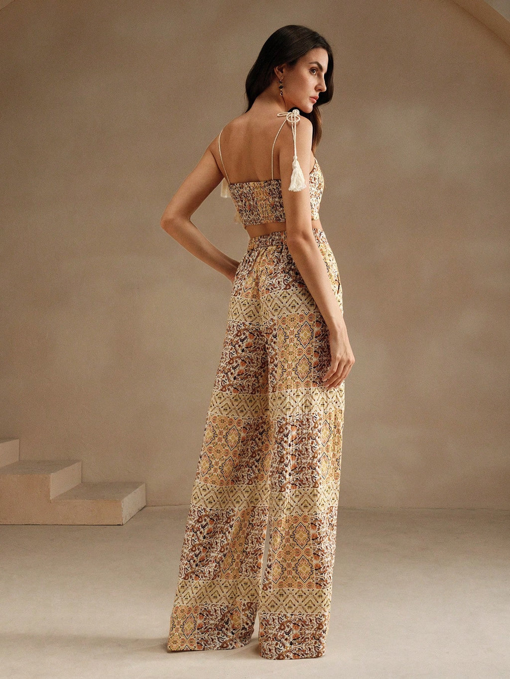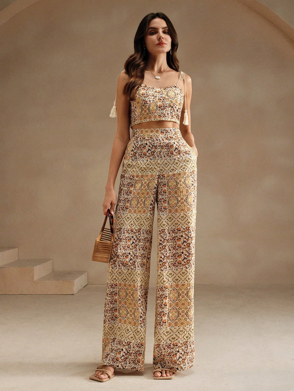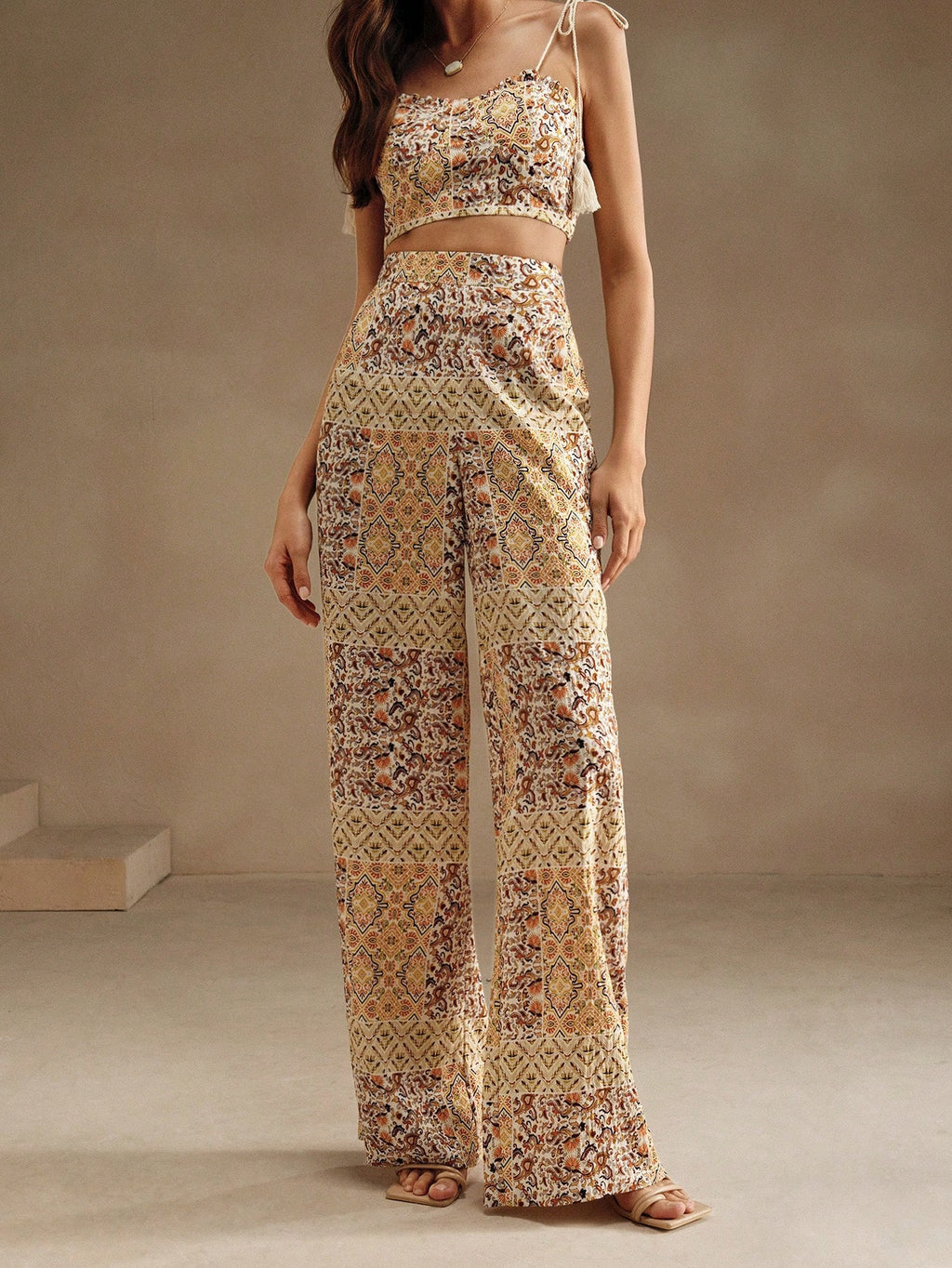 MIU 2pcs Women's Floral Print Camisole And Wide Leg Pants Holiday Set