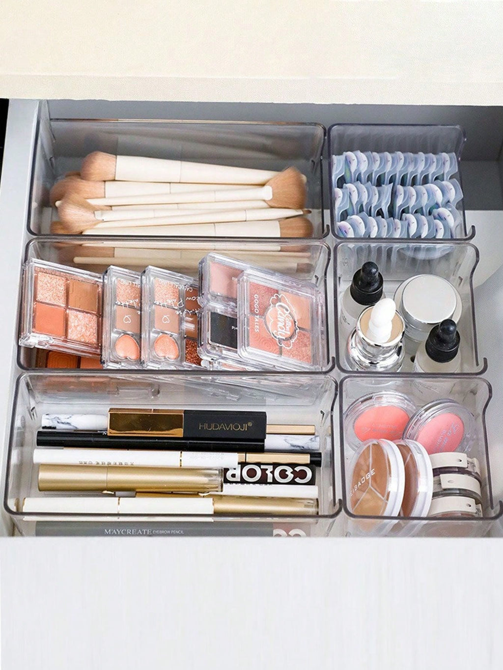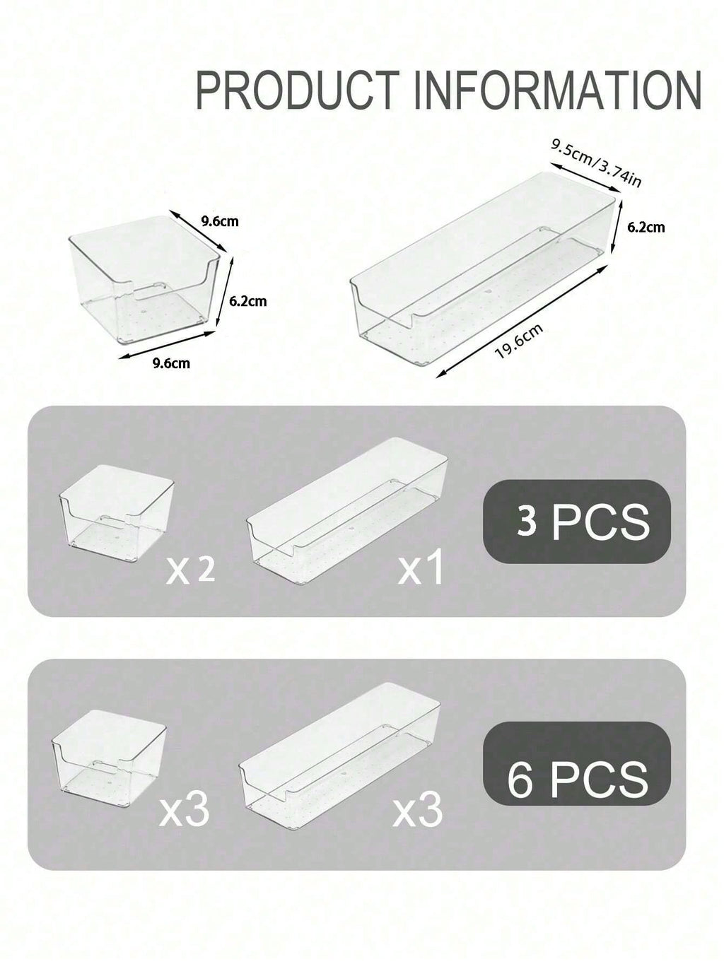 MIU 3PCS/6PCS Combination Transparent Plastic Drawer Makeup Storage Box, Versatile Vanity Organizer Tray, Elegant Storage Box For Desk Drawers, Jewelry, Cosmetics, Suitable For Kitchen, Bedroom, Bathroom, Office