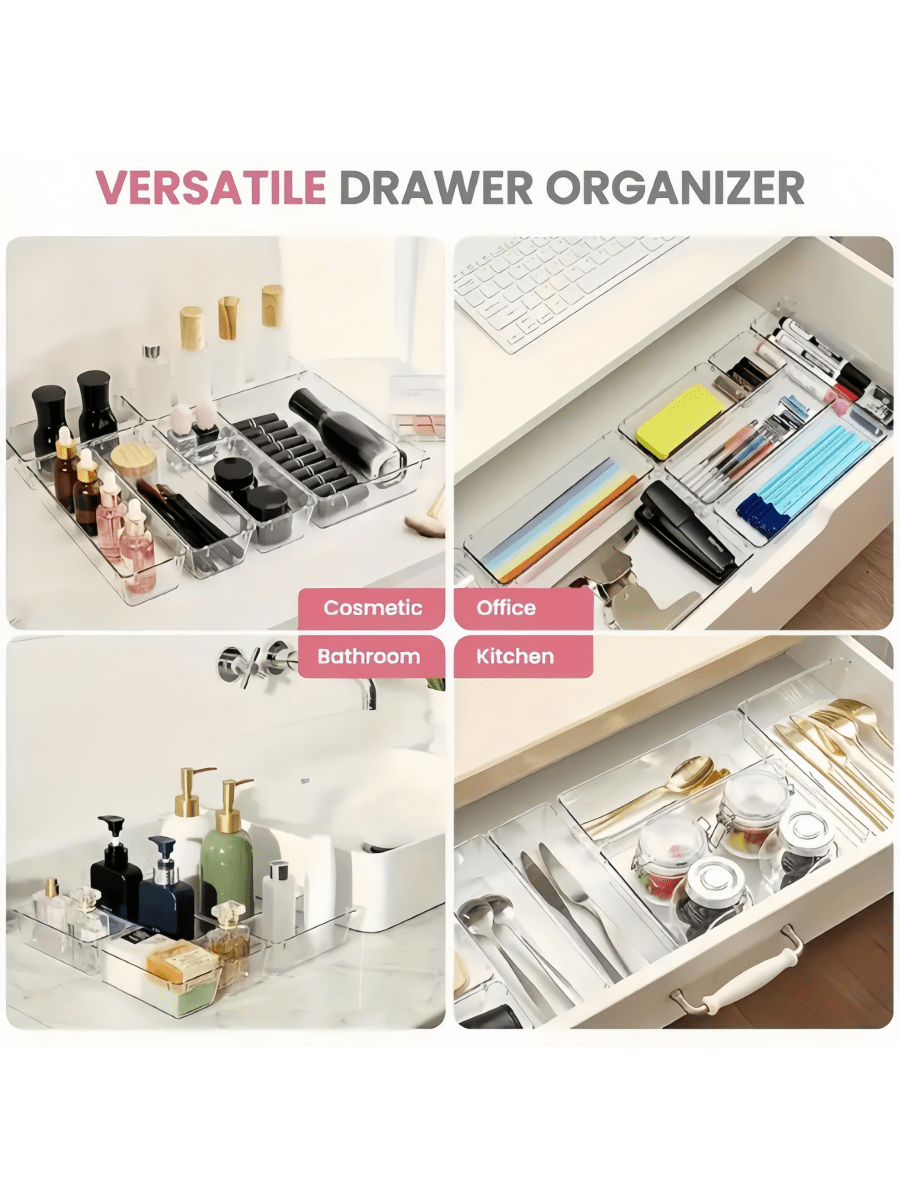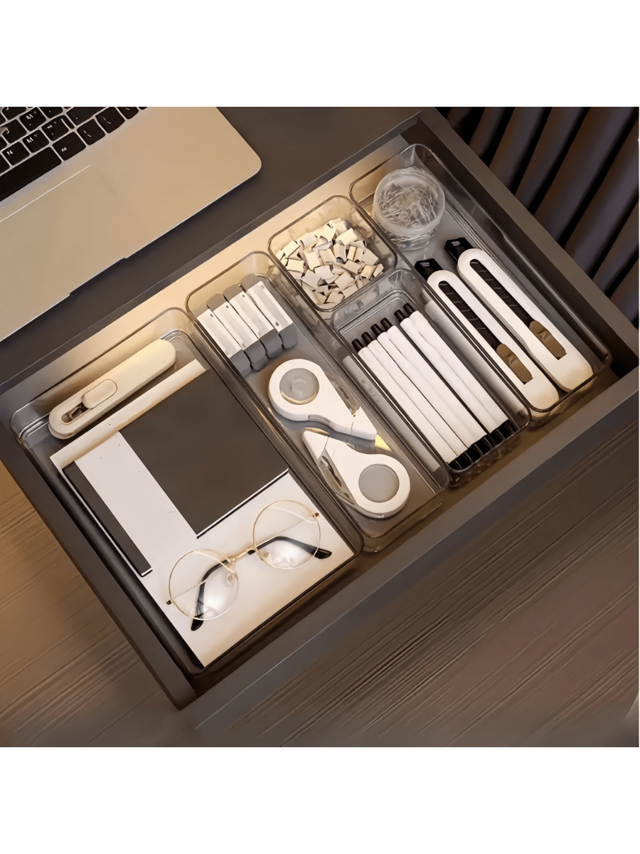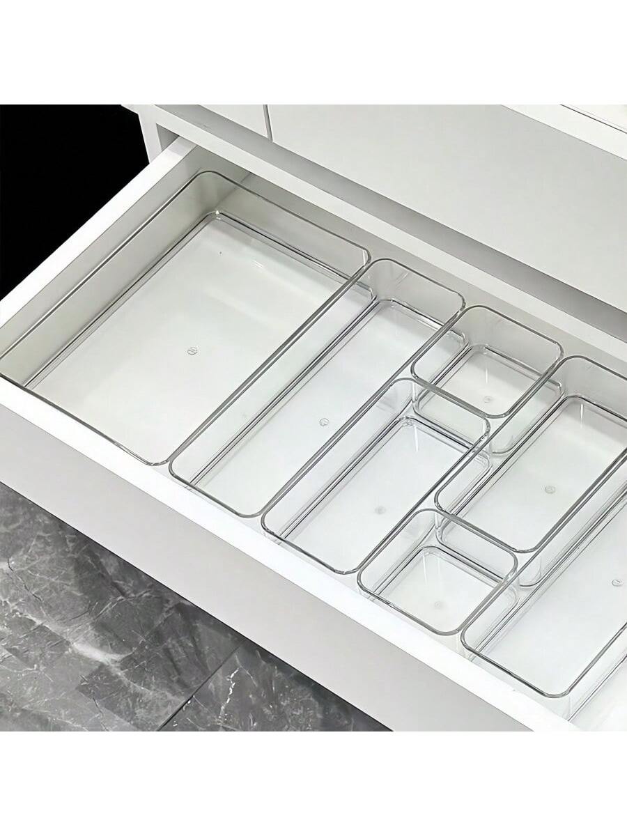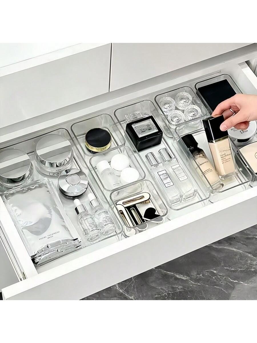 MIU 6/7pcs Transparent Drawer Organizer Boxes, Cosmetic Storage Boxes, Desktop Divider Organizers For Makeup, Office Supplies And Misc Storage Summer Goods For Women Storage Organizer Gift