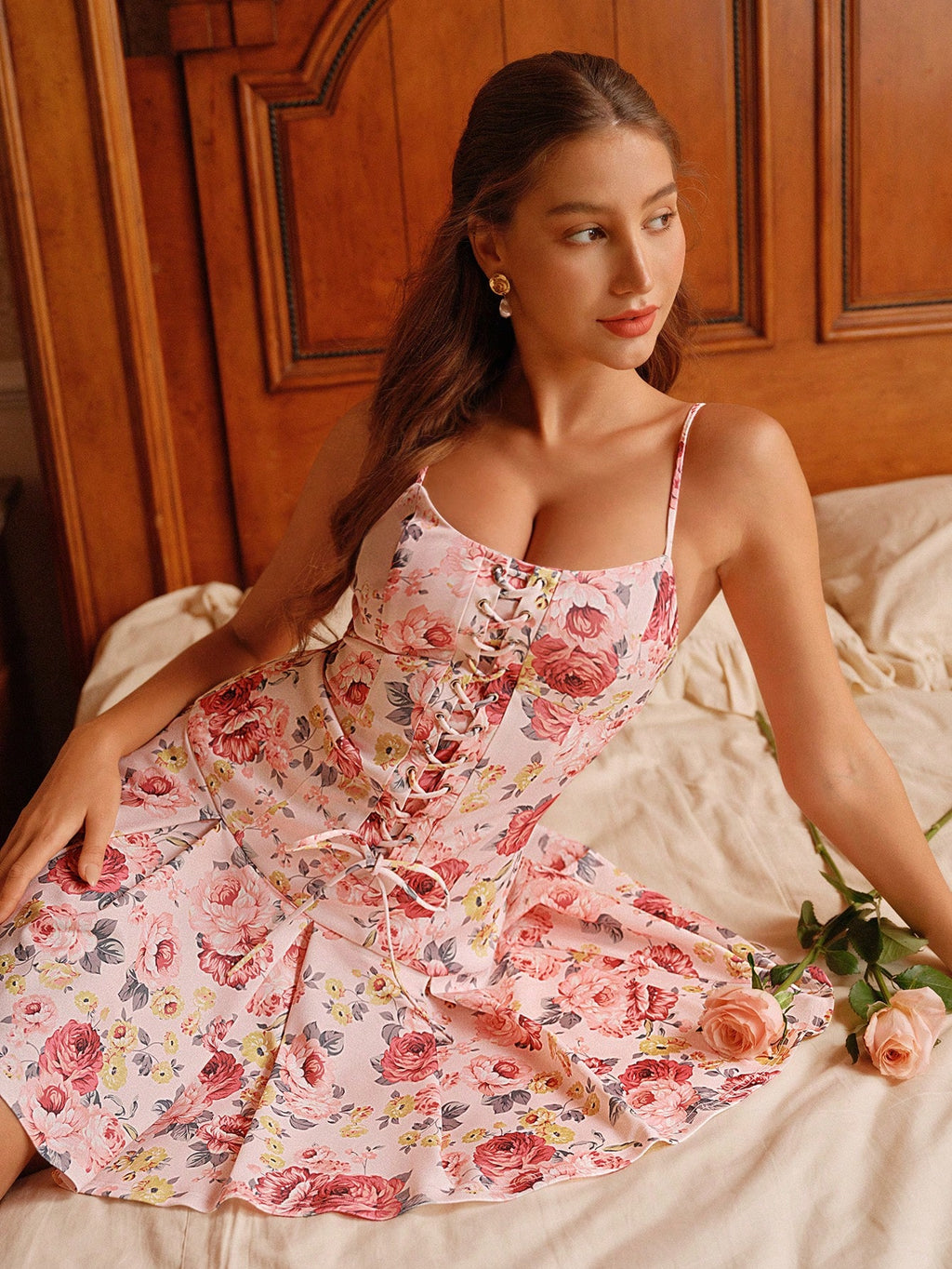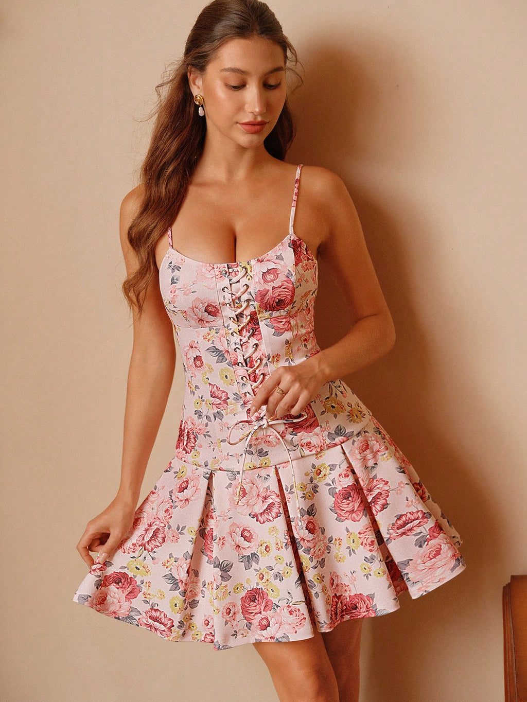 MIU Asymmetrical Flower Tie Up Sleeveless Dress, Fashionable For Summer