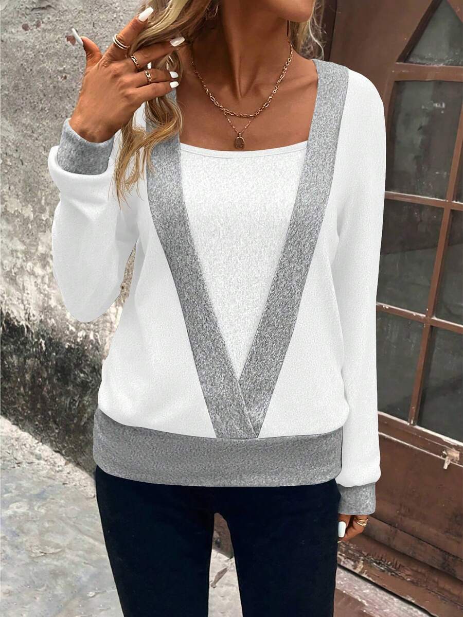 MIU AZRA Casual Kontrast Boja Blok Bijela