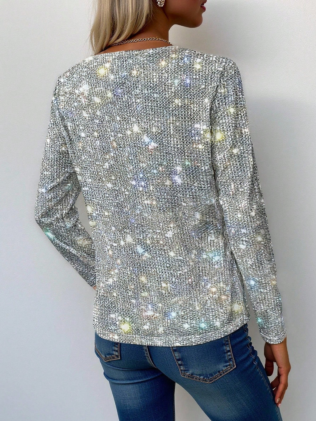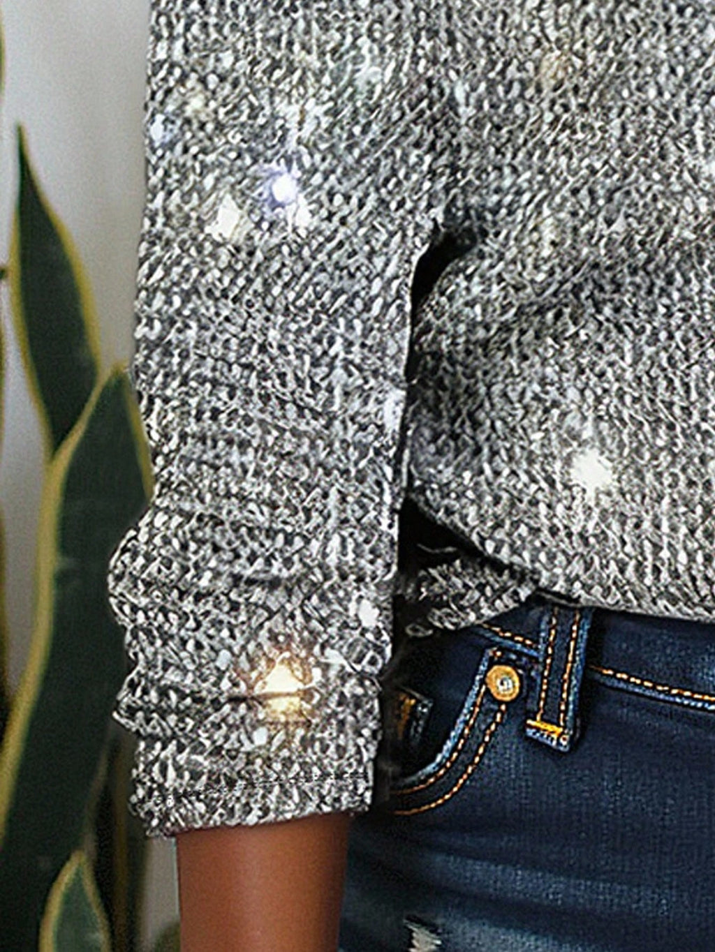 MIU AZRA Party Odjeća, Top s Šljokicama, Imitacioni Džemper dužih rukava, Jesenska Ženska Odjeća, Odjeća za Sestre, Aktuelno, Modni Topovi, Estetska Majica sa Dugim Rukavima, Poklon za Sestre, Poklon za Mamu, Pokloni za Drugog Dana, Ležeran Minimalističk